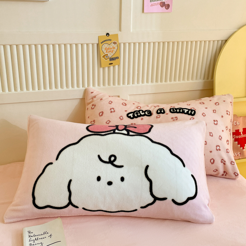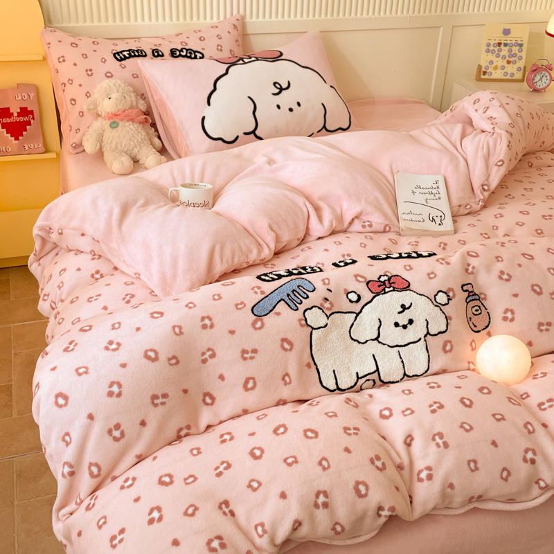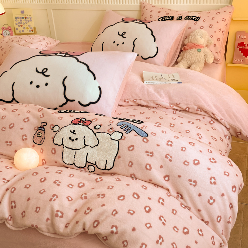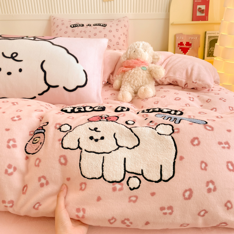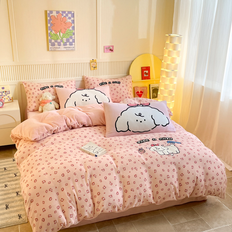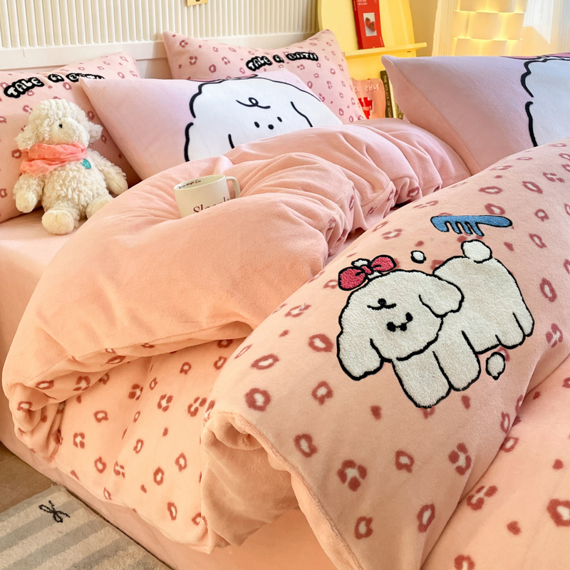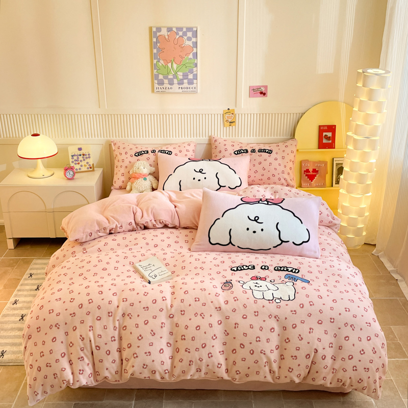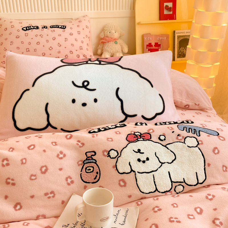 商品名称:呗旺鹿 2024新款高克重卡通印花牛奶绒四件套毛巾绣牛奶绒四件套 爱洗澡的几米