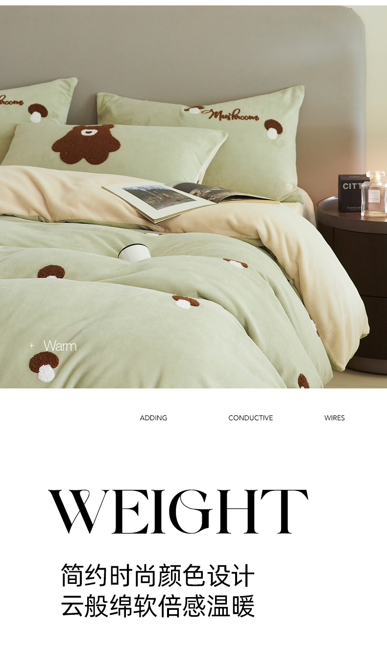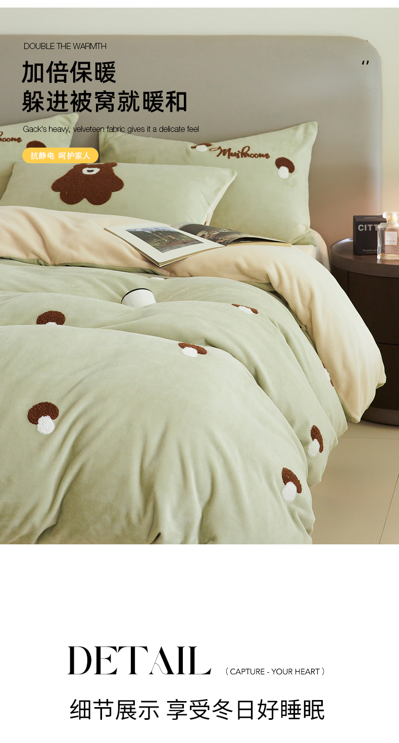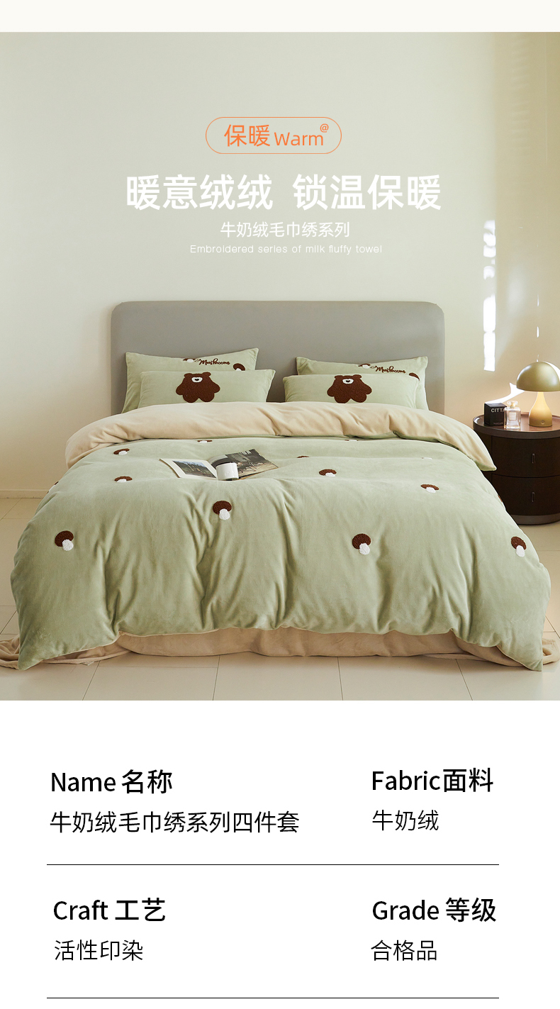 千朵森 2024新款毛巾绣牛奶绒四件套-慕斯卡 风格二 慕斯卡-绿香槟