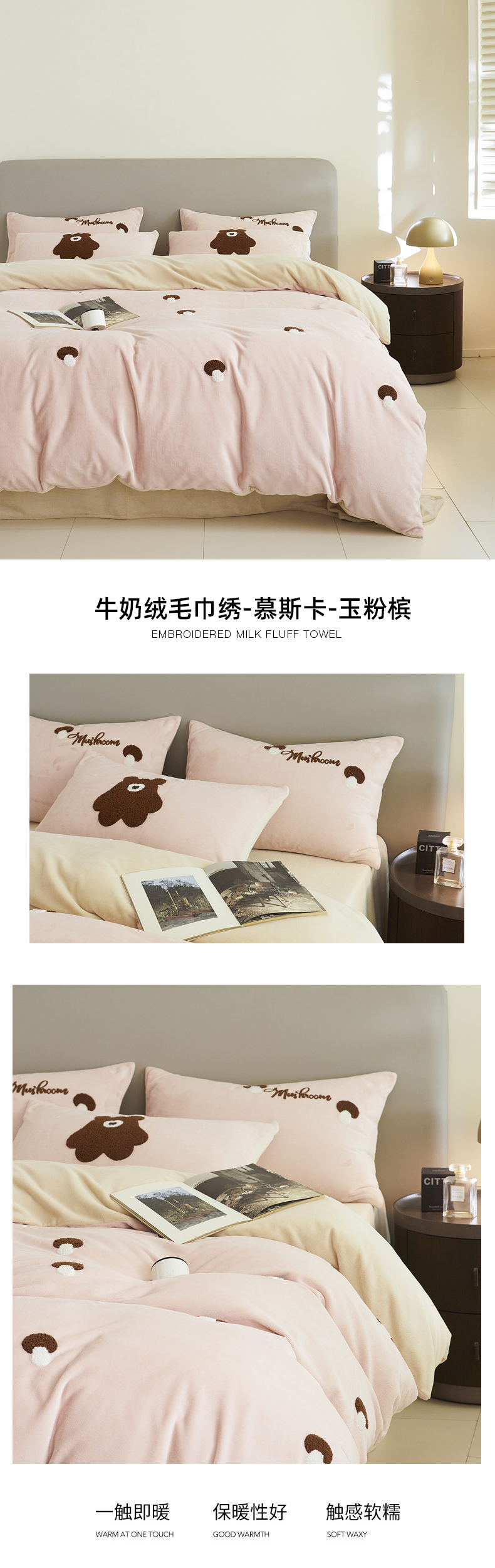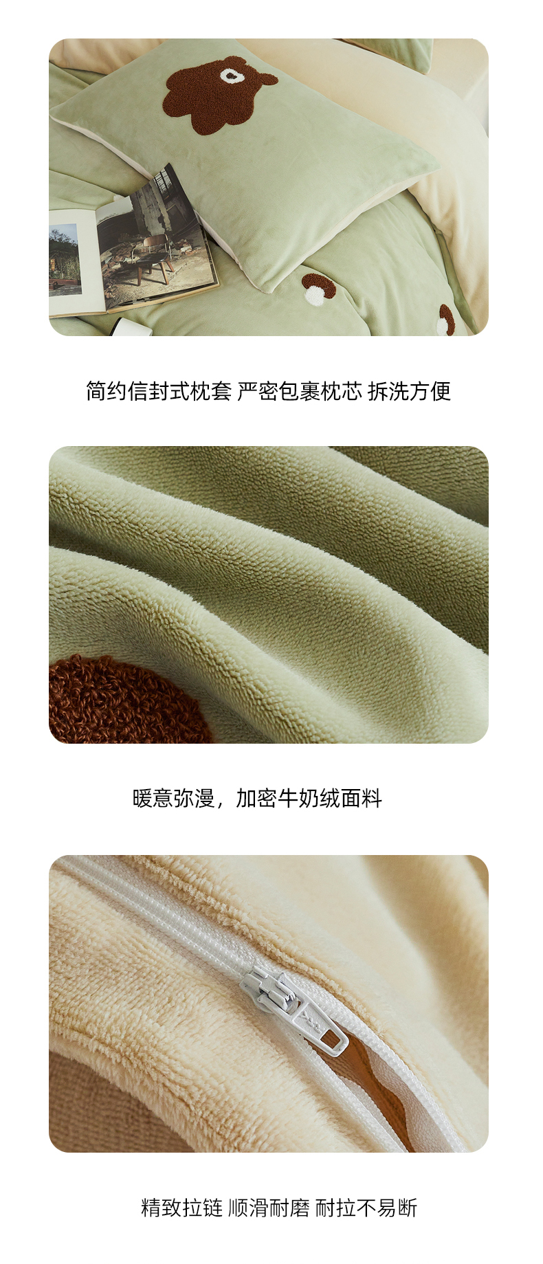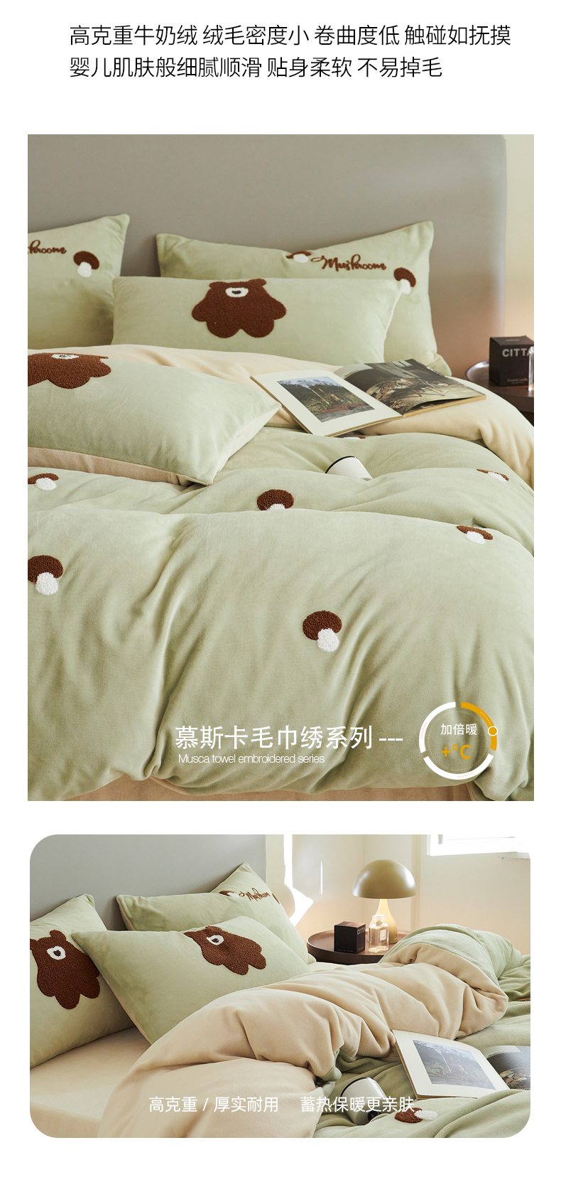 千朵森 2024新款毛巾绣牛奶绒四件套-慕斯卡 风格二 慕斯卡-绿香槟