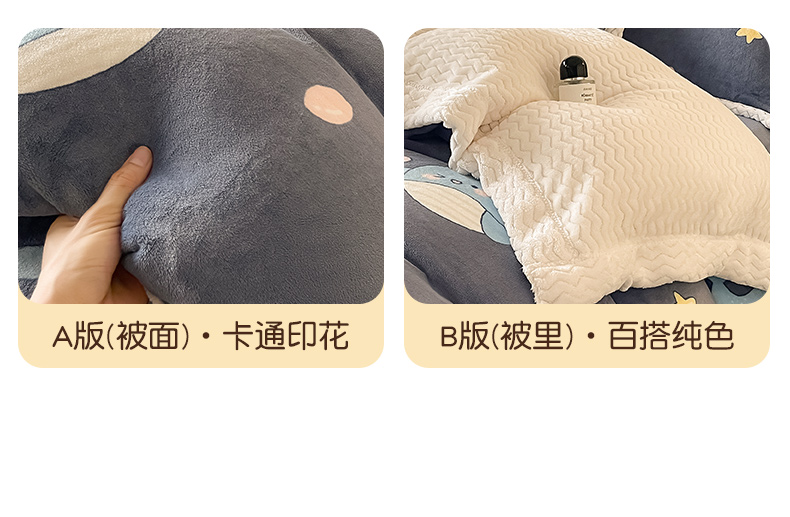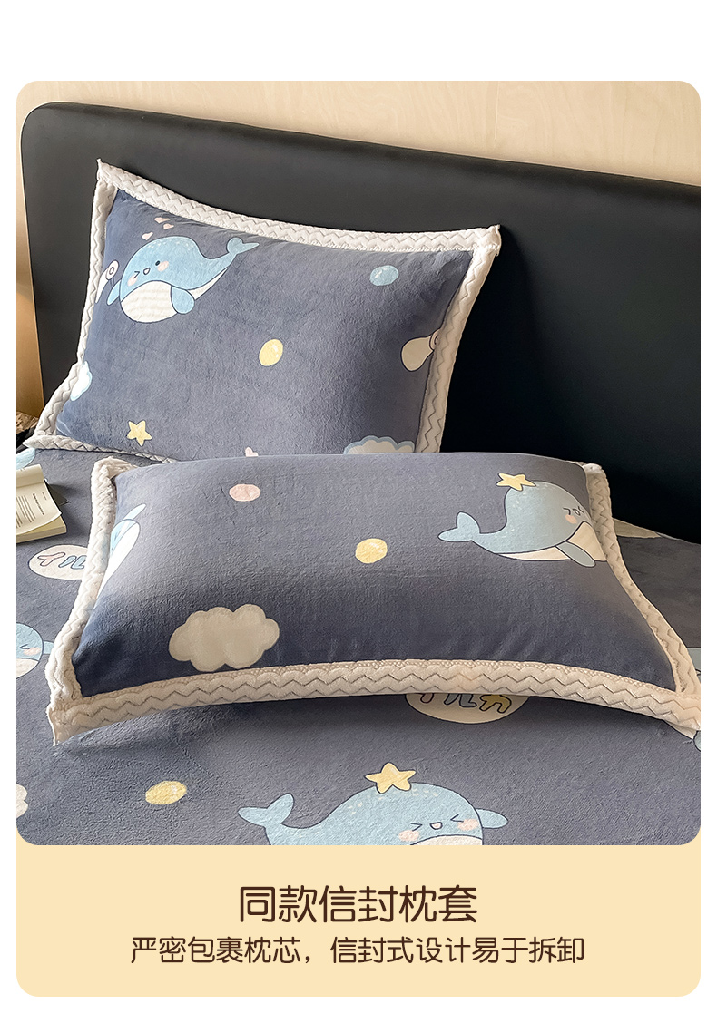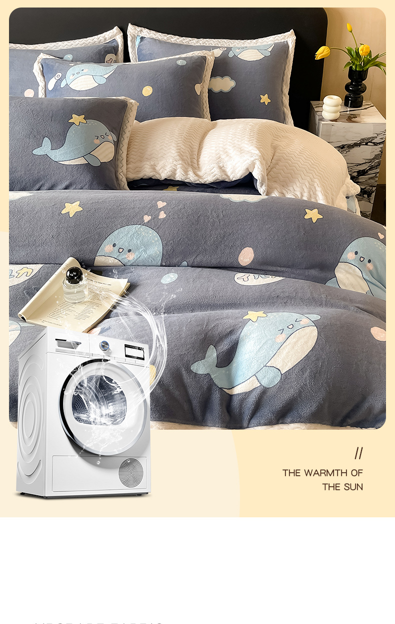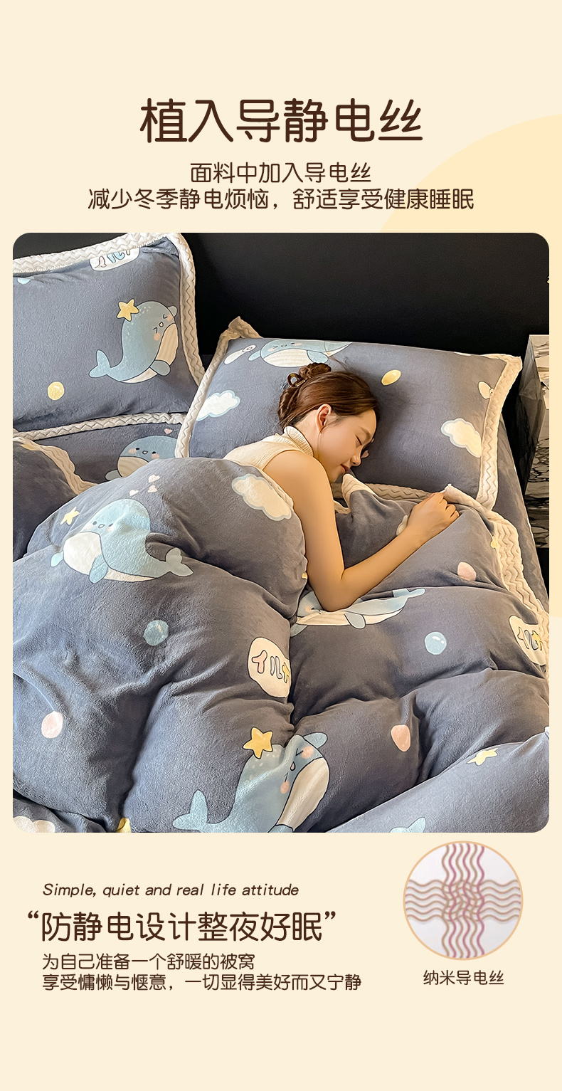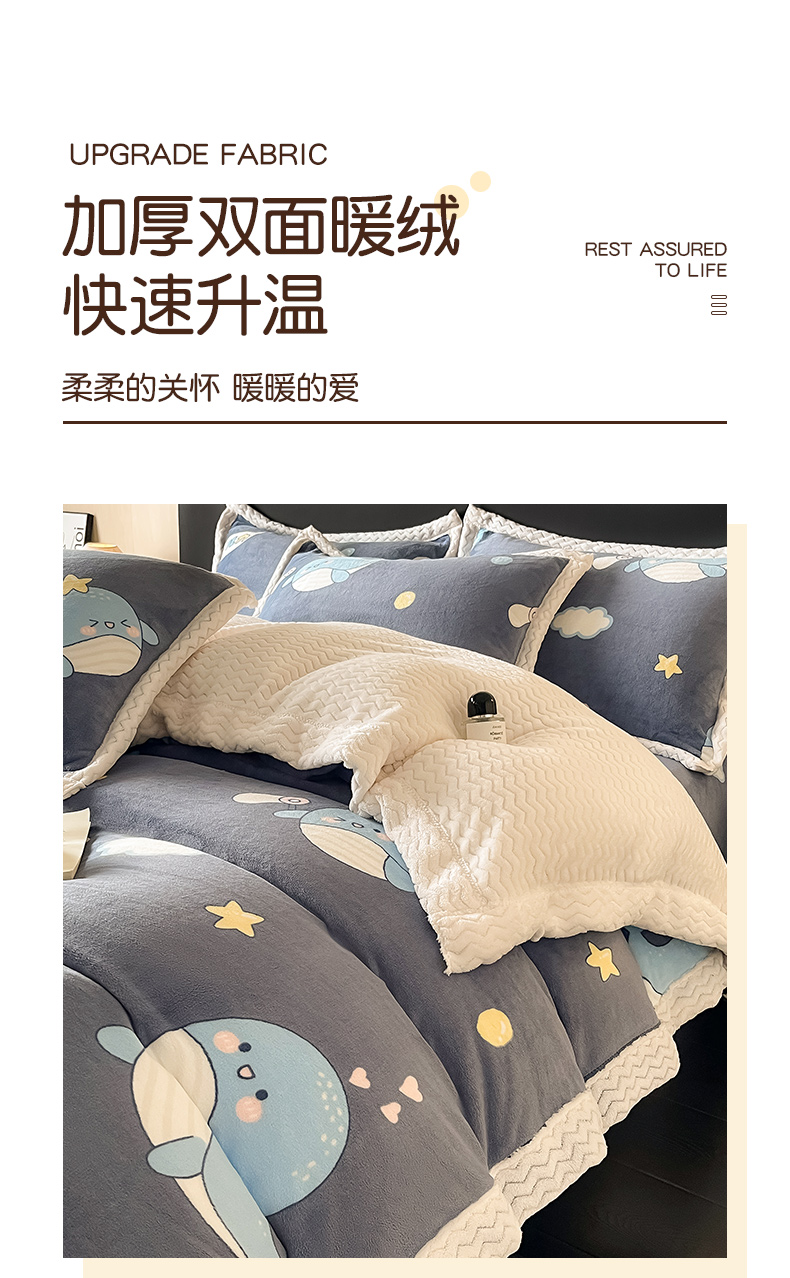 当前位置: 91家纺网 > 商品网购 > 床品套件 > 四件套 > 牛奶绒四件套 > 全季家居 2024新款A类纯色印花波浪大包边牛奶绒贝贝绒加厚保暖四件套 小鲸鱼