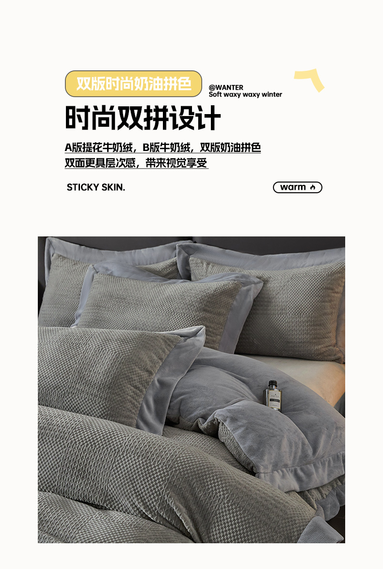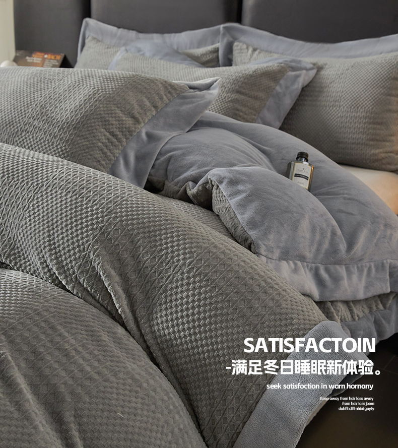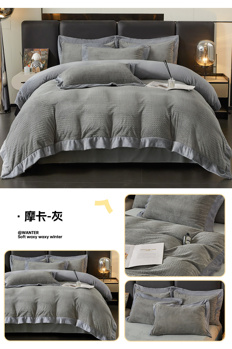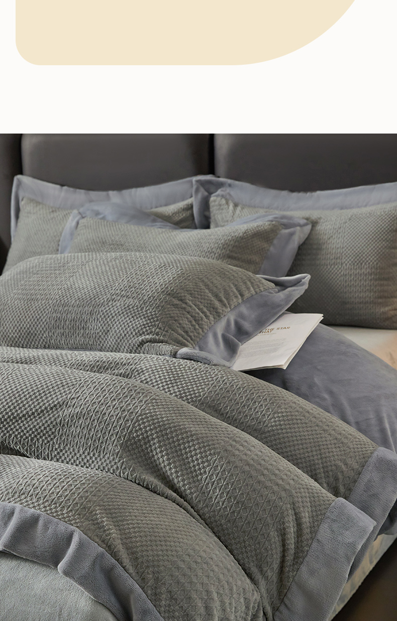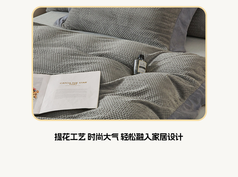 当前位置: 91家纺网 > 商品网购 > 床品套件 > 四件套 > 牛奶绒四件套 > 全季家居 2024新款A类加厚保暖3D雕花拼角牛奶绒四件套 摩卡-灰