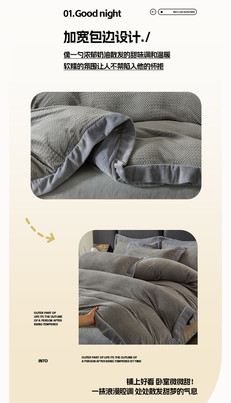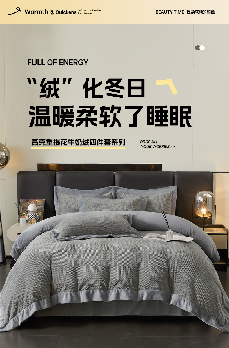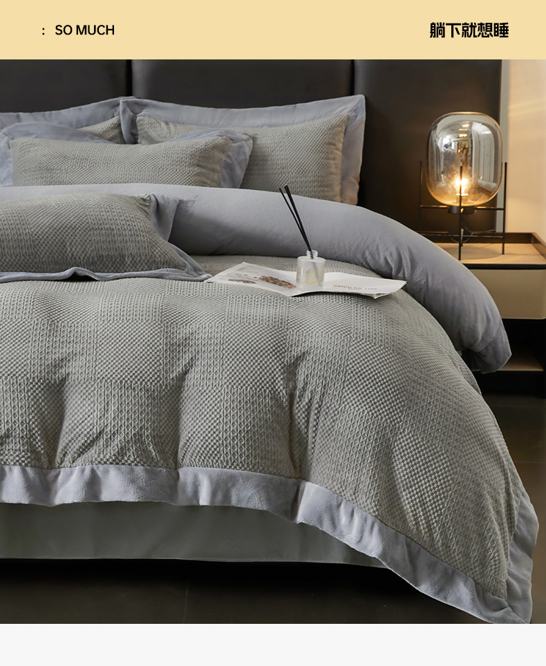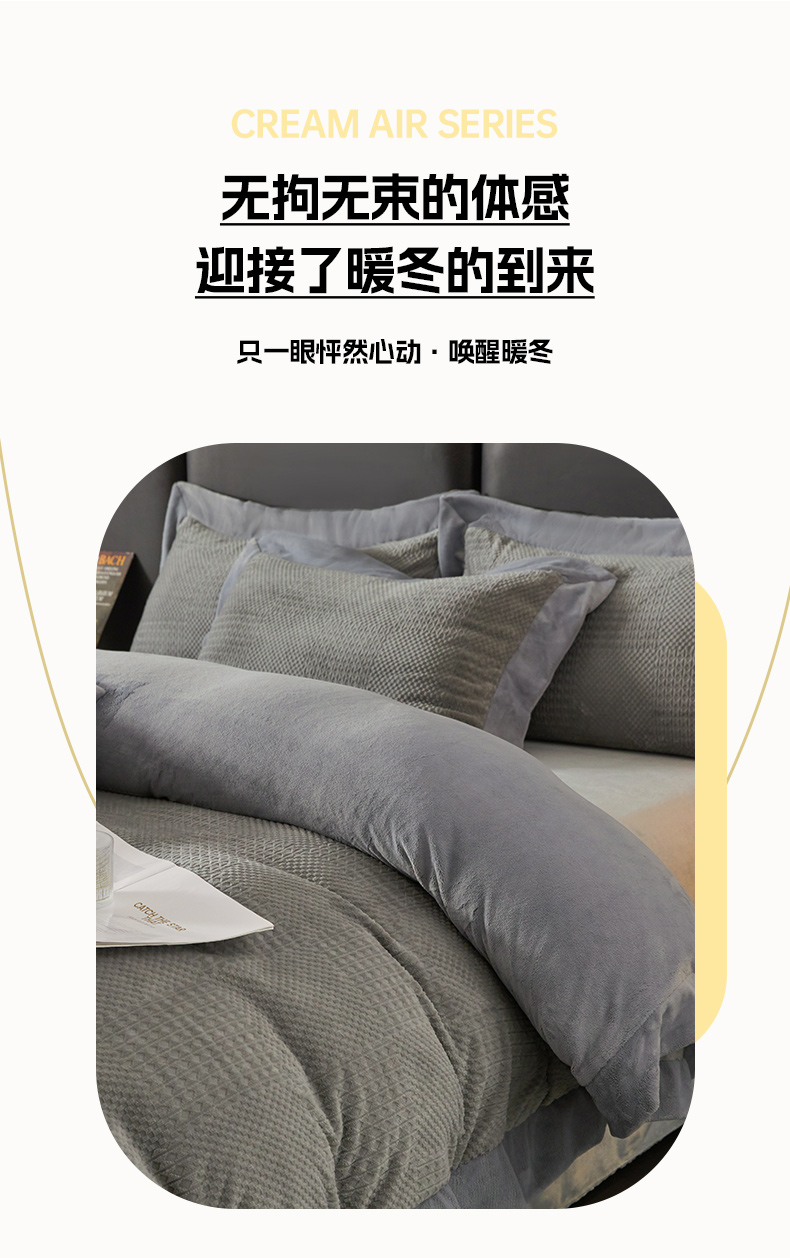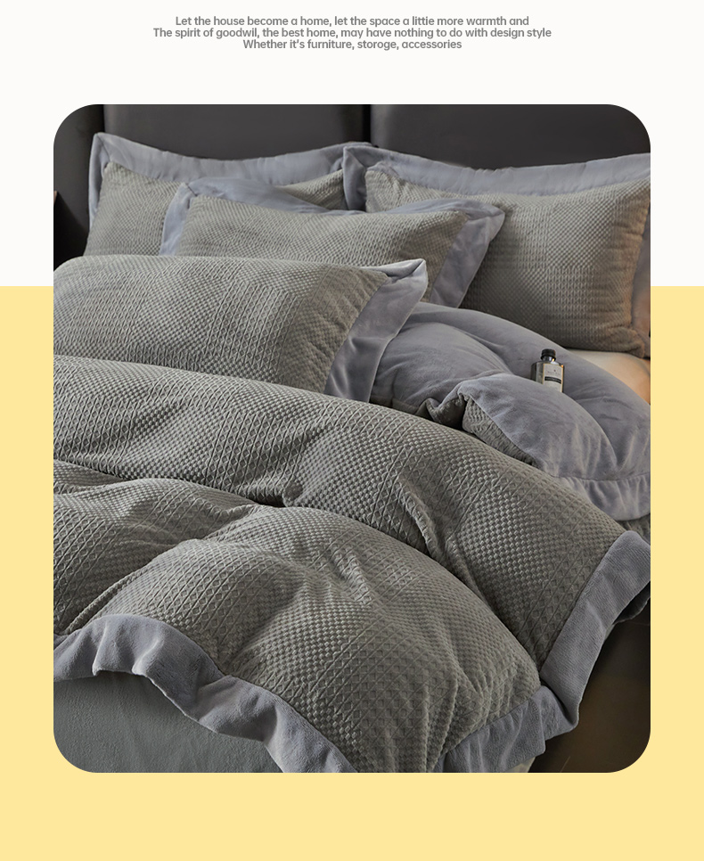 当前位置: 91家纺网 > 商品网购 > 床品套件 > 四件套 > 牛奶绒四件套 > 全季家居 2024新款A类加厚保暖3D雕花拼角牛奶绒四件套 摩卡-灰