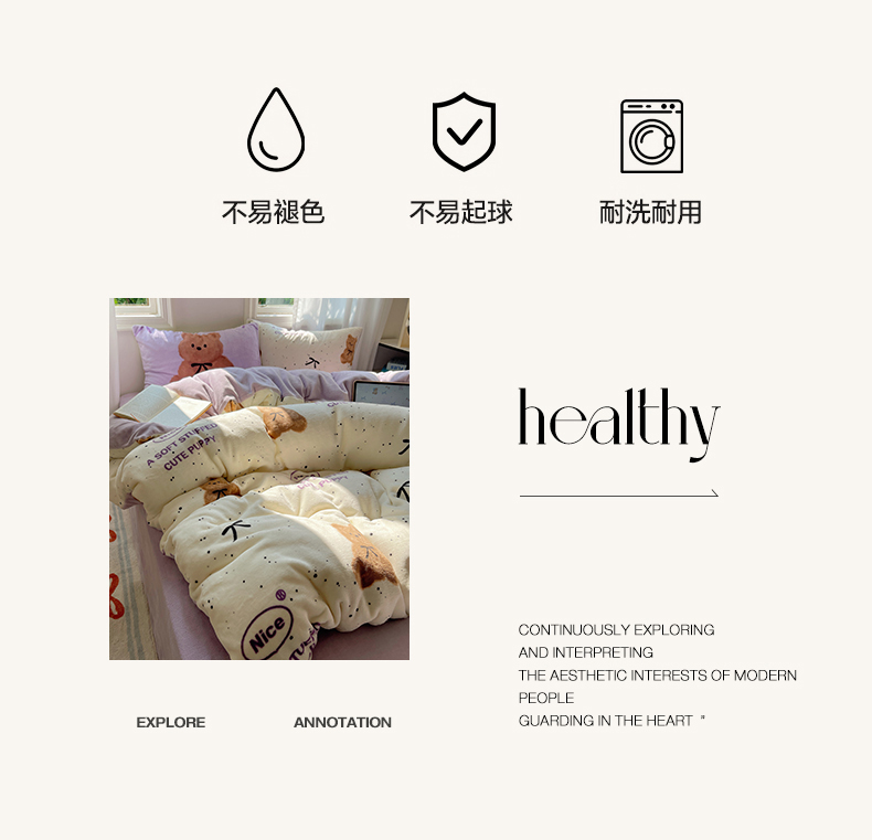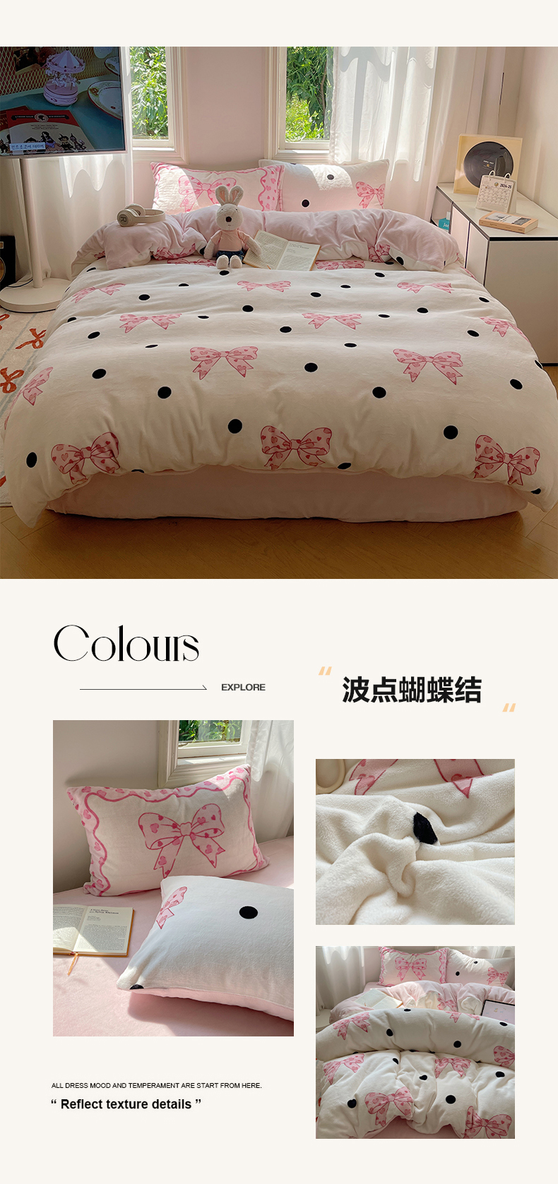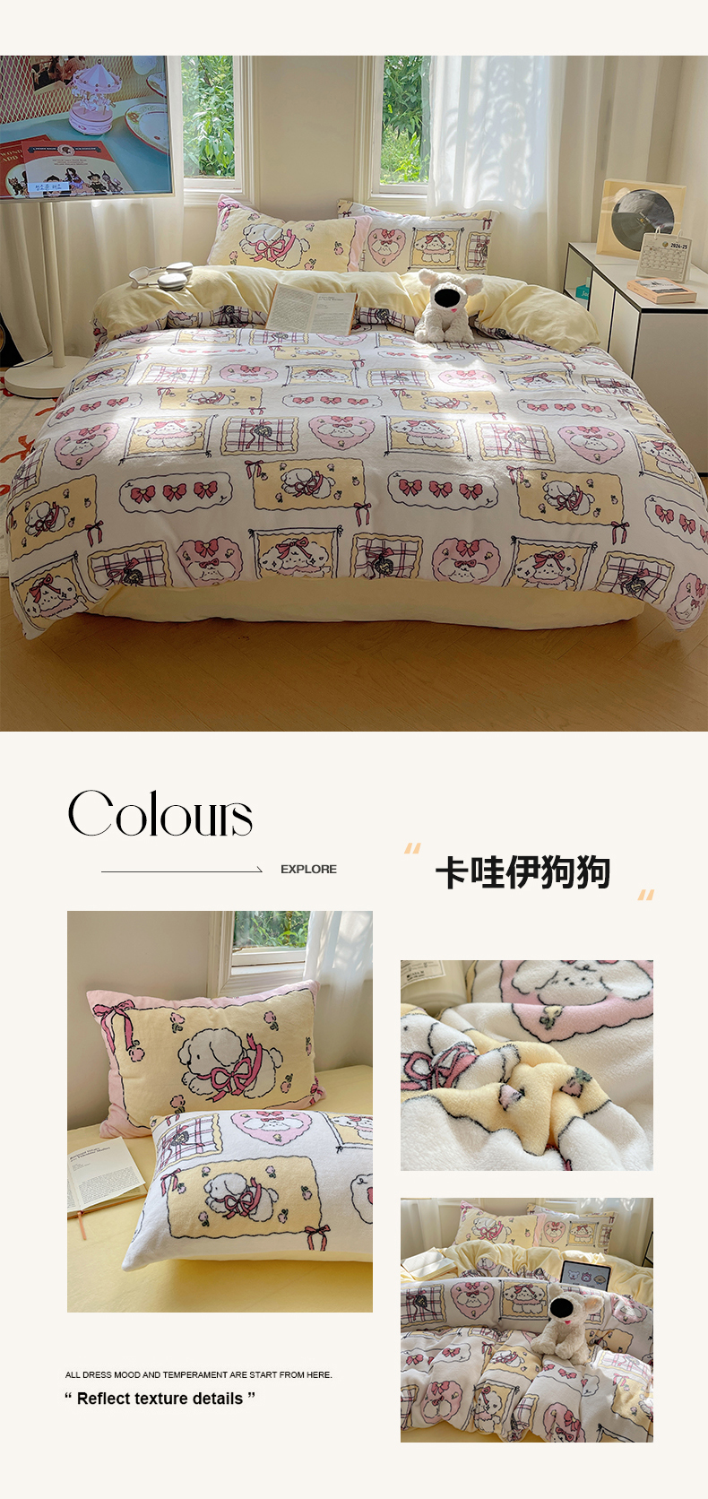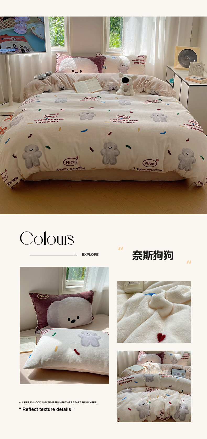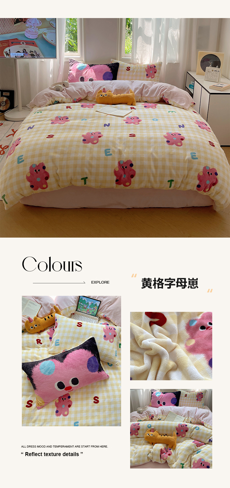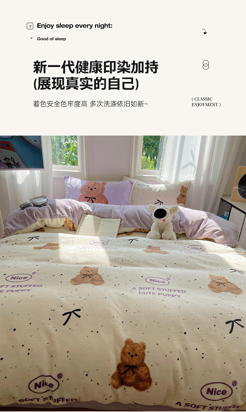 当前位置: 91家纺网 > 商品网购 > 床品套件 > 四件套 > 牛奶绒四件套 > 2024新款INS混搭版卡通牛奶绒四件套 可可小熊