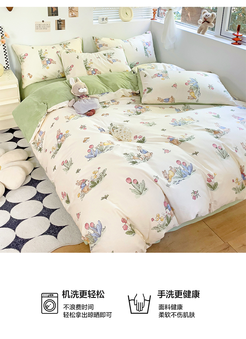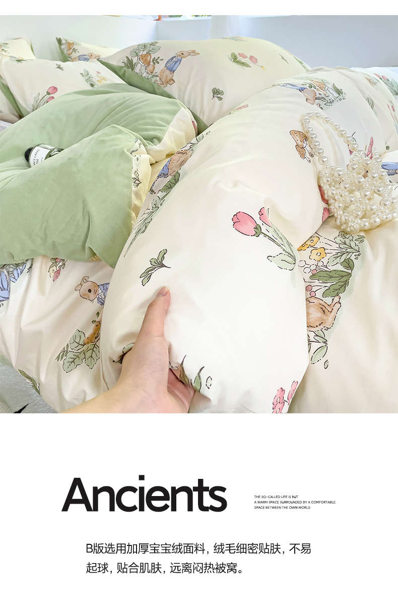 商品名称:盛馨家纺 2024秋冬棉加绒13372全棉宝宝绒牛奶绒床单床笠保暖绒四件套 兔野仙踪