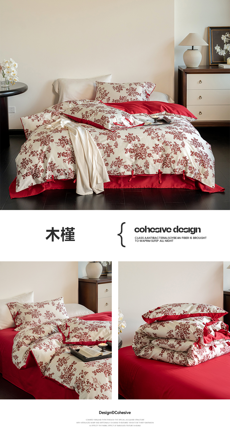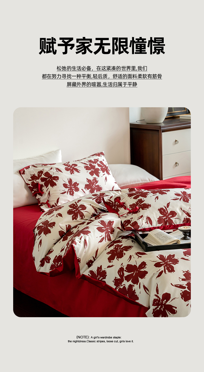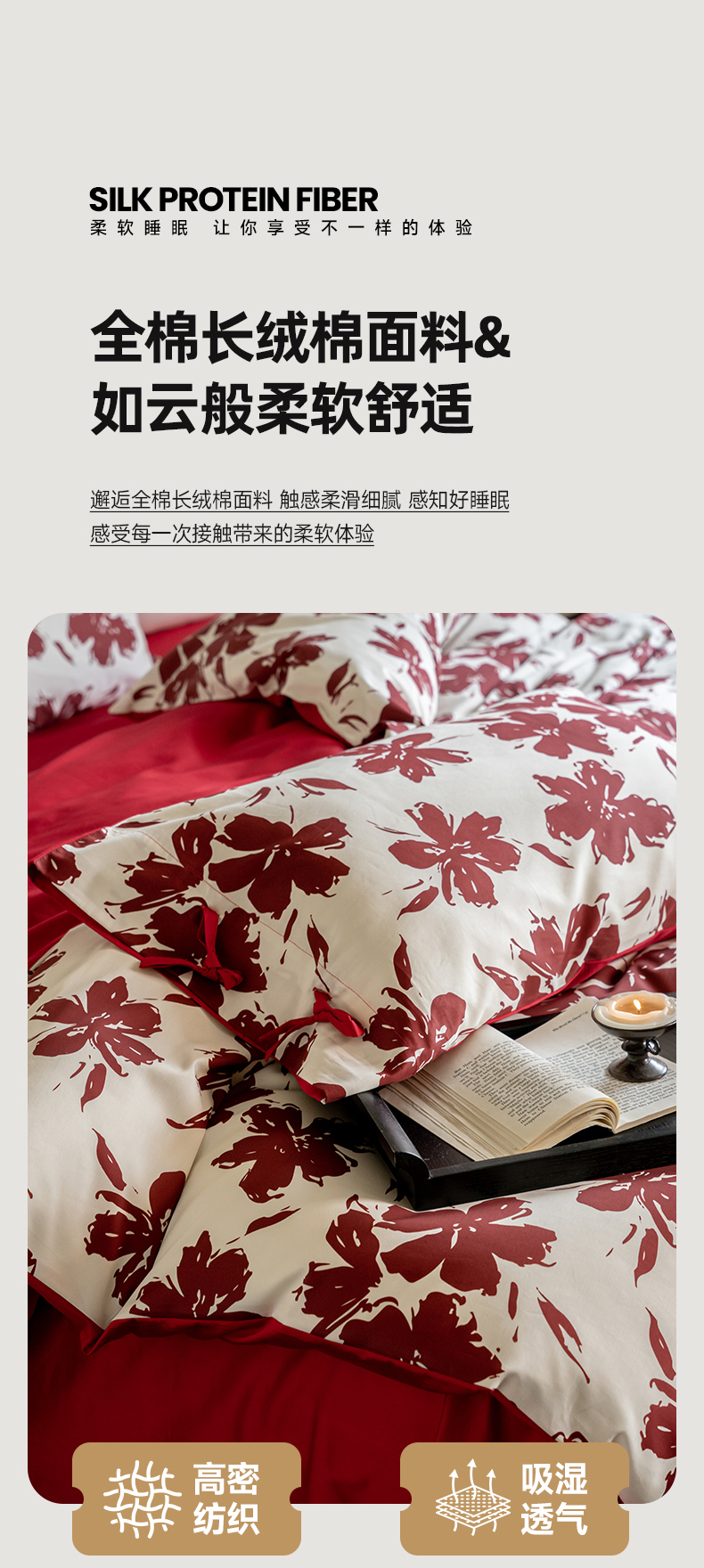 (总)华超针织 2025新款亲肤舒适全棉纯棉针织五件套四件套,奶糖+樱桃,杏粉+花田,杏灰+玫瑰