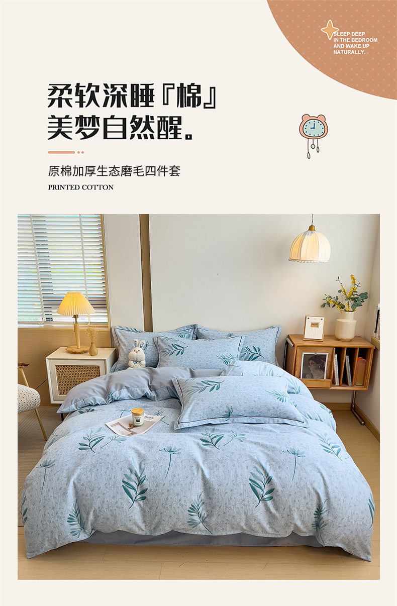 芃成家纺 2024新款原棉加厚生态磨毛单被套 蓝町