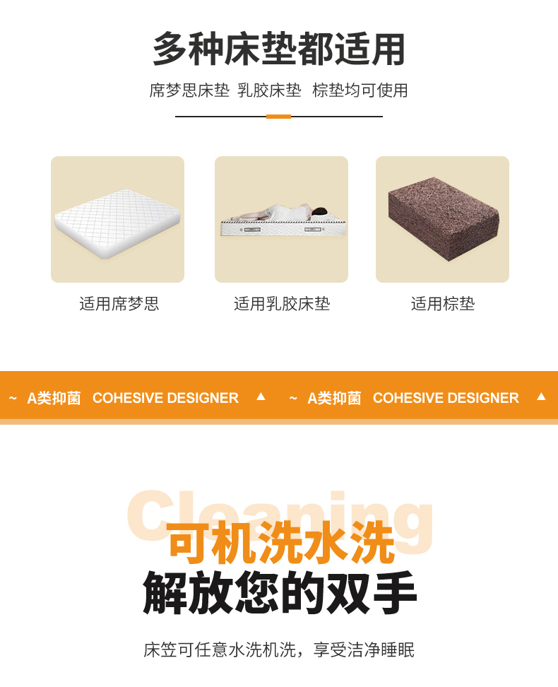 (总)好眠好梦家纺 2025新款全棉50S抗菌防螨夹棉防水床笠-无限之光系列,白色,粉色,卡其,深灰,天蓝,烟灰