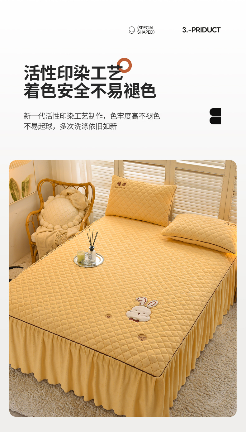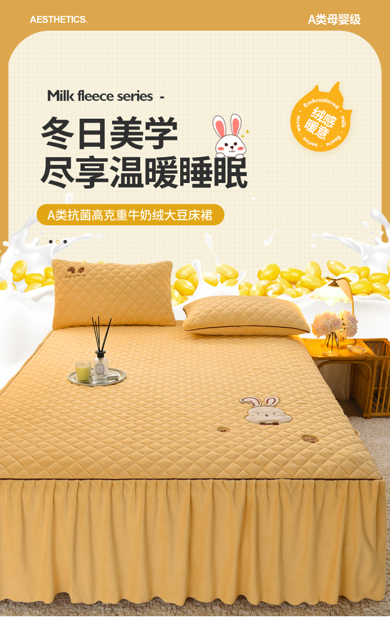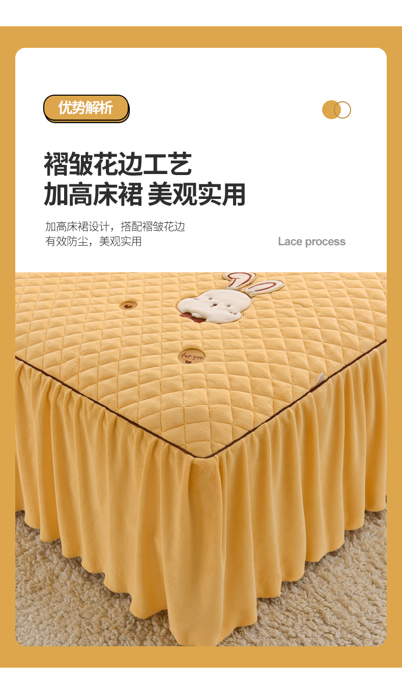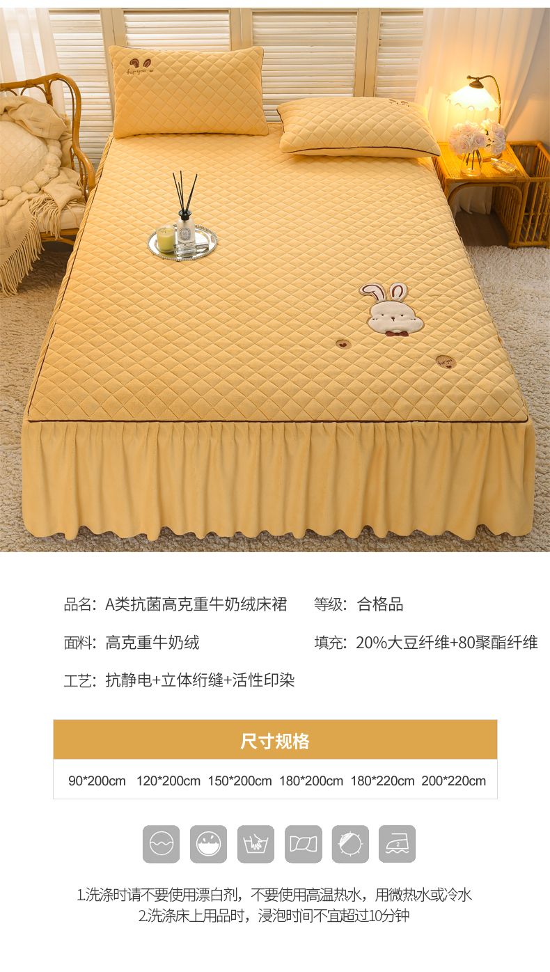 • 91家纺网 家纺一手货源 找家纺 好眠好梦家纺 2024新款叮当兔牛奶绒绣花单床裙 鹅黄床裙