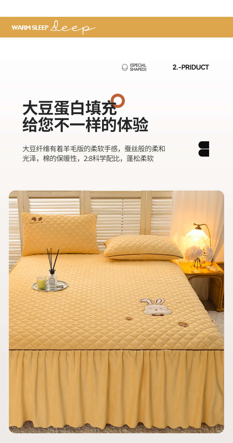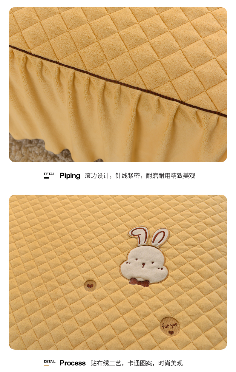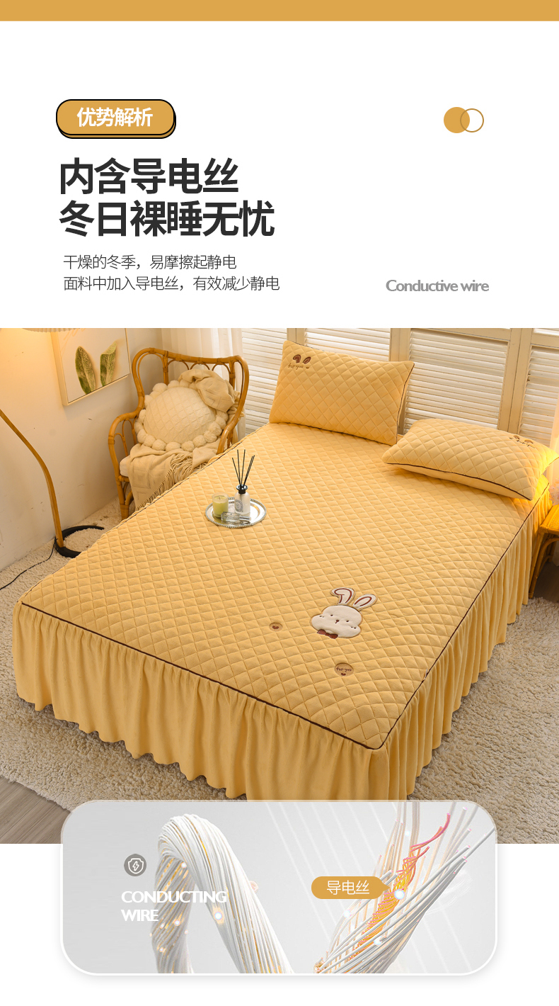 • 91家纺网 家纺一手货源 找家纺 好眠好梦家纺 2024新款叮当兔牛奶绒绣花单床裙 鹅黄床裙