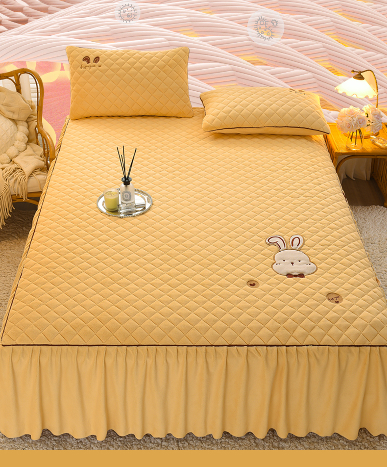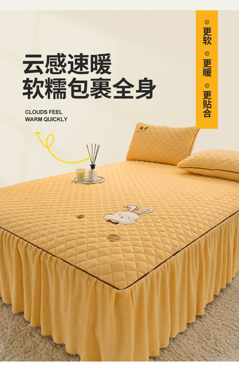 好眠好梦家纺 2024新款叮当兔牛奶绒绣花单床裙 鹅黄床裙