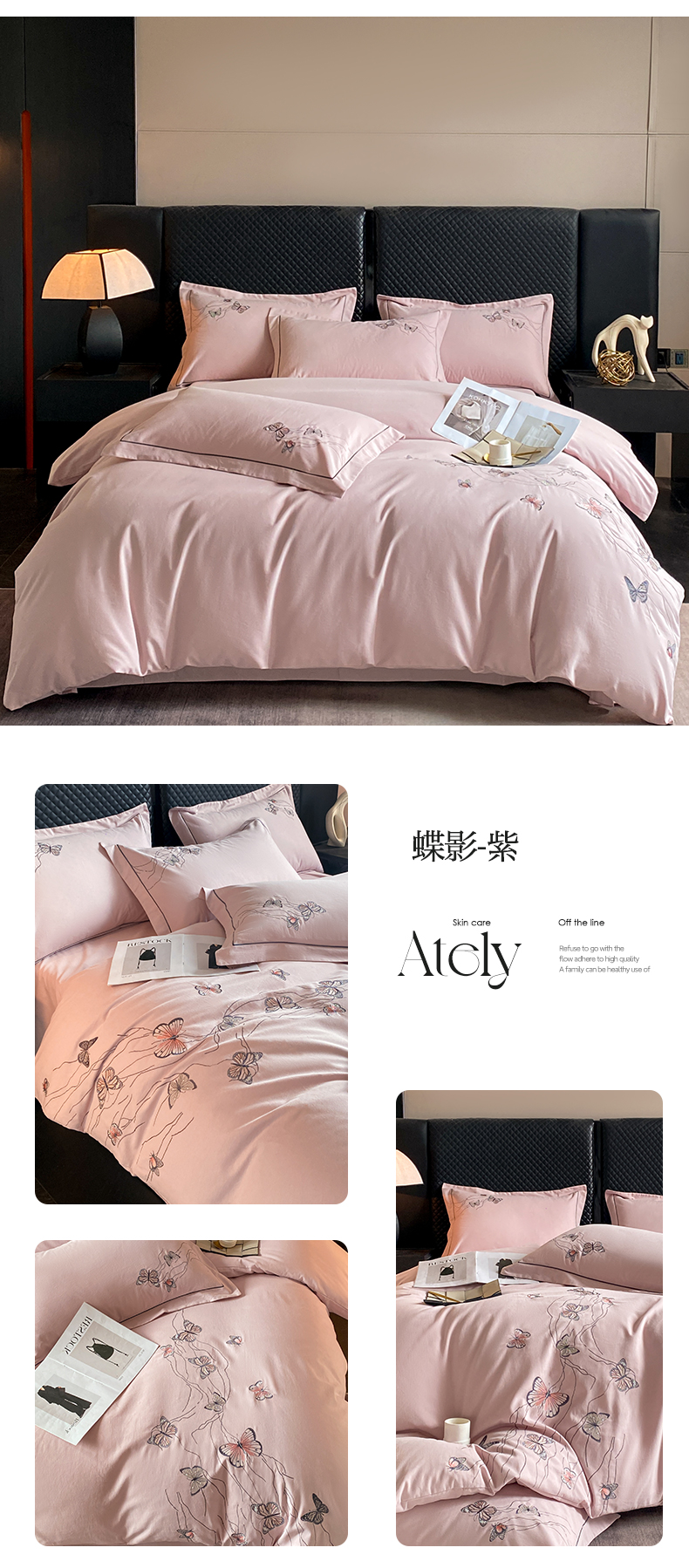 (总)涵宸家纺 2025新款全棉磨毛刺绣四件套系列-花蝴蝶,花蝴蝶-灰,花蝴蝶-奶白,花蝴蝶-浅粉
