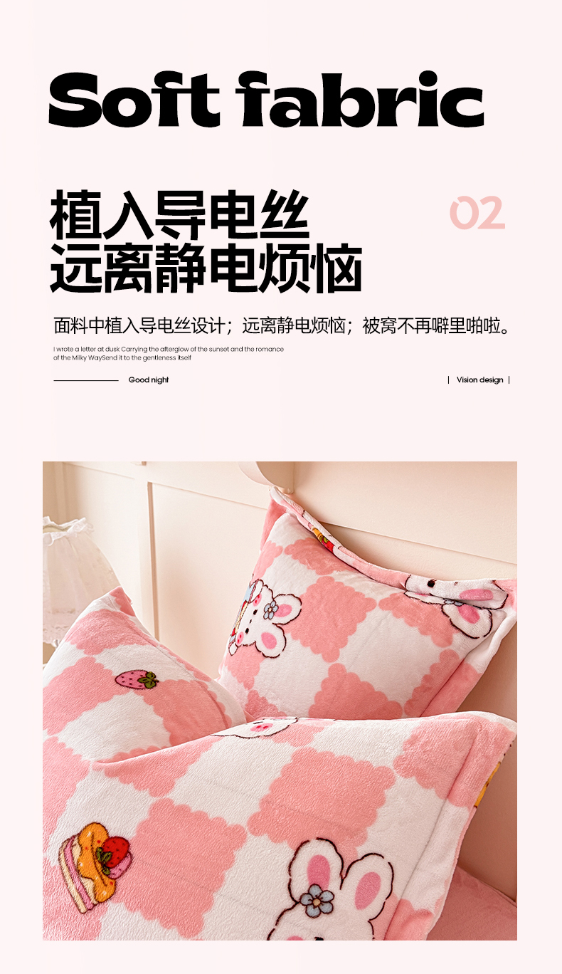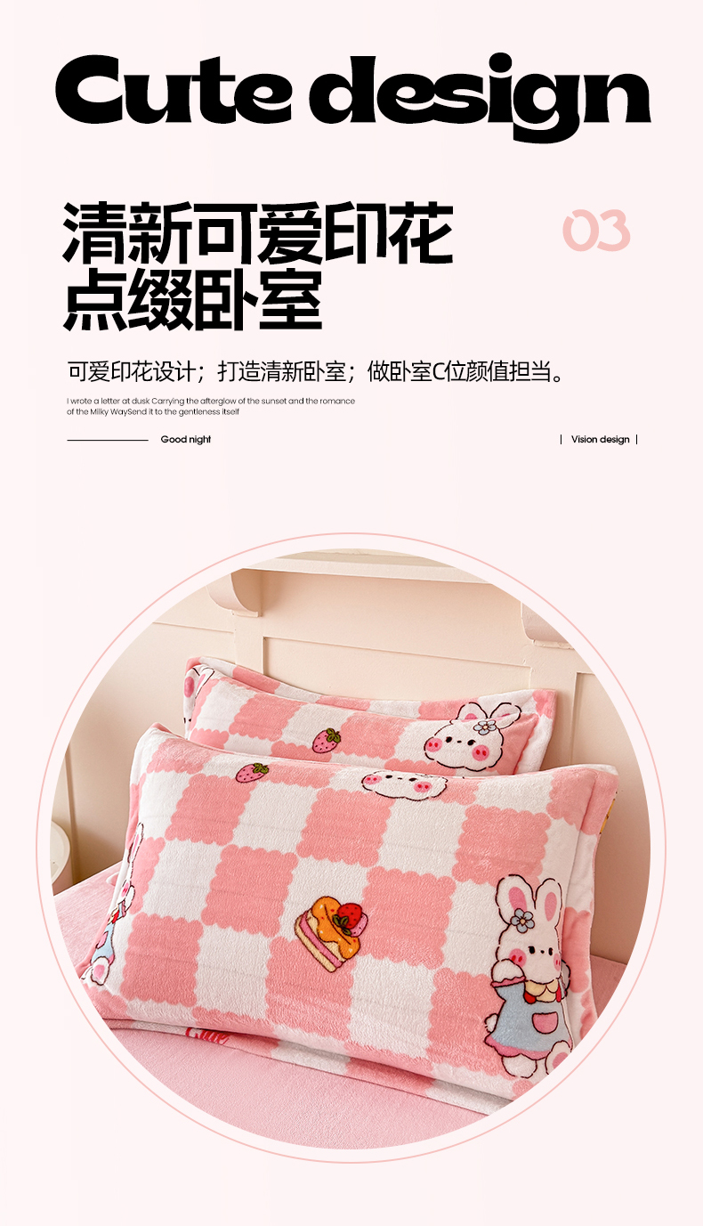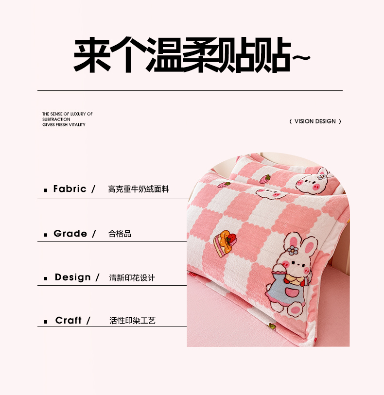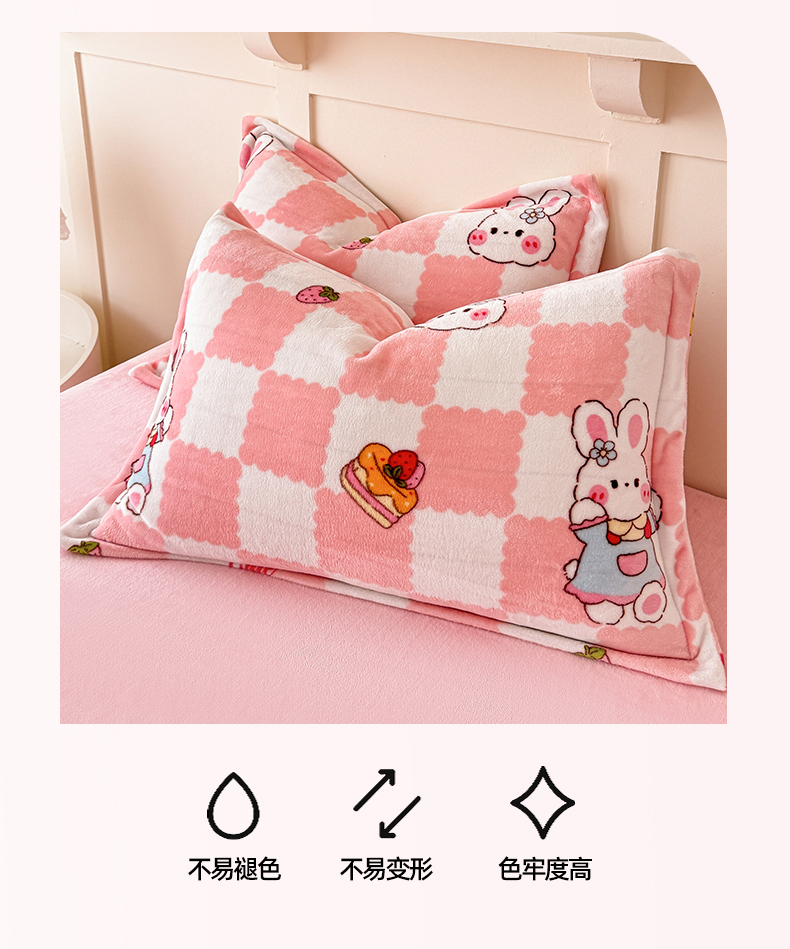 商品名称:妖妖家纺 2024新款200克牛奶绒单枕套 棋盘兔