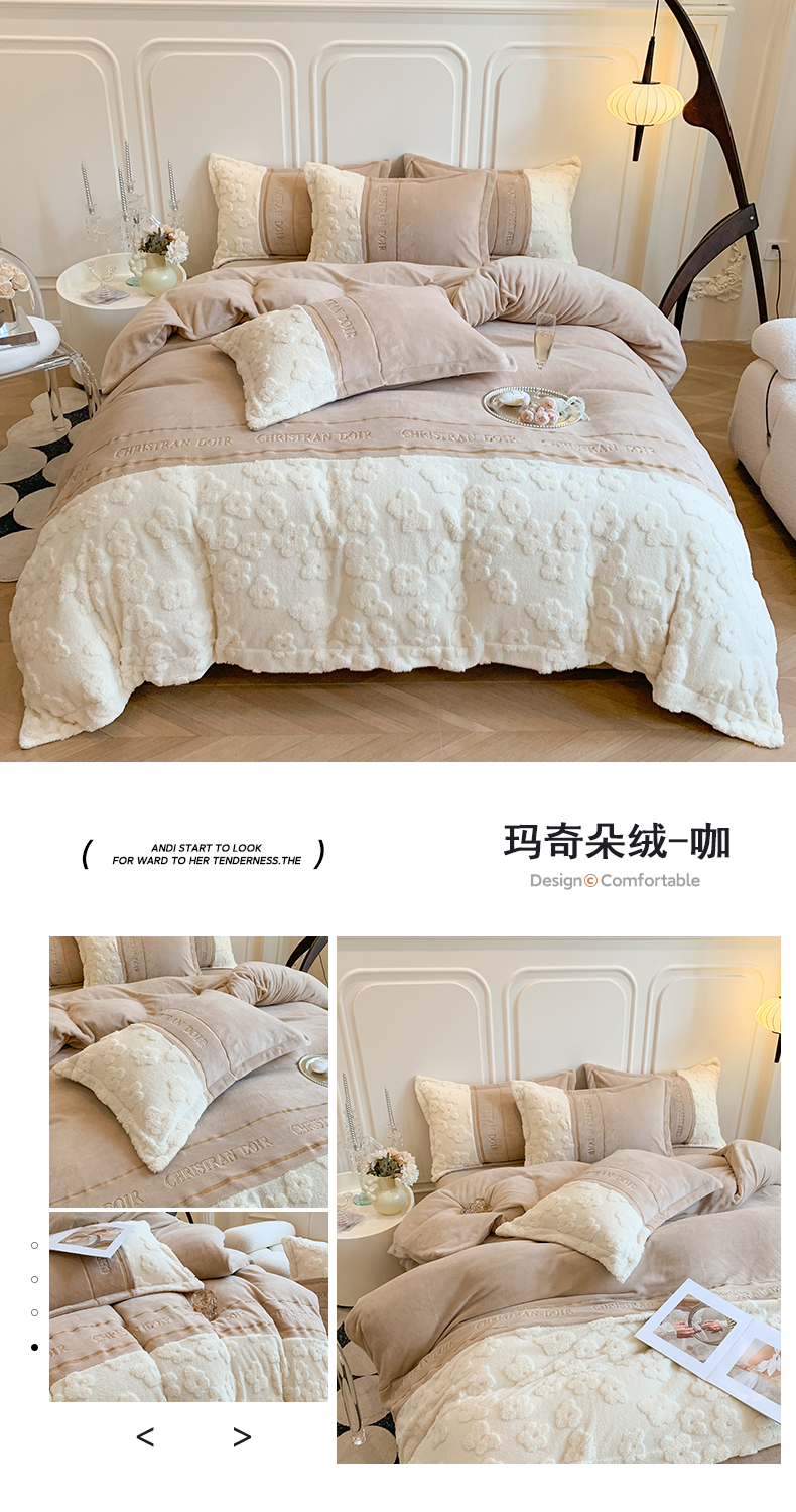 商品名称:芯贝儿 2024款牛奶绒雕花绒绣花拼接四件套-玛奇朵 玛奇朵--咖