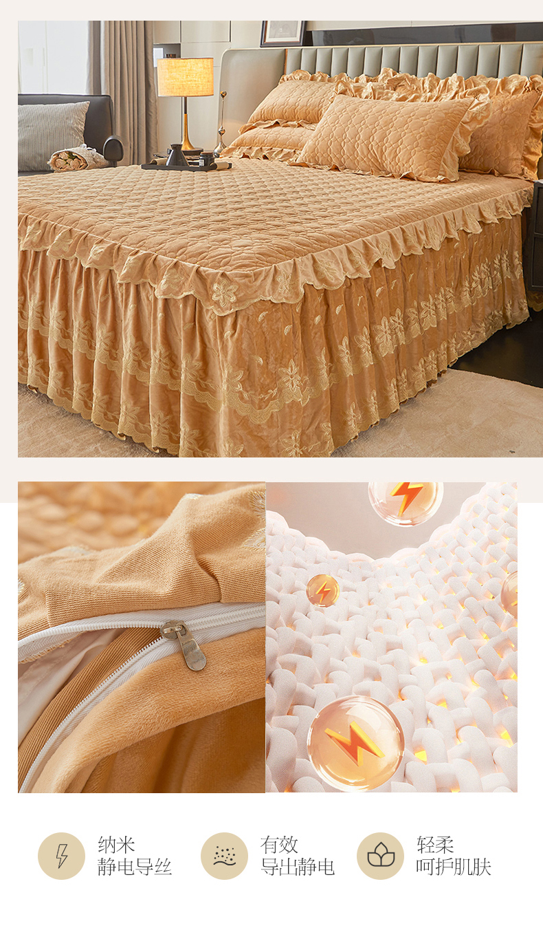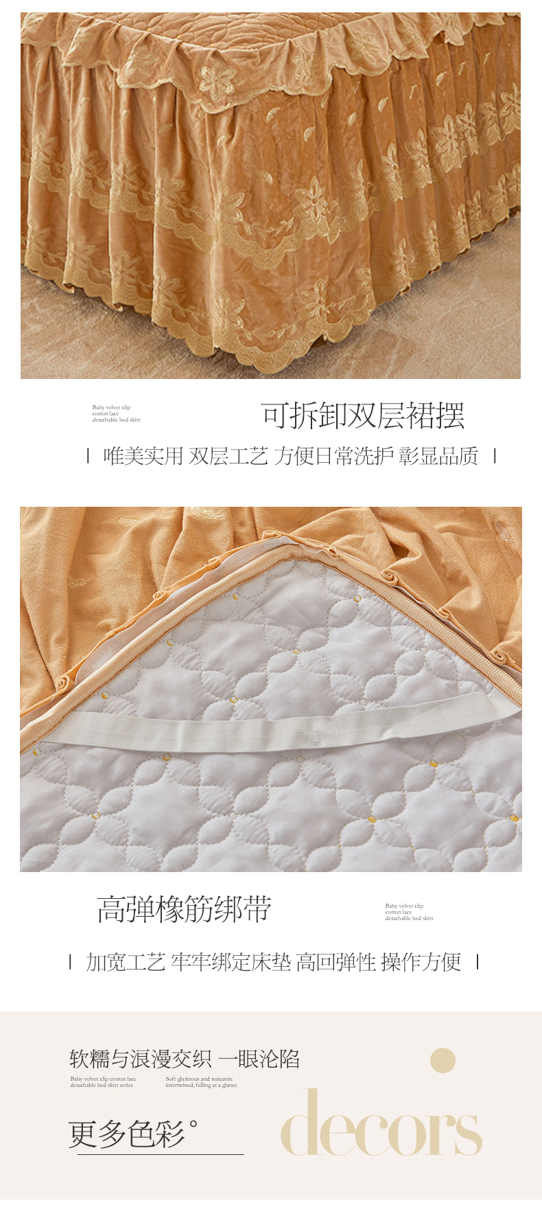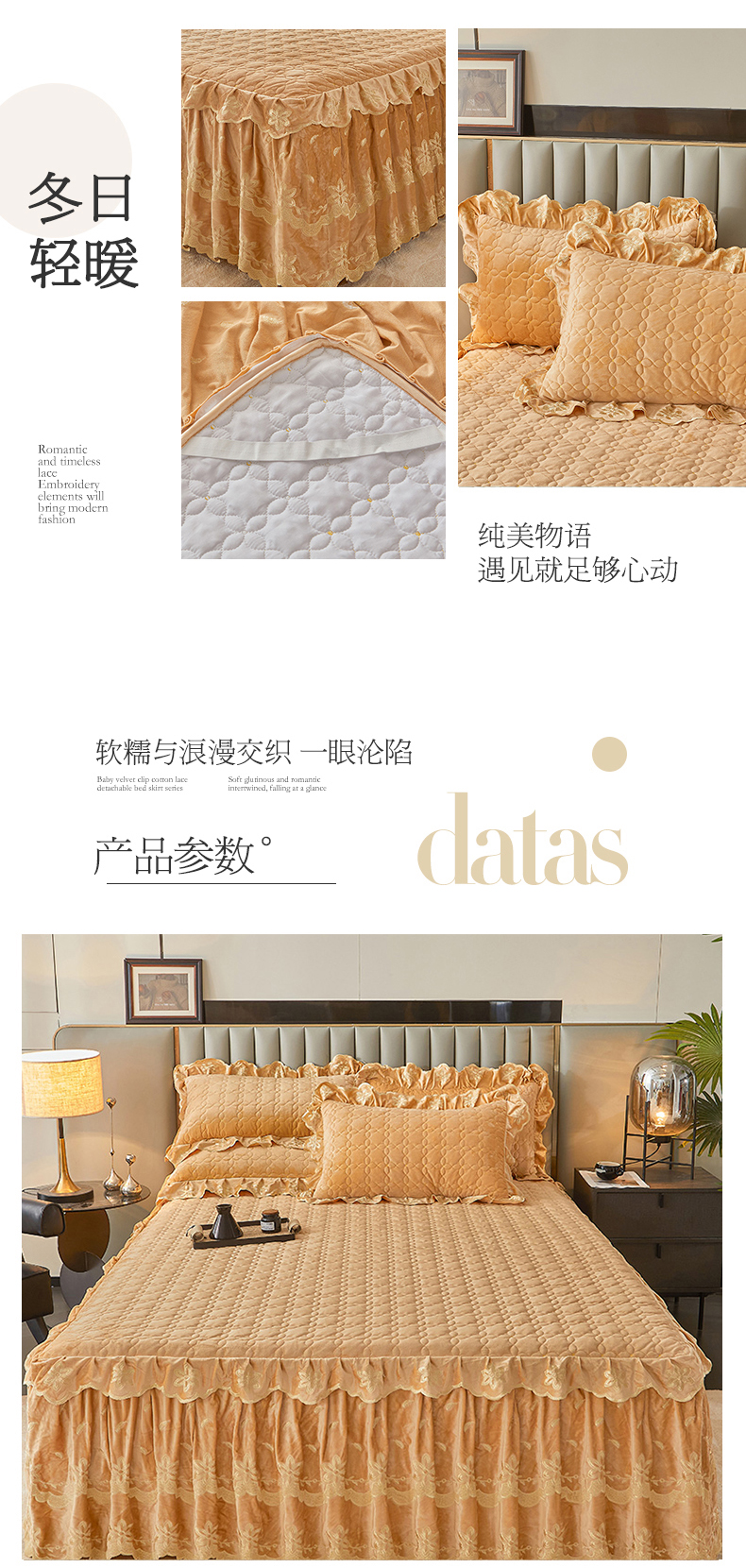 • 91家纺网 家纺一手货源 找家纺 虹星家纺 2024新款可拆卸宝宝绒夹棉床裙三件套-盛世芳华 盛世芳华 暖杏