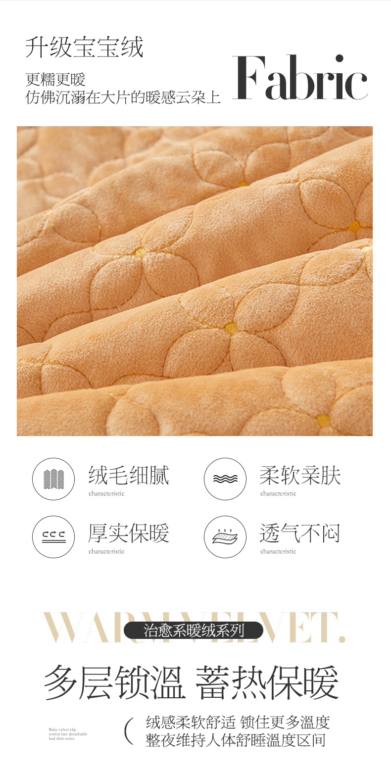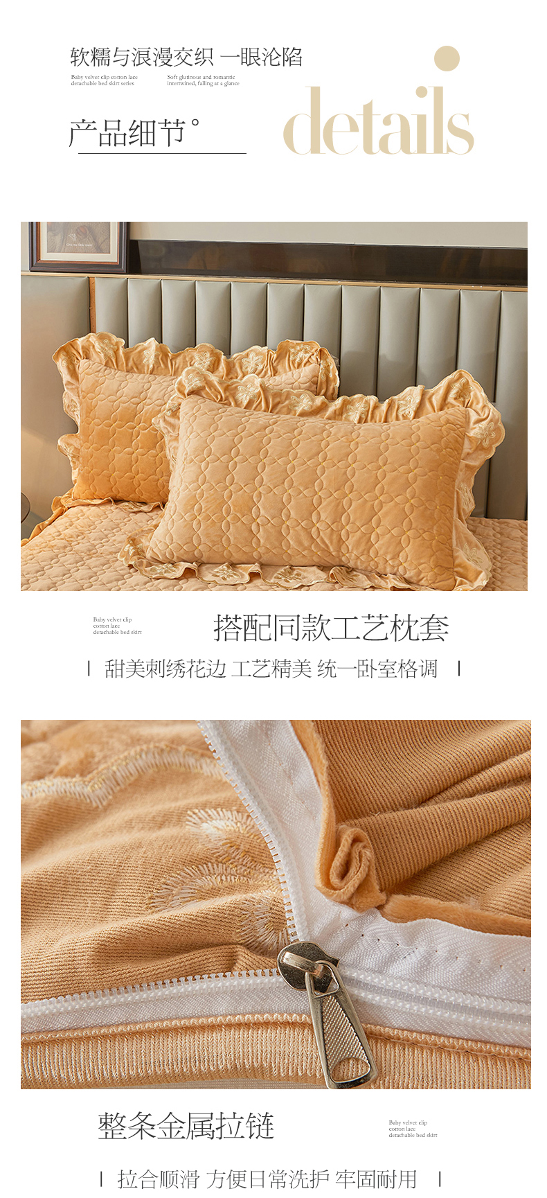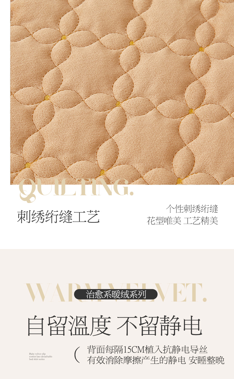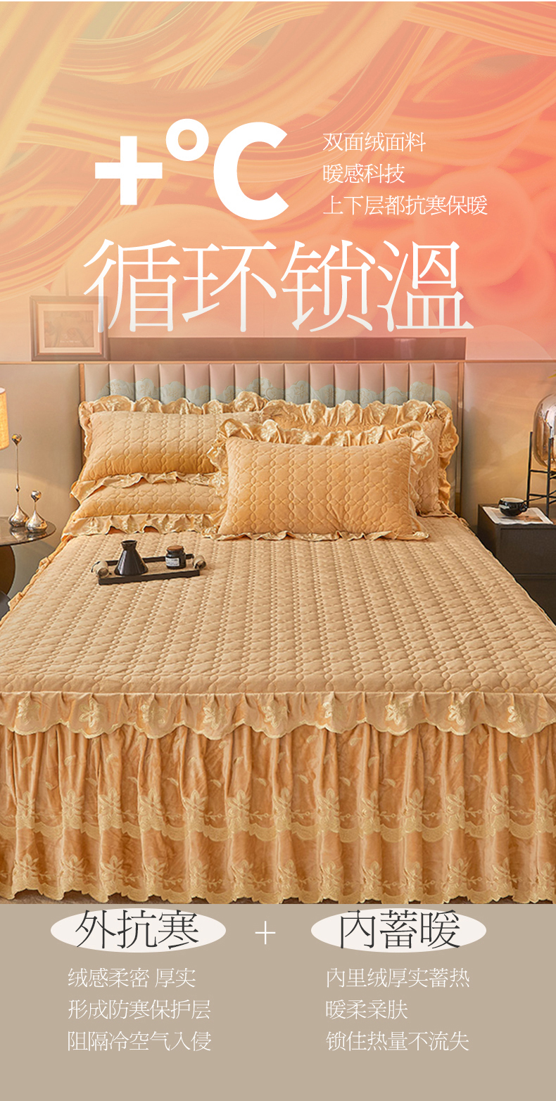 • 91家纺网 家纺一手货源 找家纺 虹星家纺 2024新款可拆卸宝宝绒夹棉床裙三件套-盛世芳华 盛世芳华 暖杏