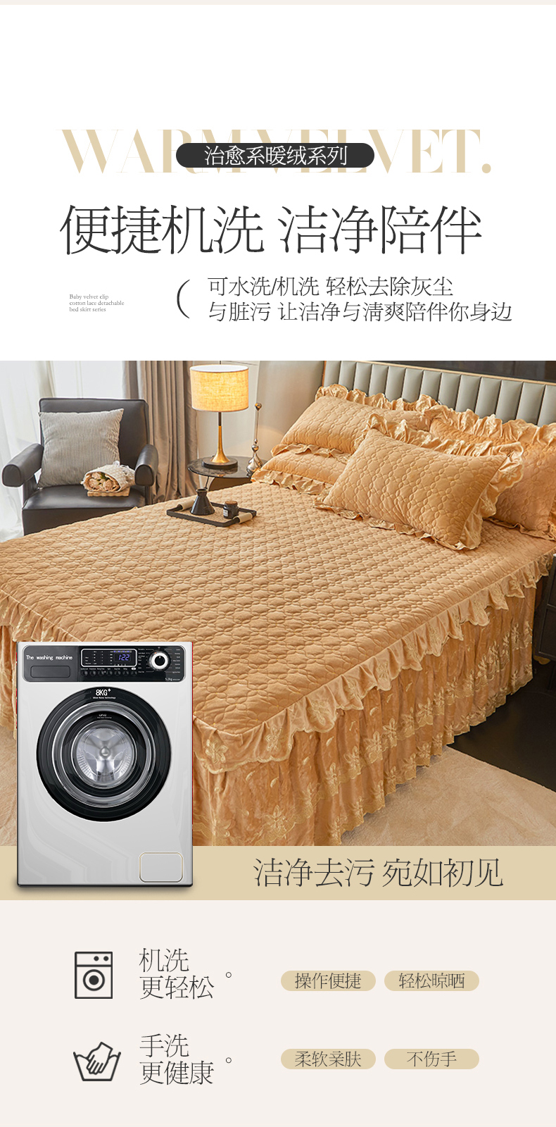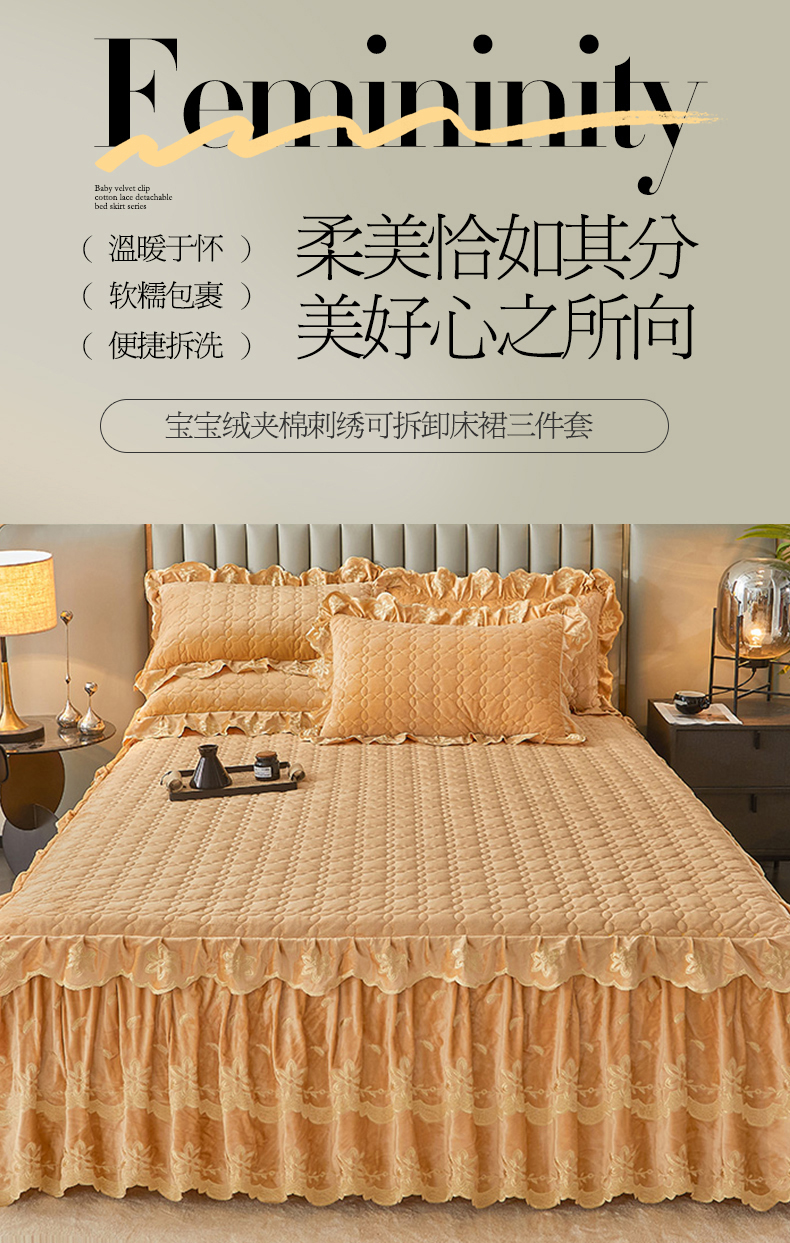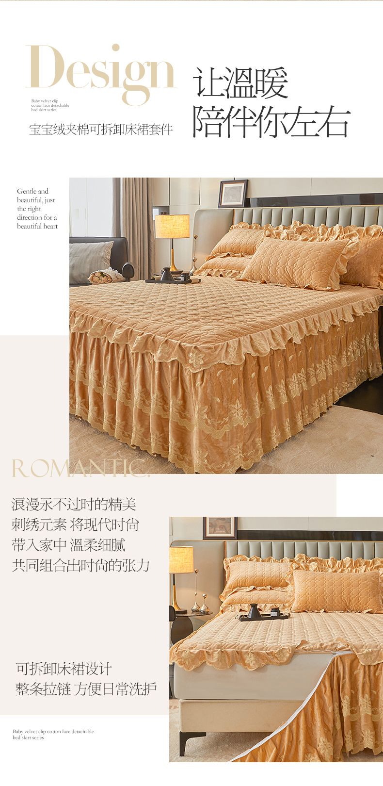 虹星家纺 2024新款可拆卸宝宝绒夹棉床裙三件套-盛世芳华 盛世芳华 暖杏