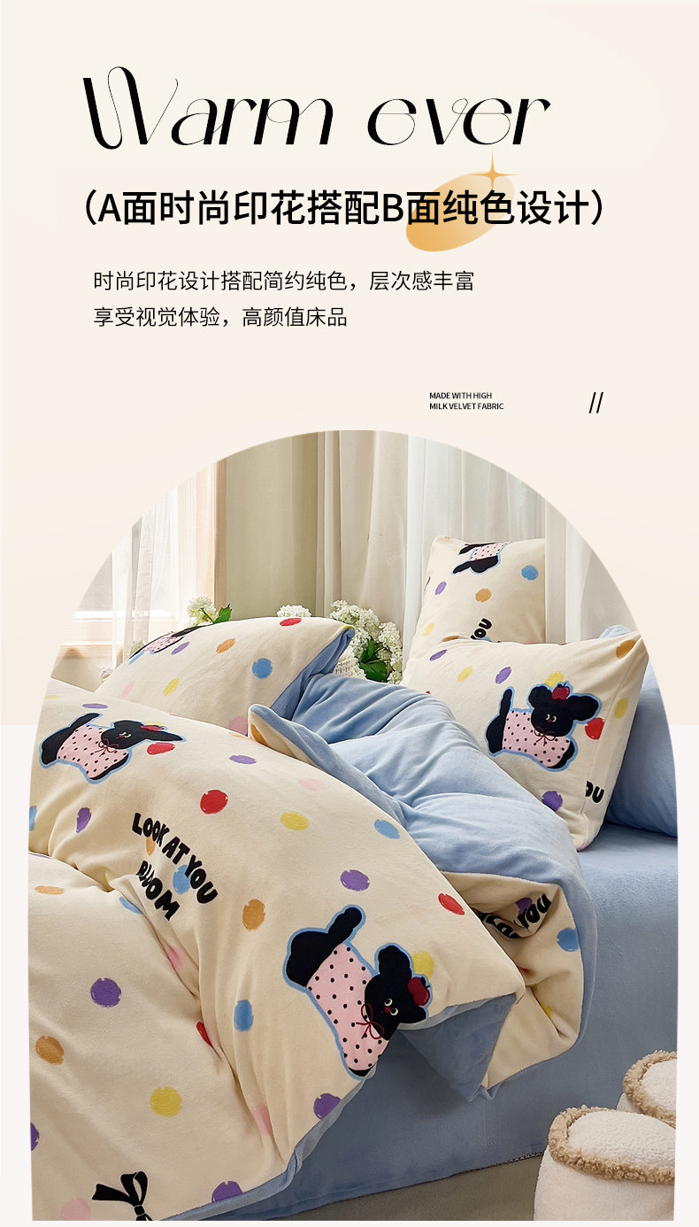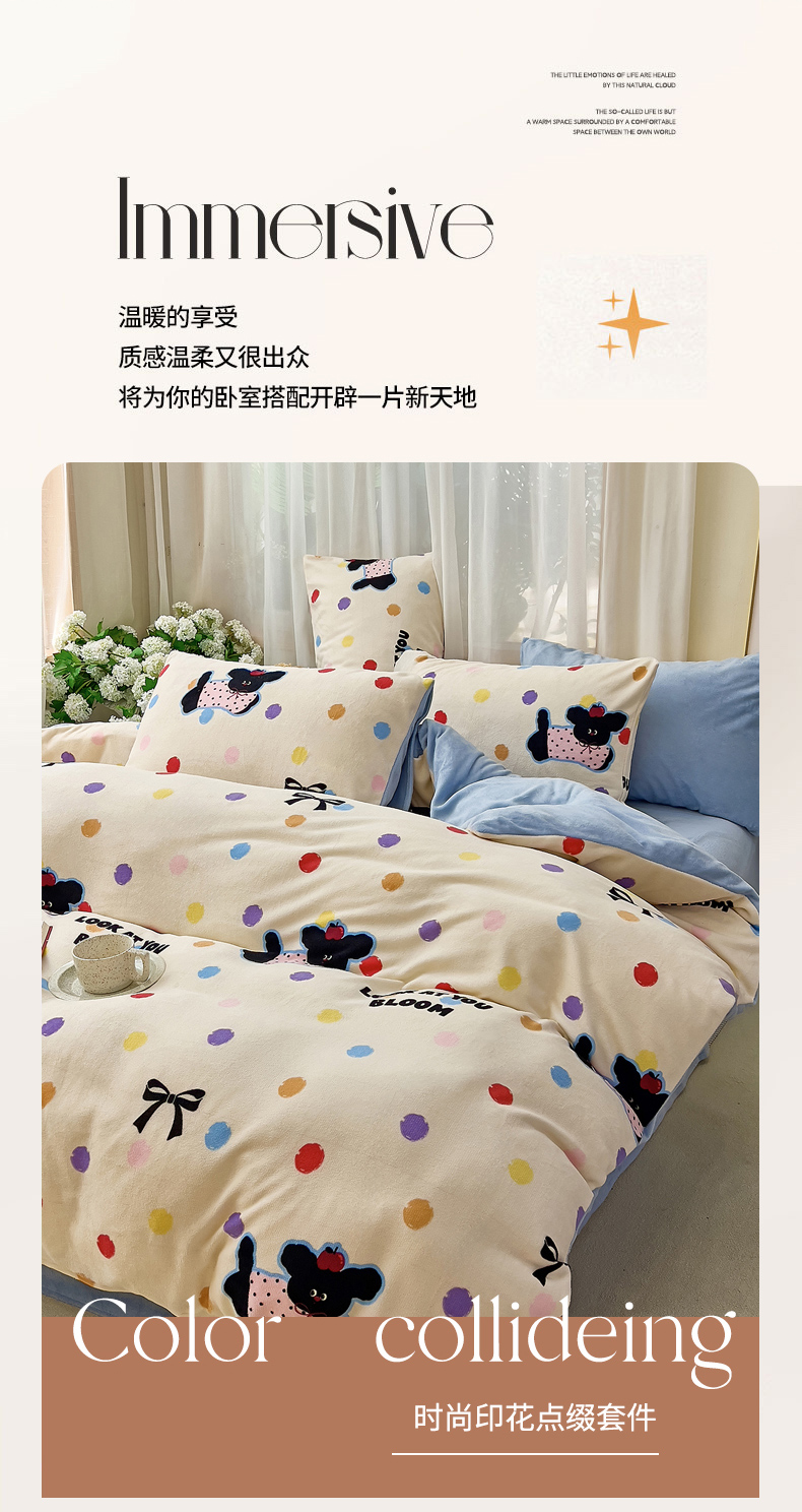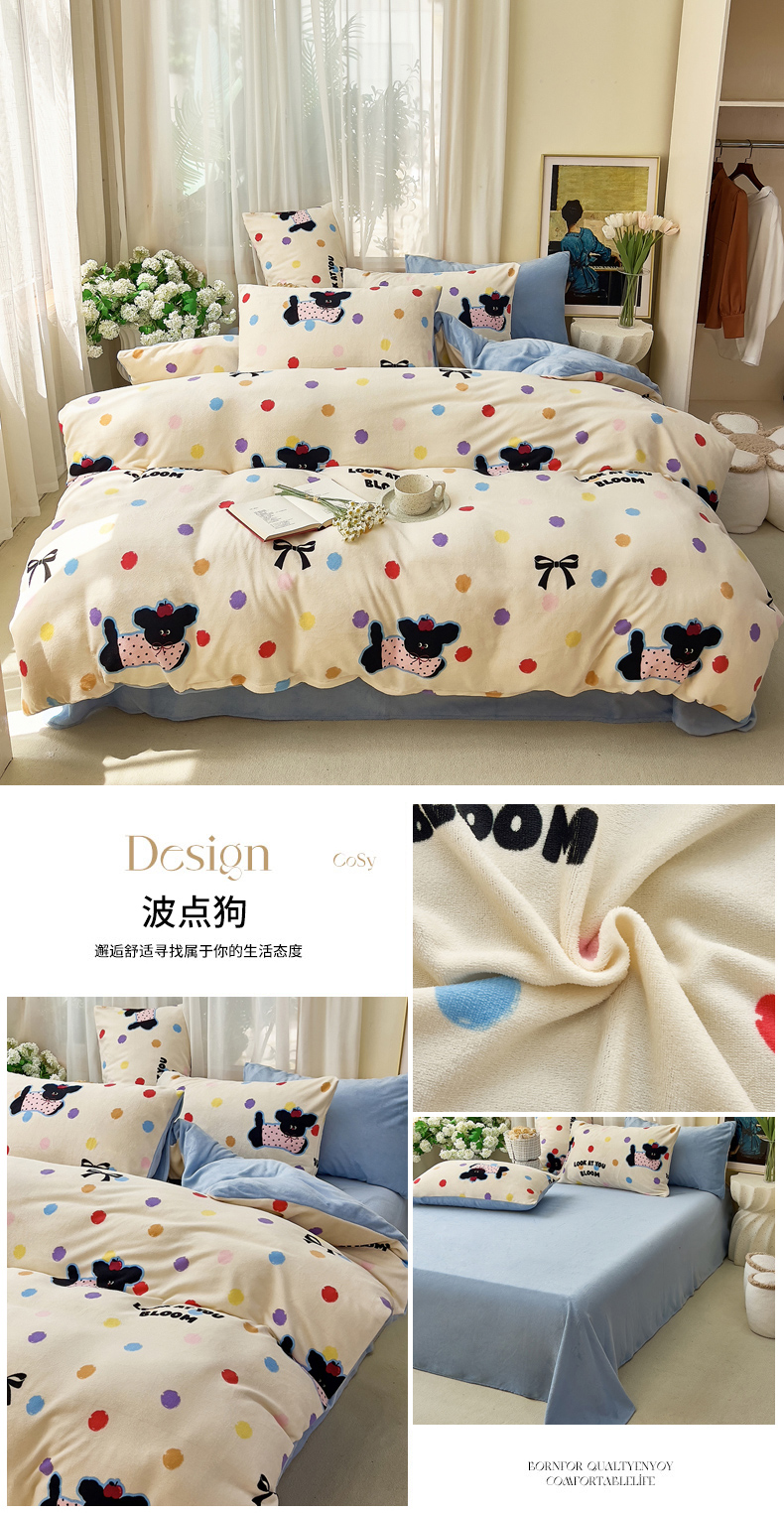 当前位置: 91家纺网 > 商品网购 > 床品套件 > 四件套 > 牛奶绒四件套 > 美派工厂店 2024新款牛奶绒印花四件套 波点狗