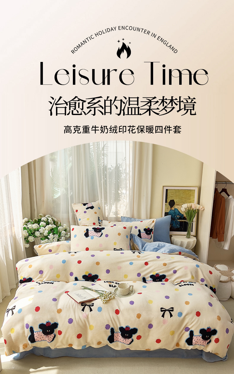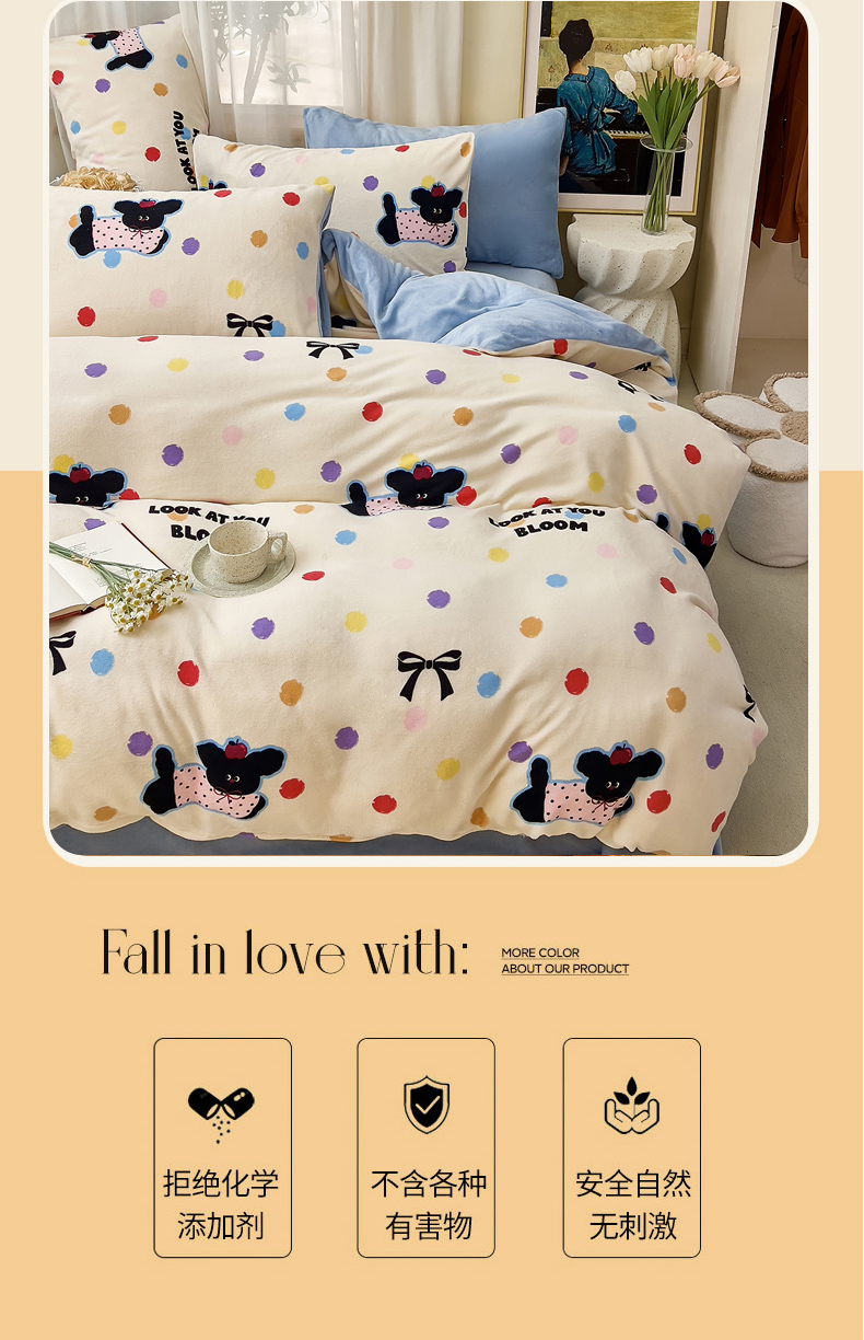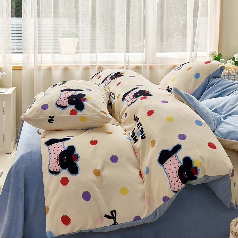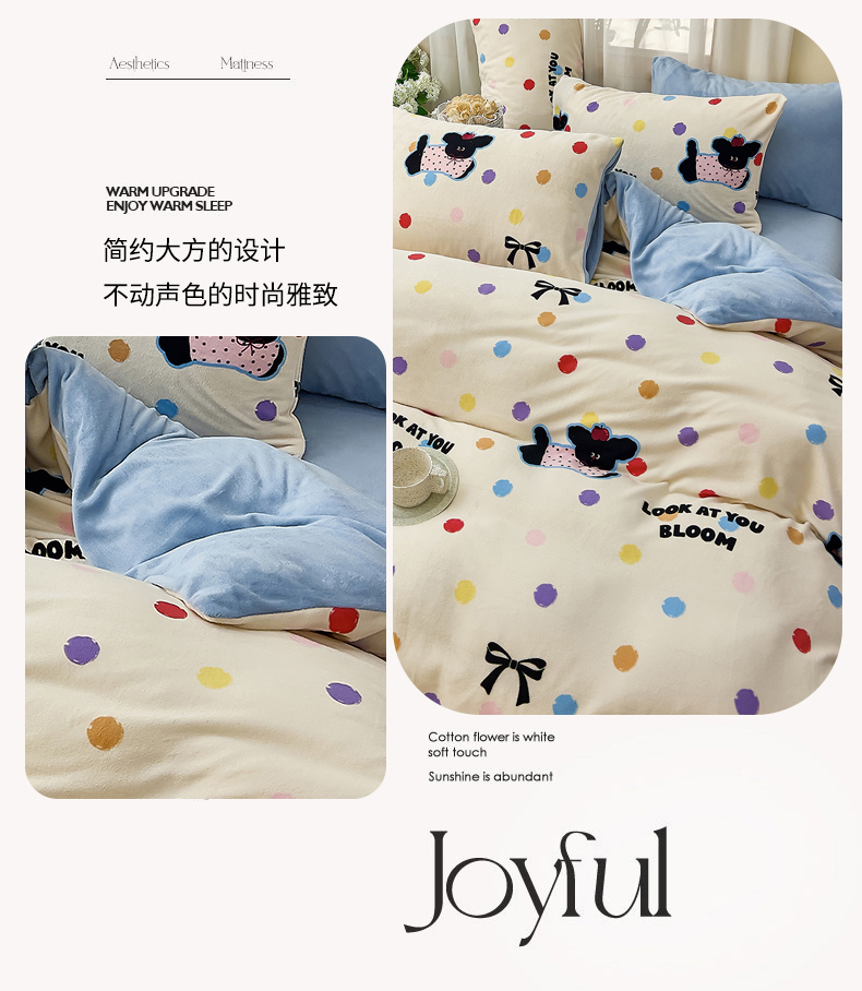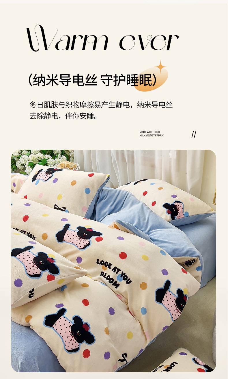 当前位置: 91家纺网 > 商品网购 > 床品套件 > 四件套 > 牛奶绒四件套 > 美派工厂店 2024新款牛奶绒印花四件套 波点狗