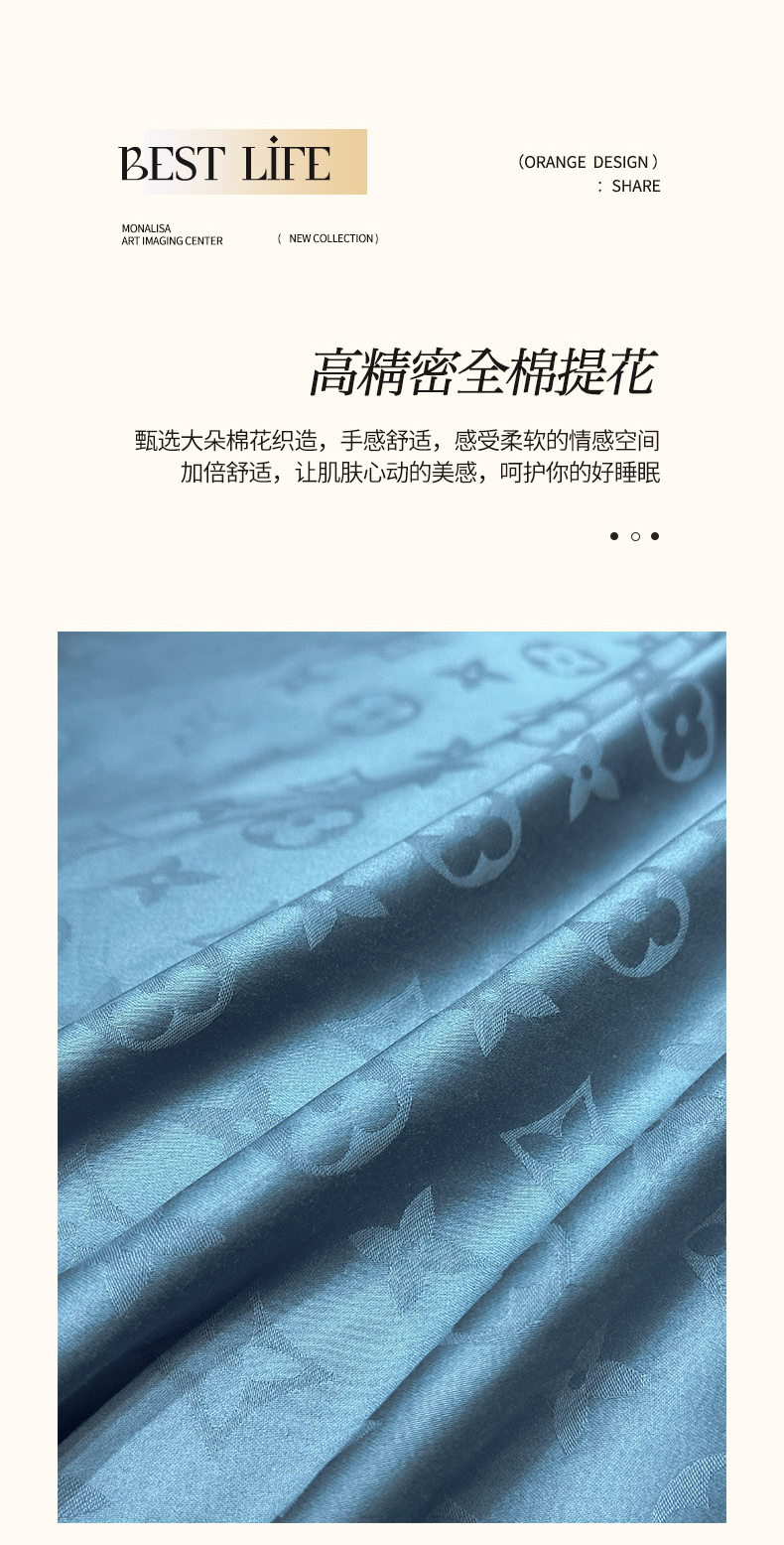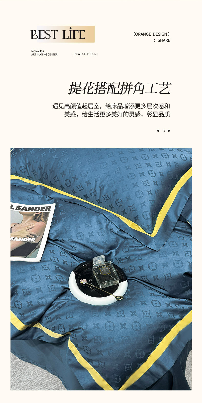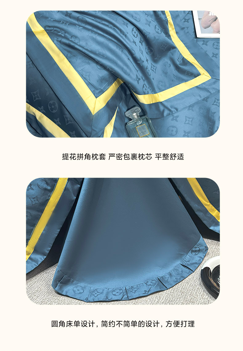 商品名称:2024新款轻奢双拼角全棉提花四件套 遇见经典-孔雀蓝