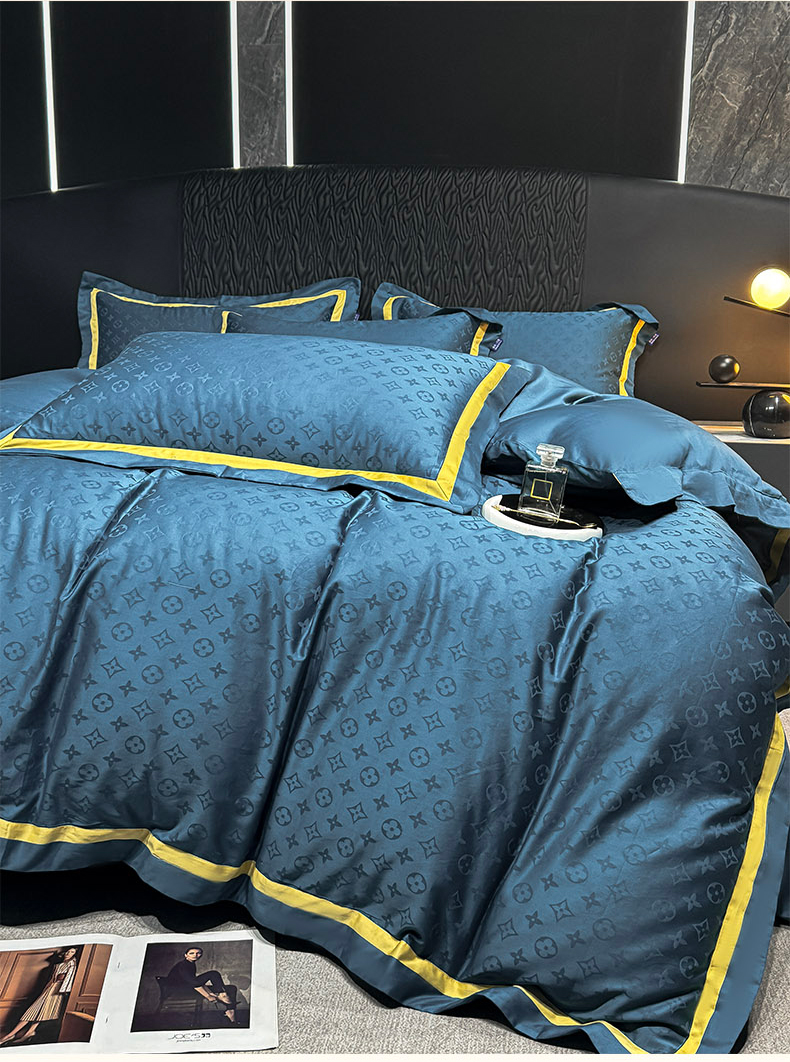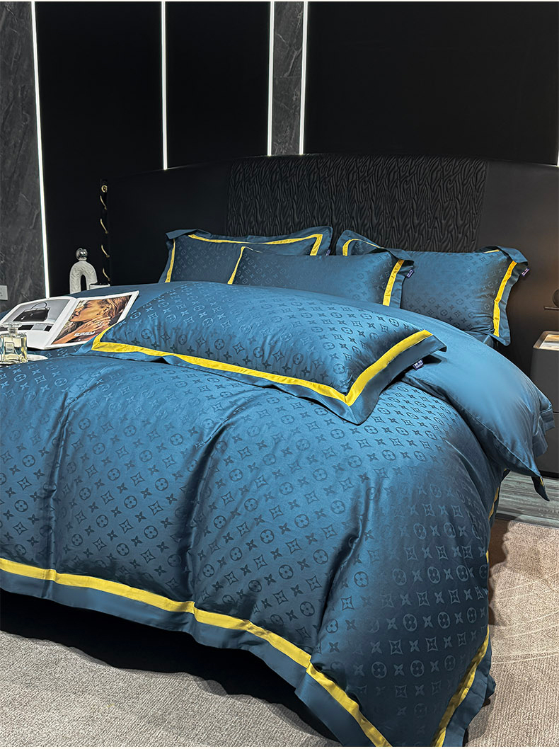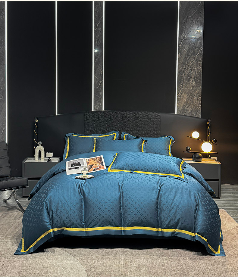 2024新款轻奢双拼角全棉提花四件套 遇见经典-孔雀蓝