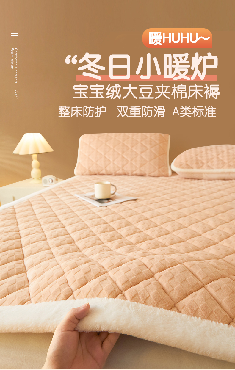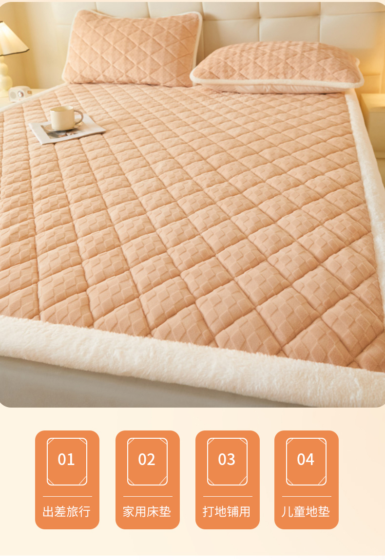 商品名称:(总)鑫钰 2024新款宝宝绒牛奶绒烂花大豆夹棉床褥床护垫-菱形格