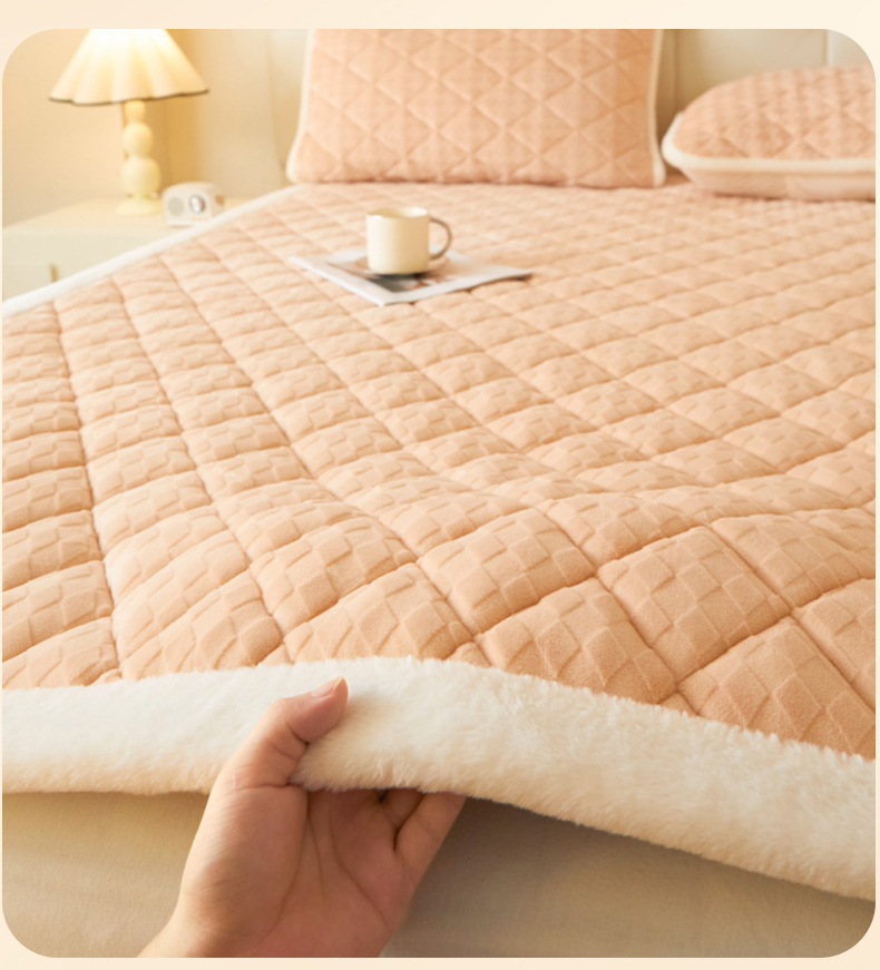 (总)鑫钰 2024新款宝宝绒牛奶绒烂花大豆夹棉床褥床护垫-菱形格