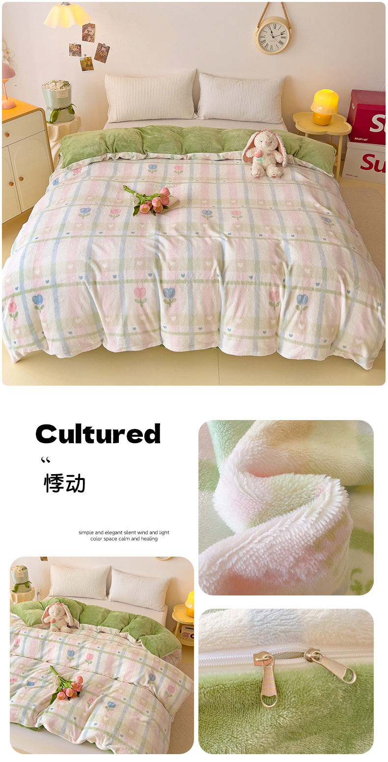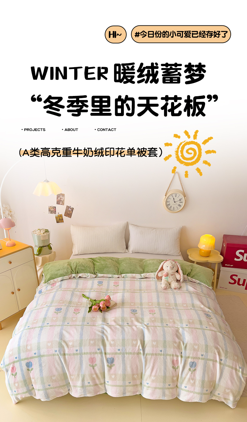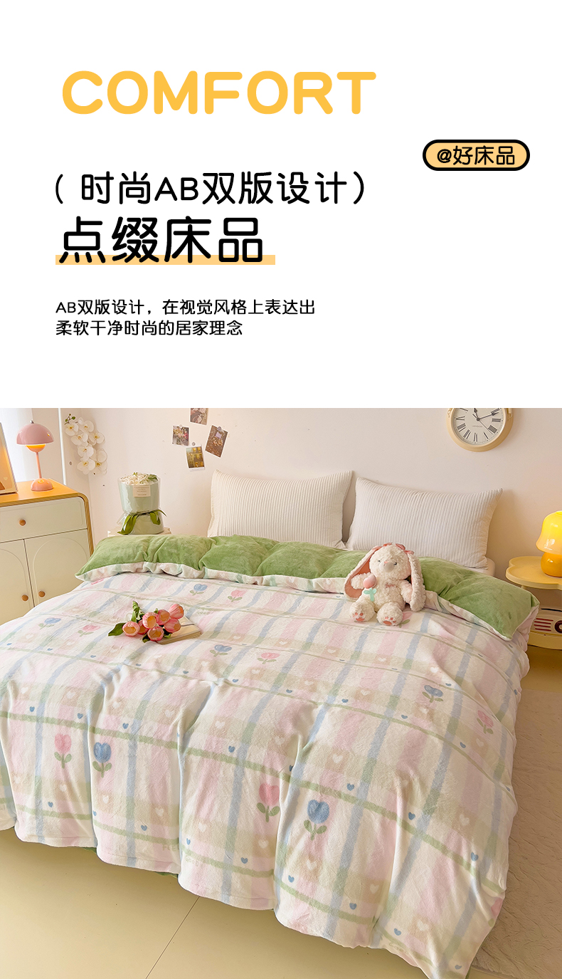 • 91家纺网 家纺一手货源 找家纺 大柏树 2025新款A类高克重亲肤舒适牛奶绒印花四件套-单被套可定制 悸动