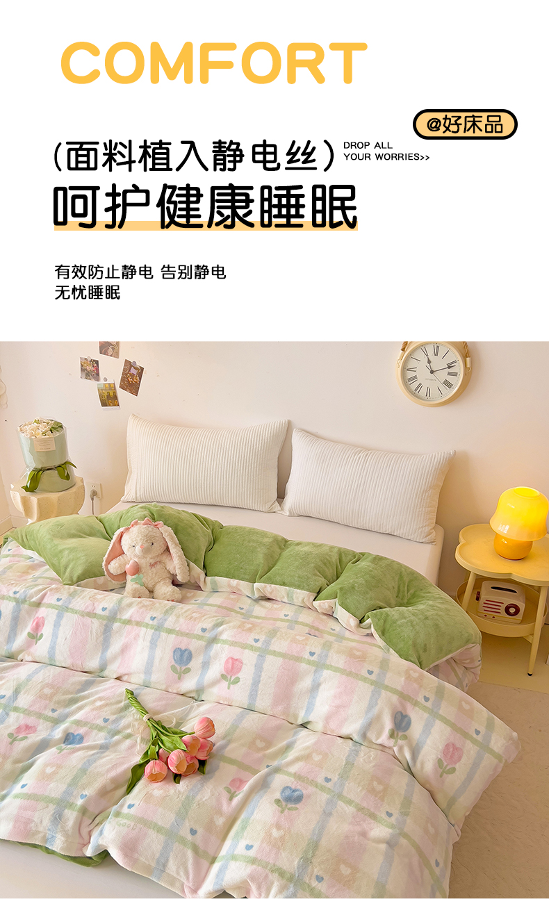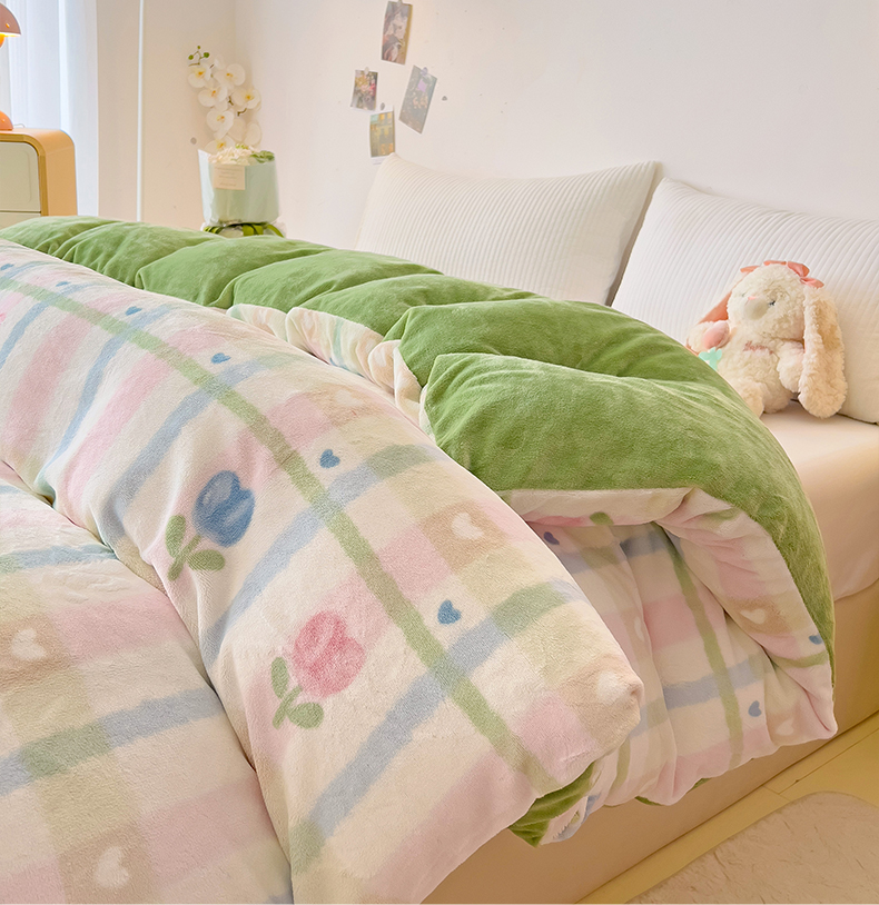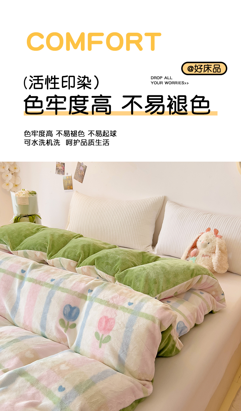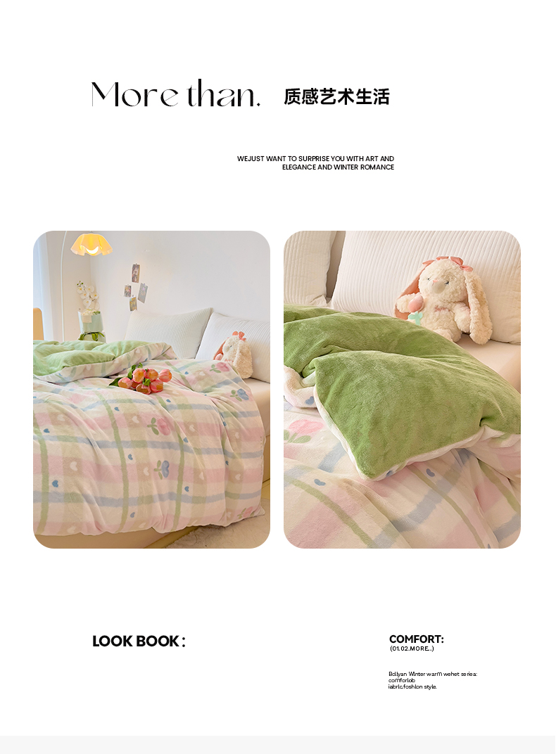 • 91家纺网 家纺一手货源 找家纺 大柏树 2025新款A类高克重亲肤舒适牛奶绒印花四件套-单被套可定制 悸动