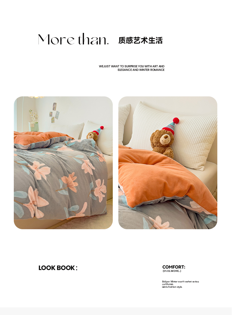 • 91家纺网 家纺一手货源 找家纺 大柏树 2025新款A类高克重亲肤舒适牛奶绒印花四件套-单被套可定制 月下花夕-灰