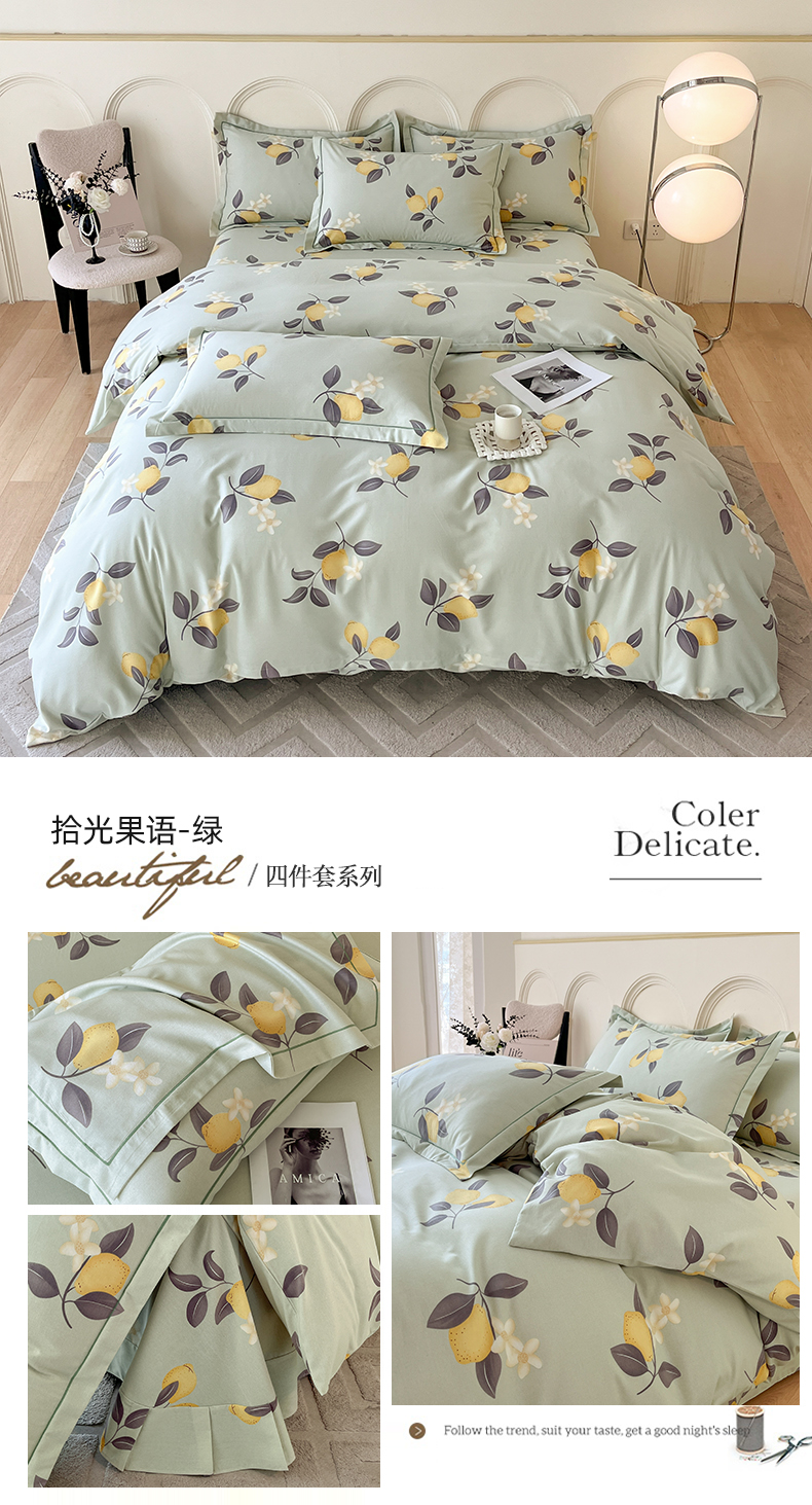 当前位置: 91家纺网 > 商品网购 > 床品套件 > 四件套 > 普通磨毛四件套 > 铭成 2024新款全棉生态喷气加厚磨毛四件套拾光果语-绿