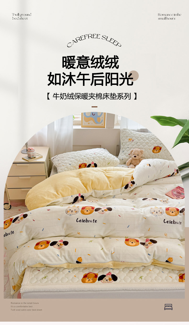 当前位置: 91家纺网 > 商品网购 > 床品套件 > 四件套 > 其它四件套 > 慕尚家纺 2025牛奶绒床盖床褥被套三件套四件套 床垫-快乐乐园