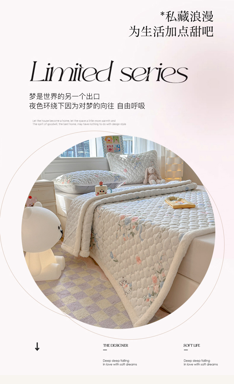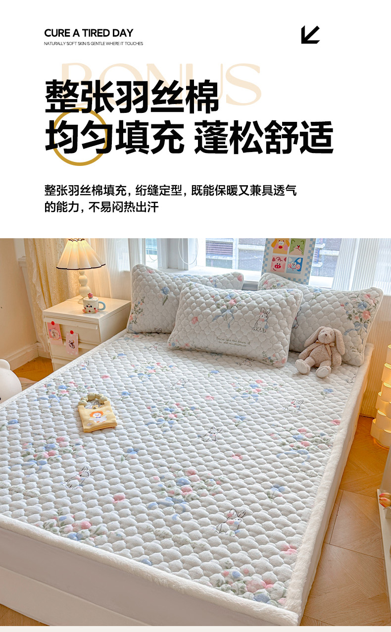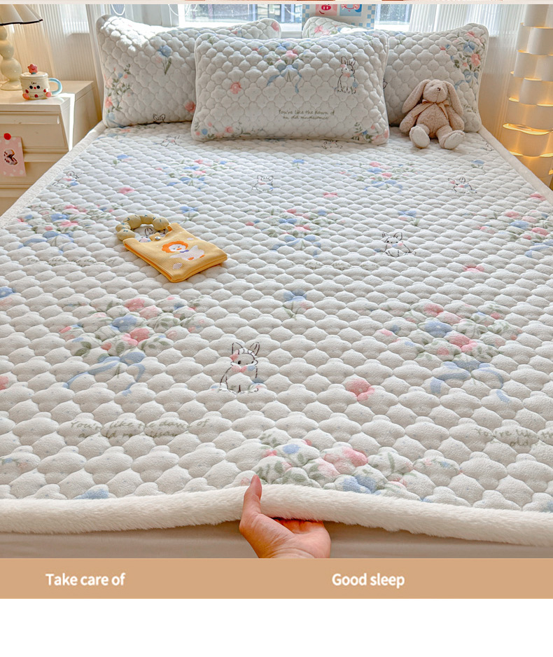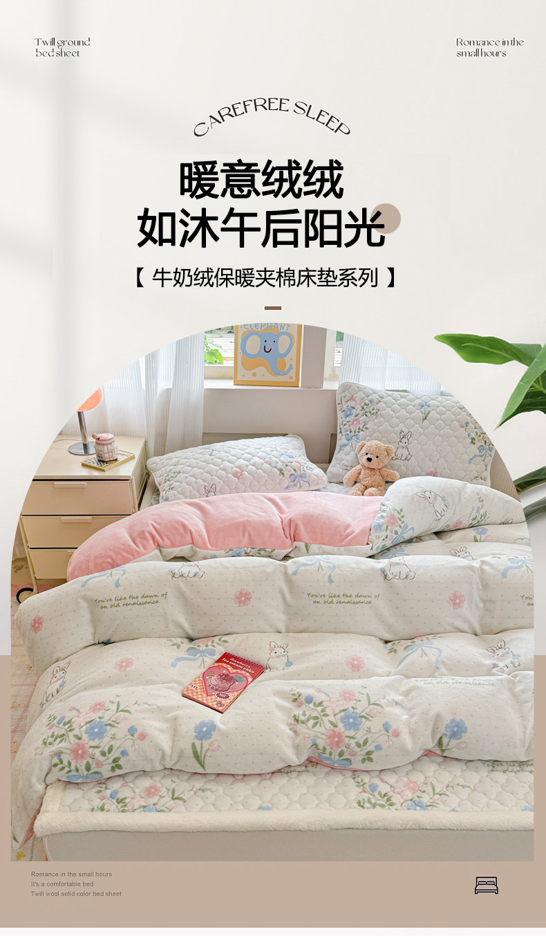 当前位置: 91家纺网 > 商品网购 > 床品套件 > 四件套 > 其它四件套 > 慕尚家纺 2025牛奶绒床盖床褥被套三件套四件套 床垫-鲜花小兔