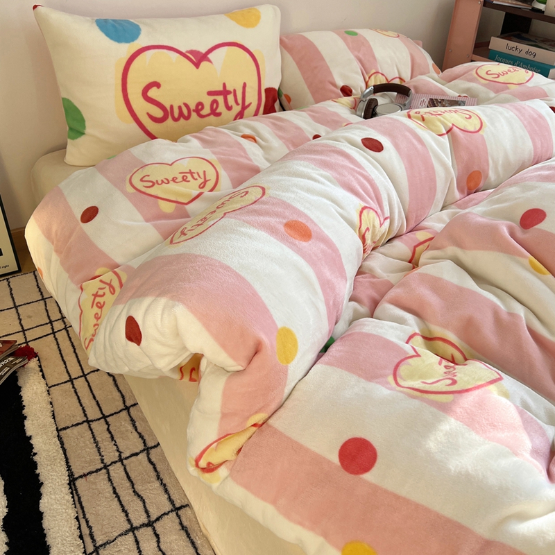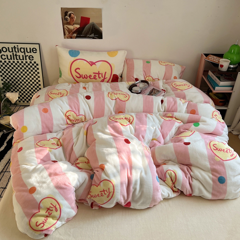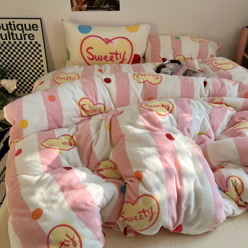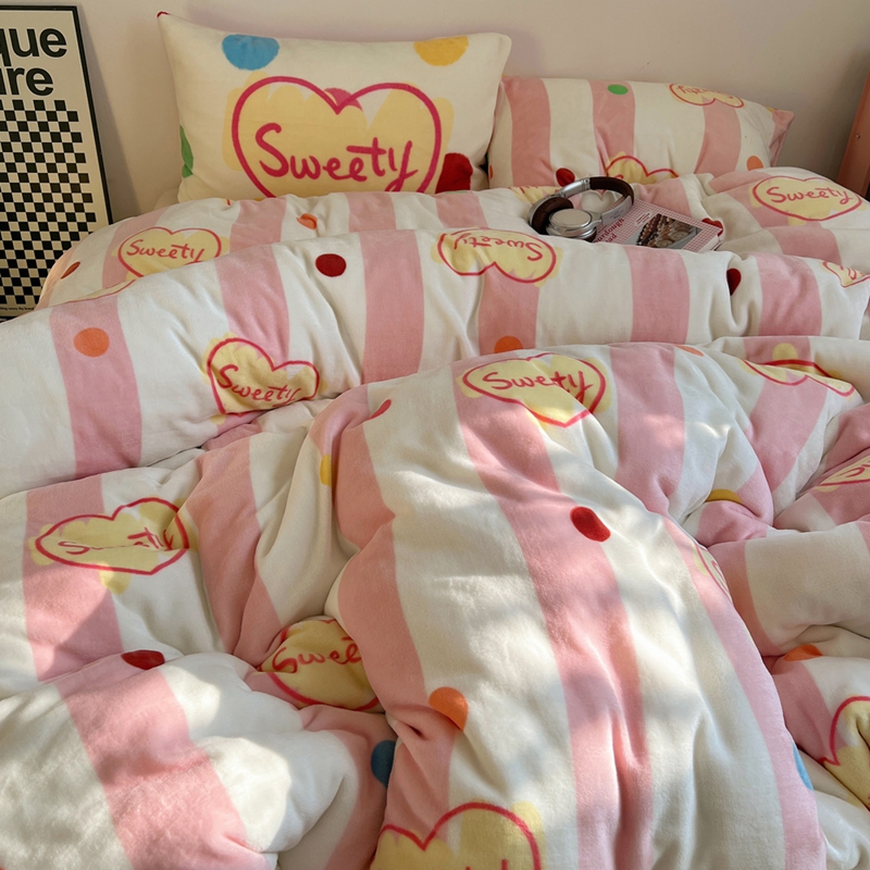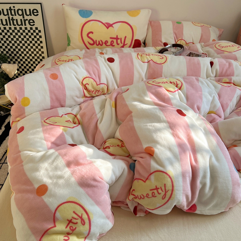 商品名称:桃喜 2024新款多巴胺牛奶绒甜酷时尚混搭系列四件套 粉条纹甜心