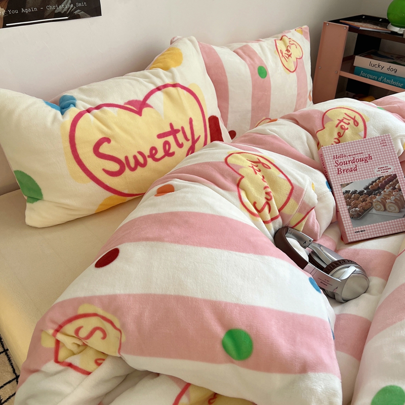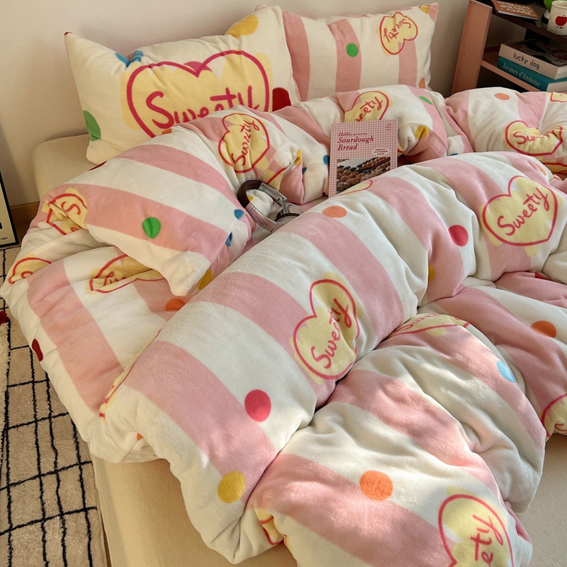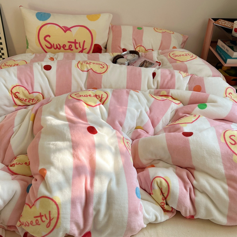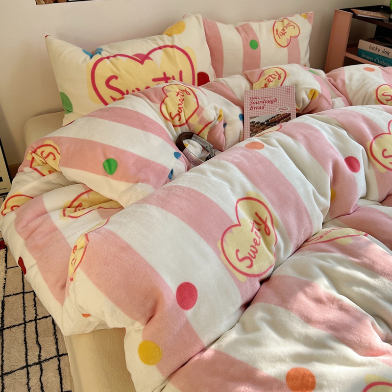 桃喜 2024新款多巴胺牛奶绒甜酷时尚混搭系列四件套 粉条纹甜心