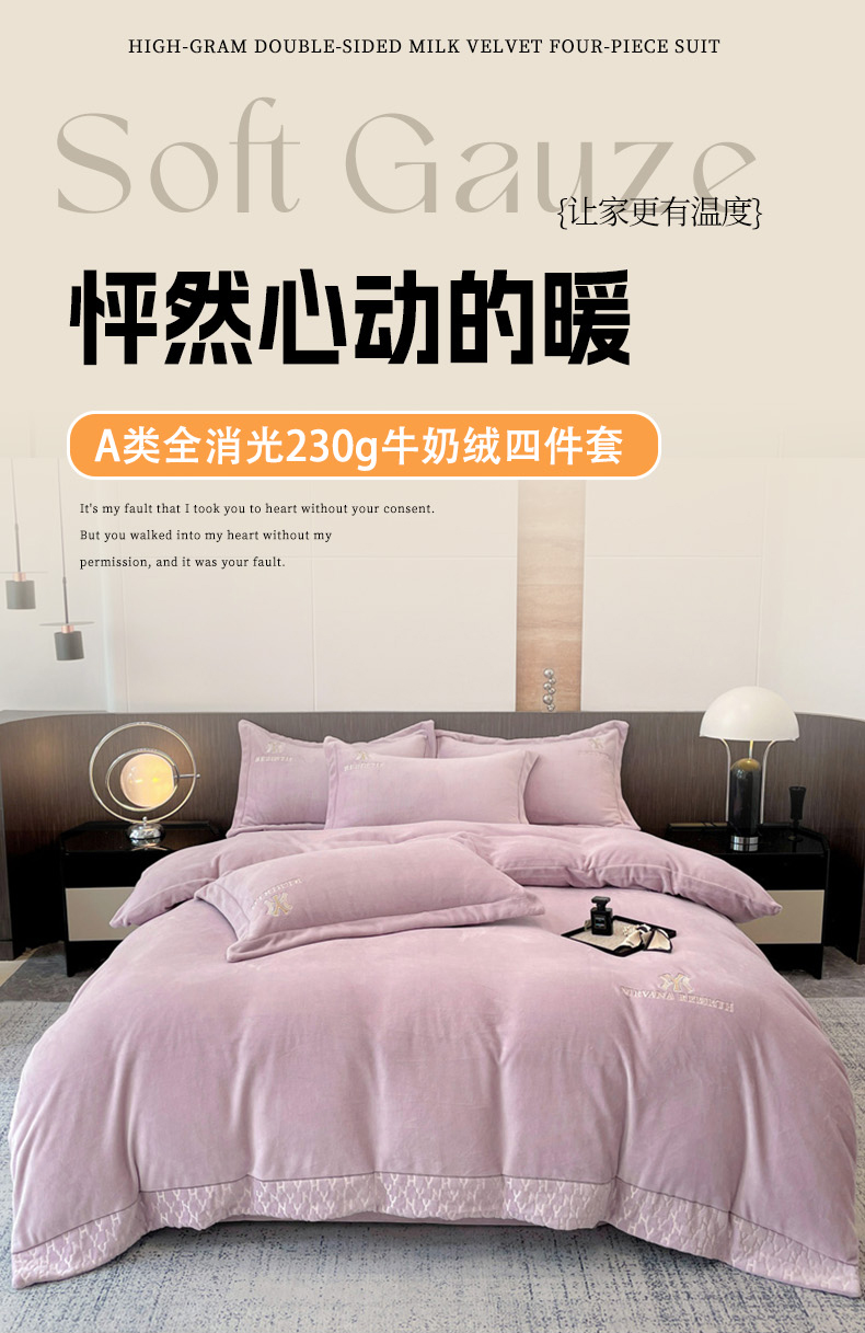 星尚家纺 2024新款全消光A类230g牛奶绒四件套-维也纳 香芋紫