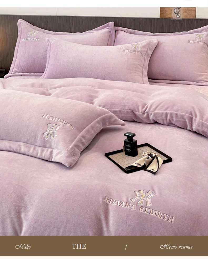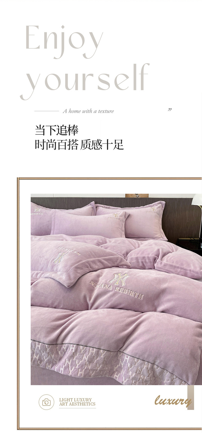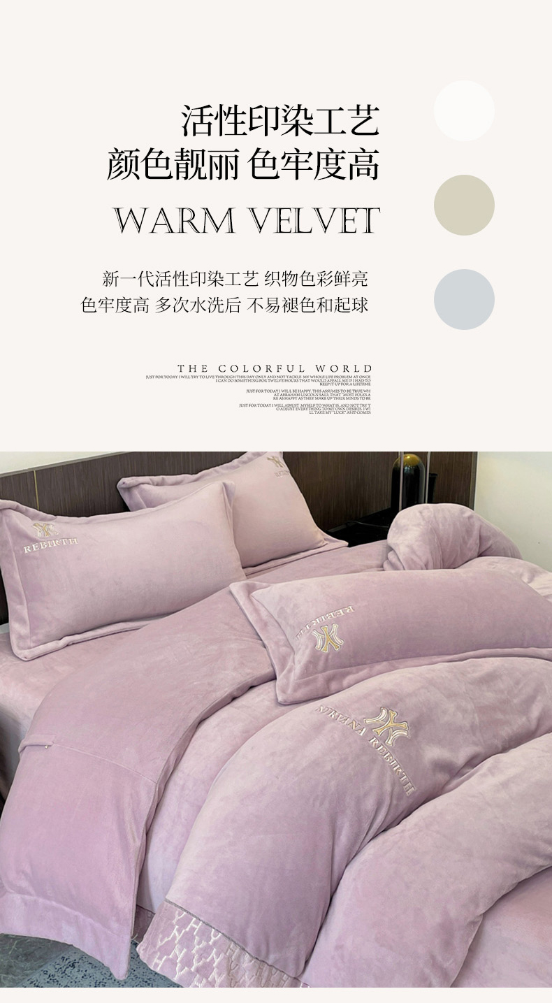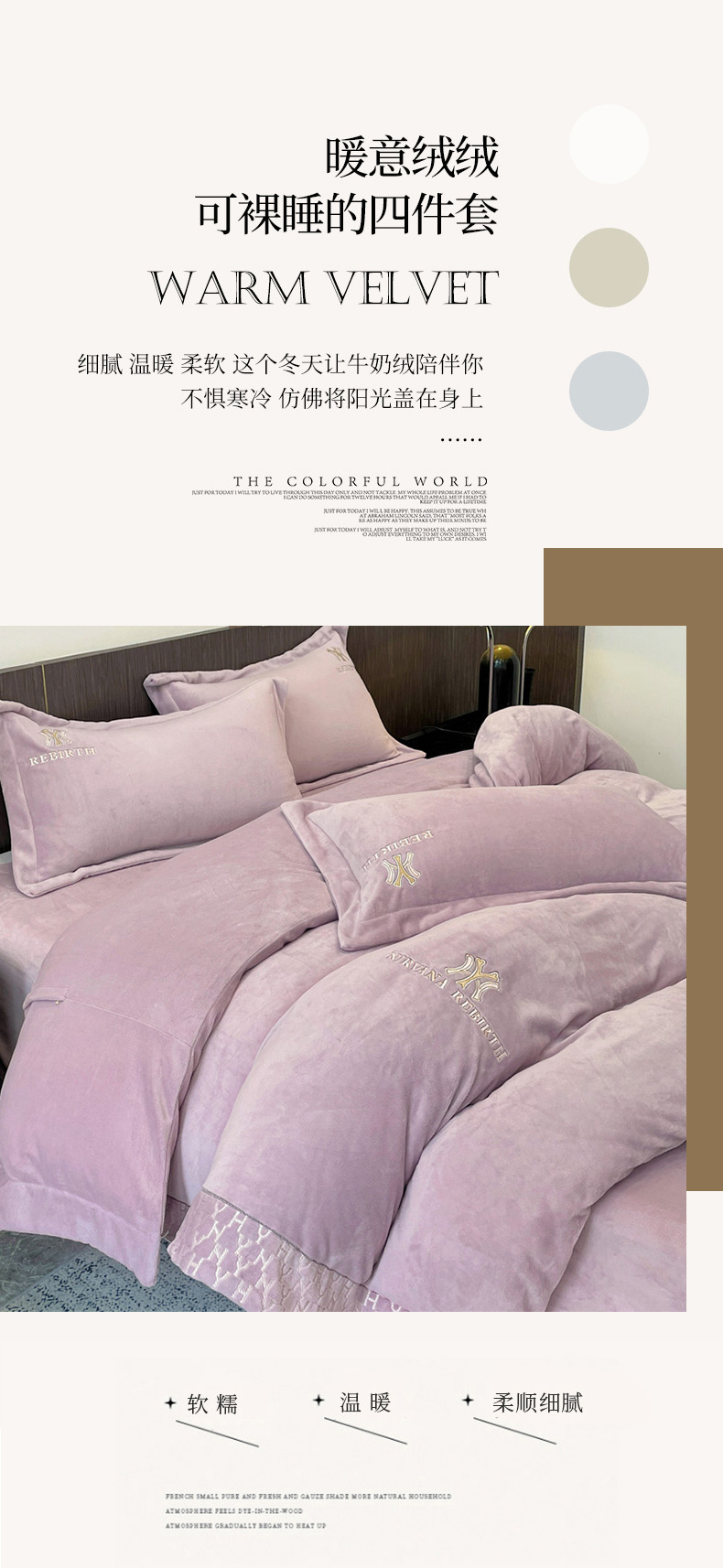 (总)星尚家纺 2024新款全消光A类230g牛奶绒韩版绣花绒四件套-绚丽花语,豆沙粉,浪漫紫,雾霾蓝,樱花粉,晨雾绿