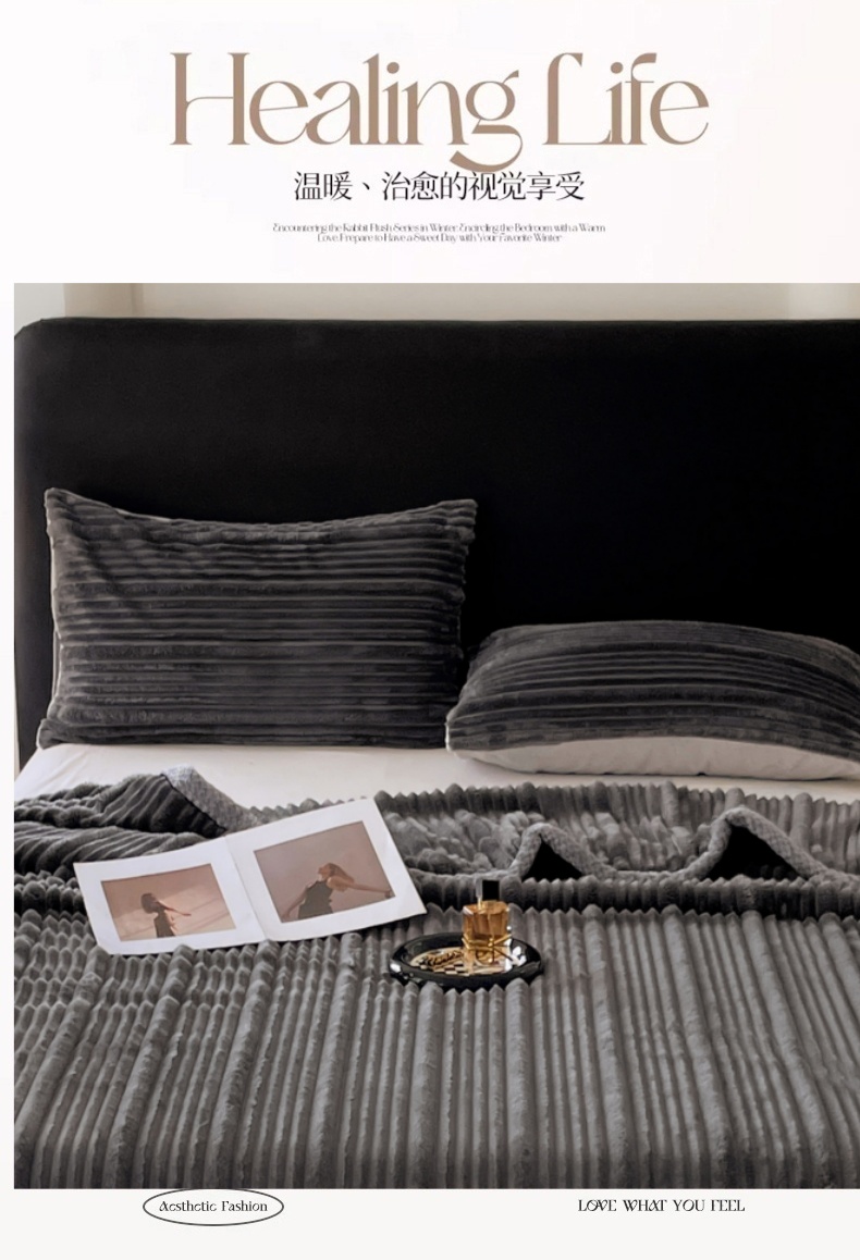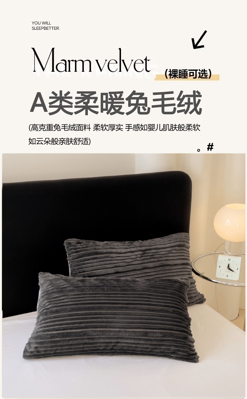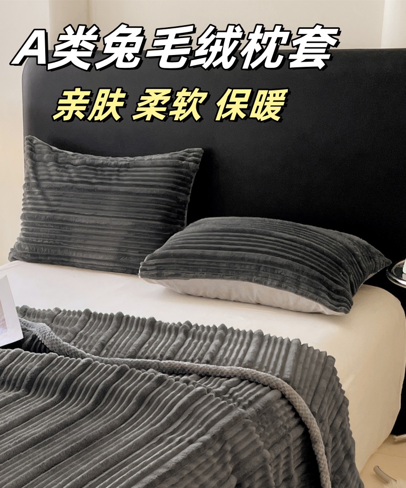 商品名称:梦舒羽 2025新款兔毛绒子母条枕套 深灰