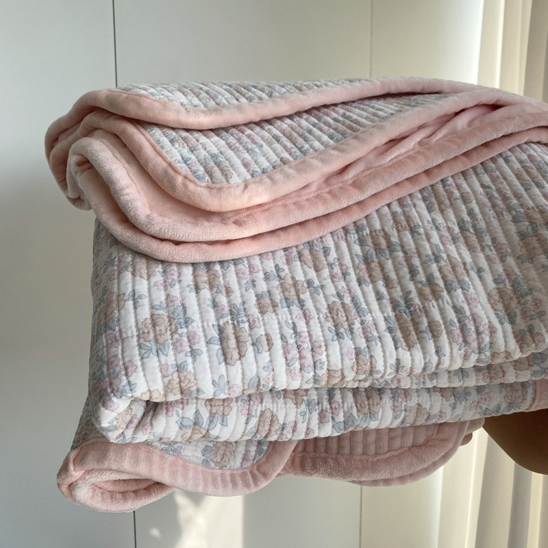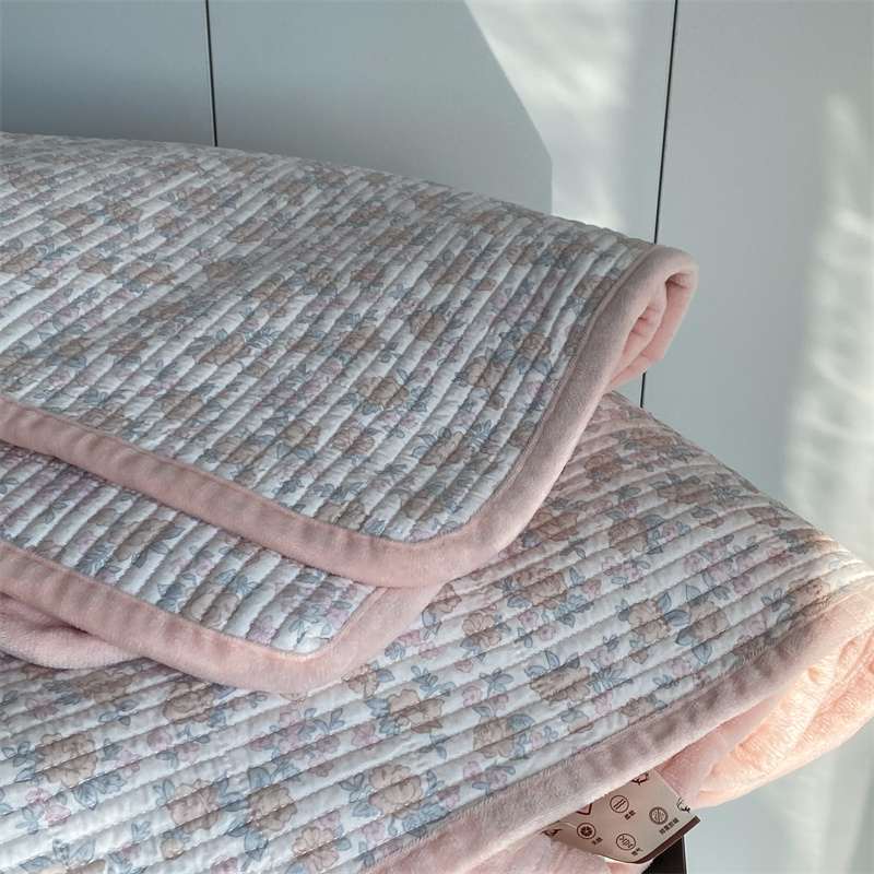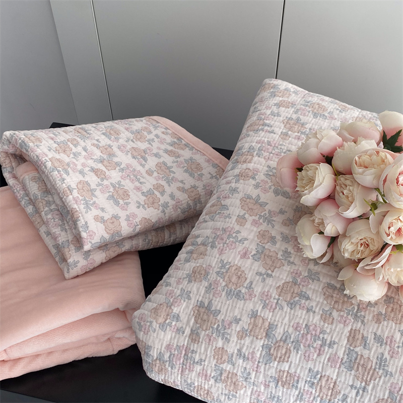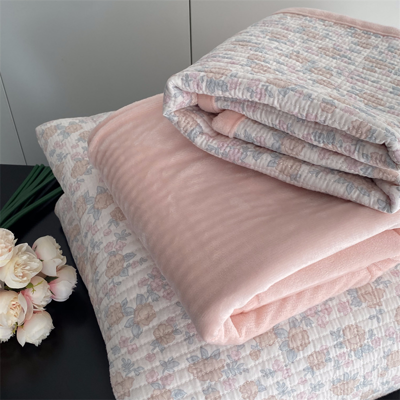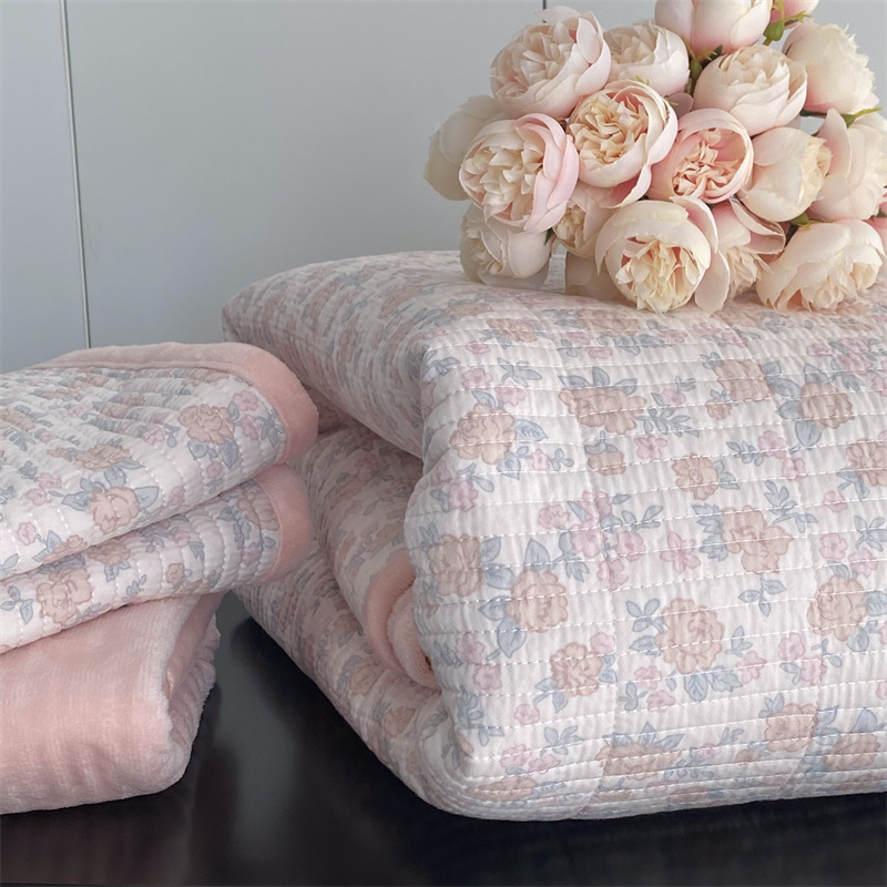 莱豫家纺 2024新款砂洗棉加绒床盖三件套(叠拍图) 蔷薇粉