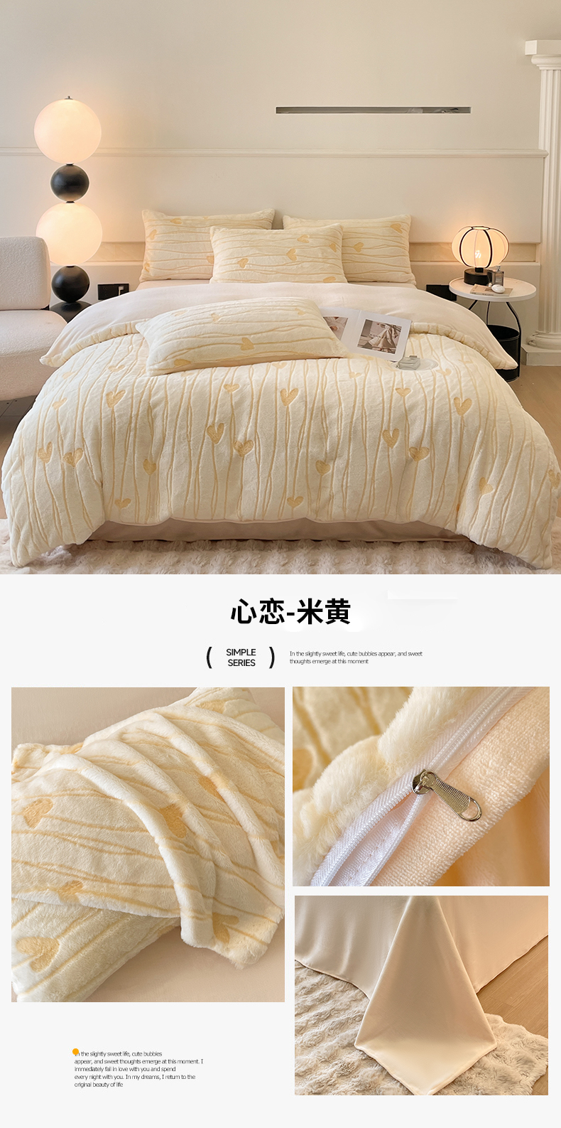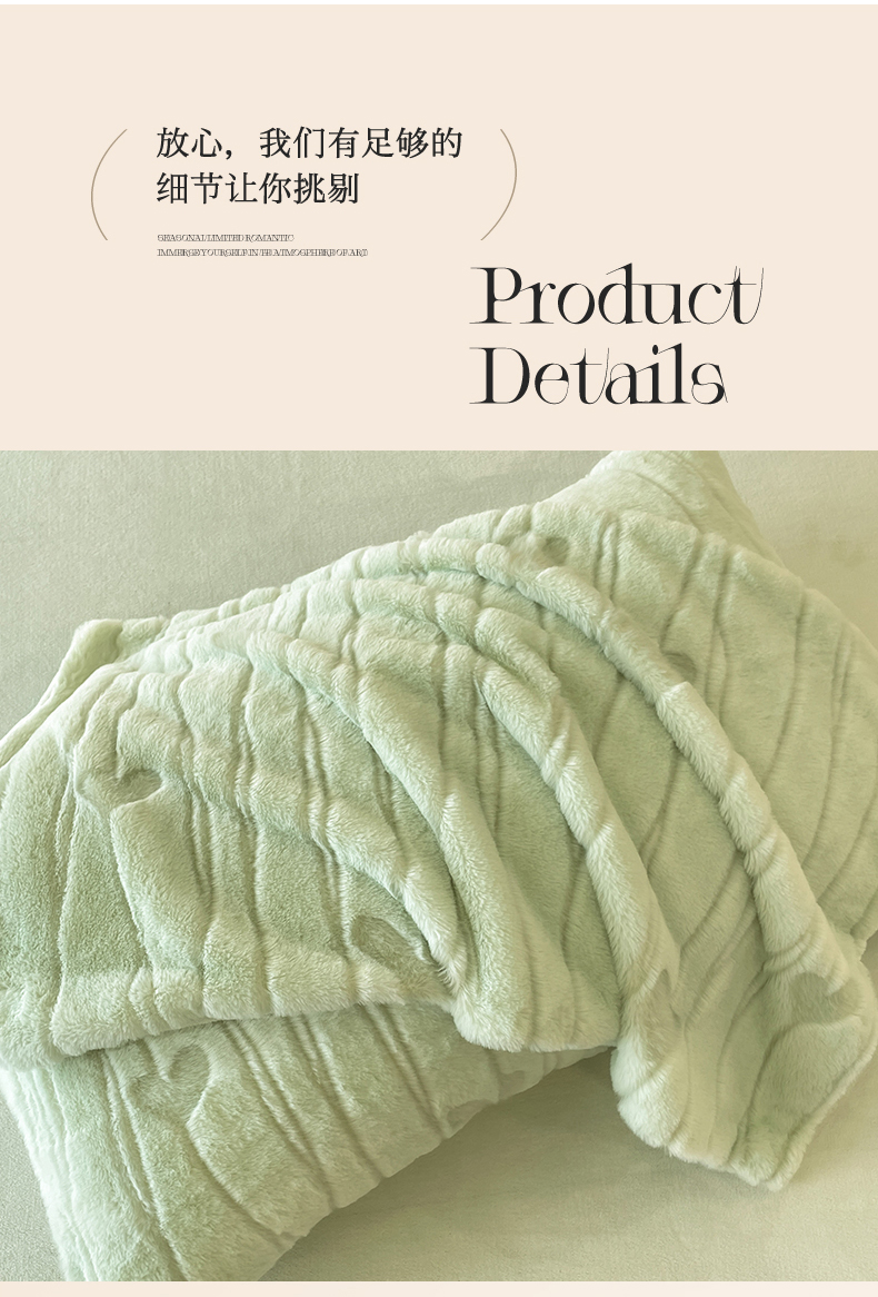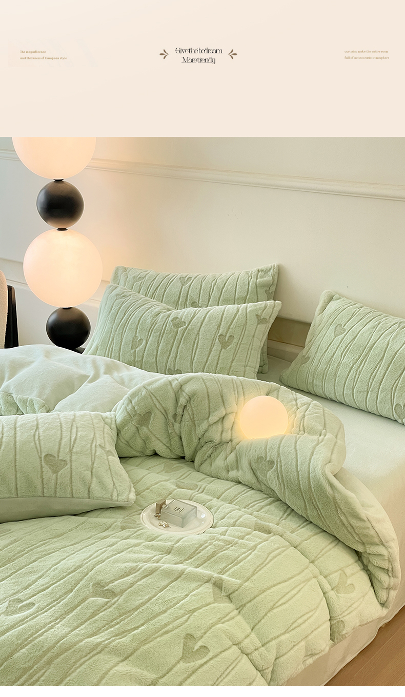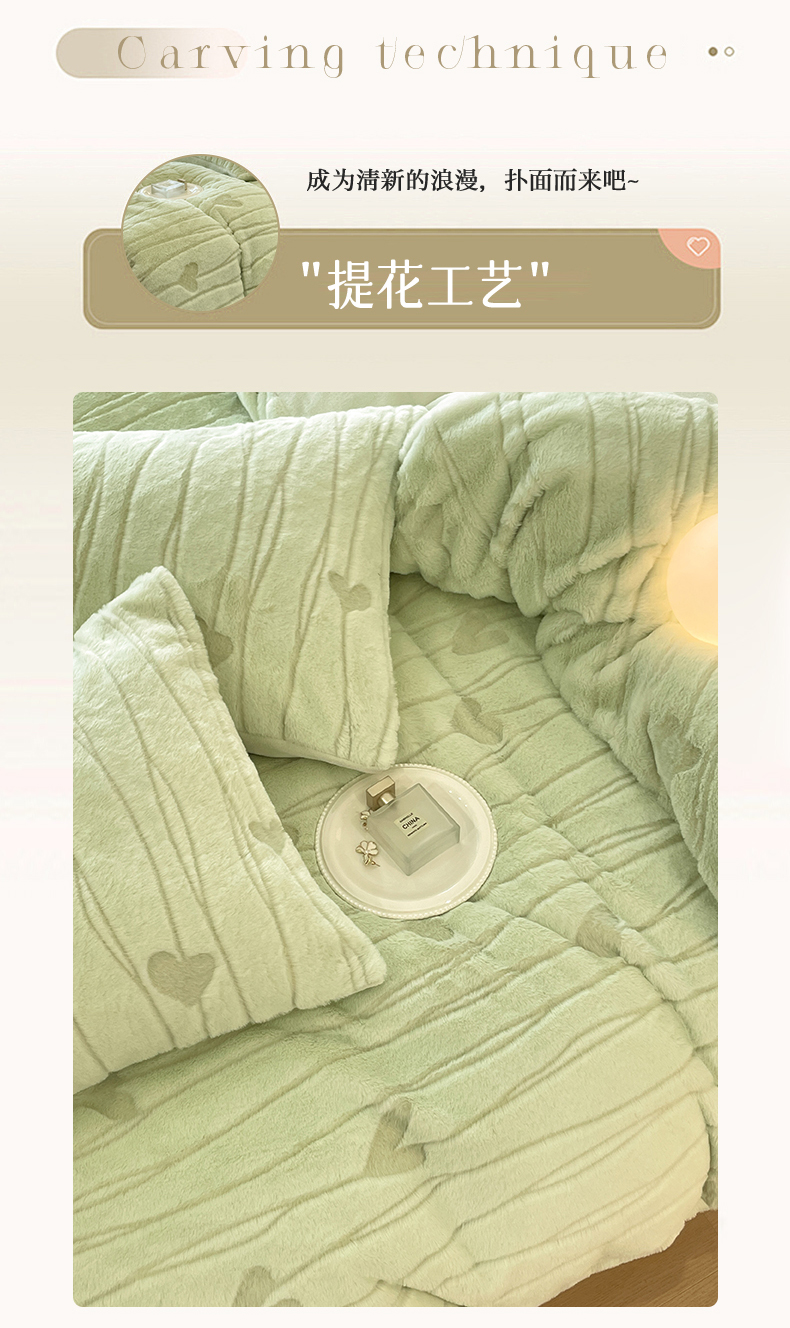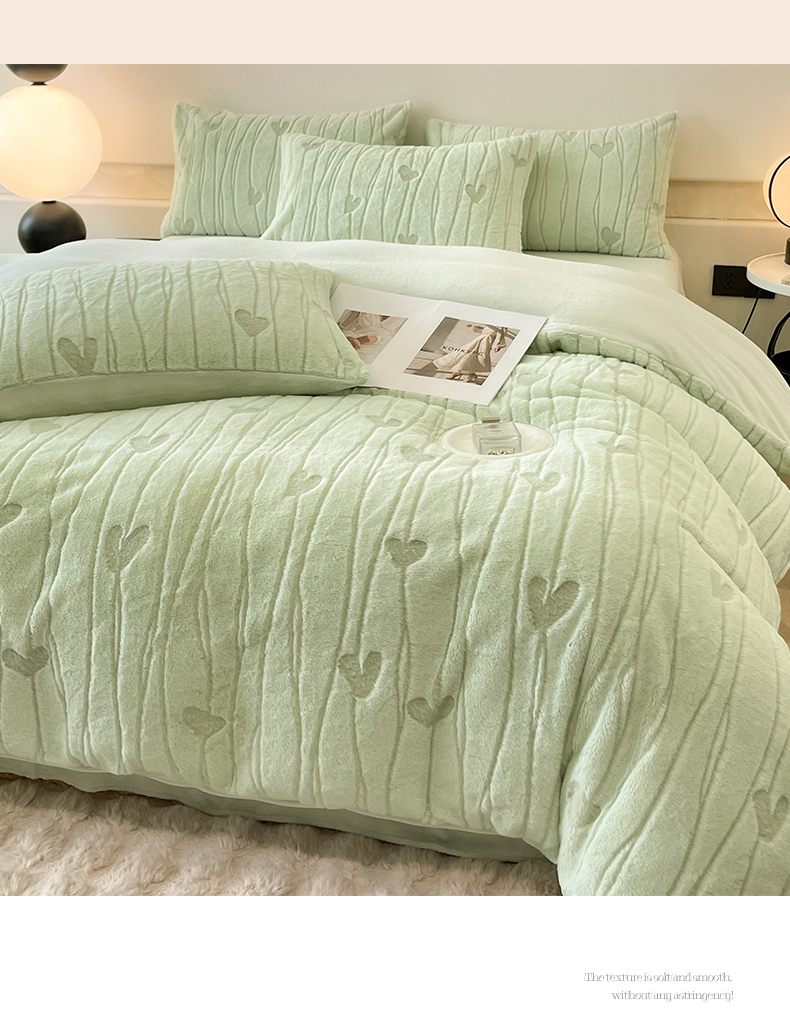 商品名称:798家纺 2025新款兔毛提花双拼四件套-简爱系列 心恋-豆绿