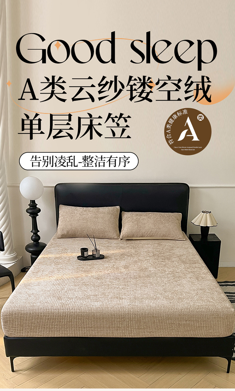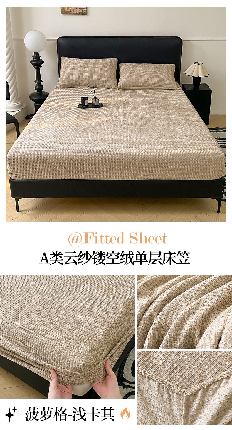 商品名称:2024新款A类云纱镂空绒床笠-菠萝格 菠萝格-浅卡其