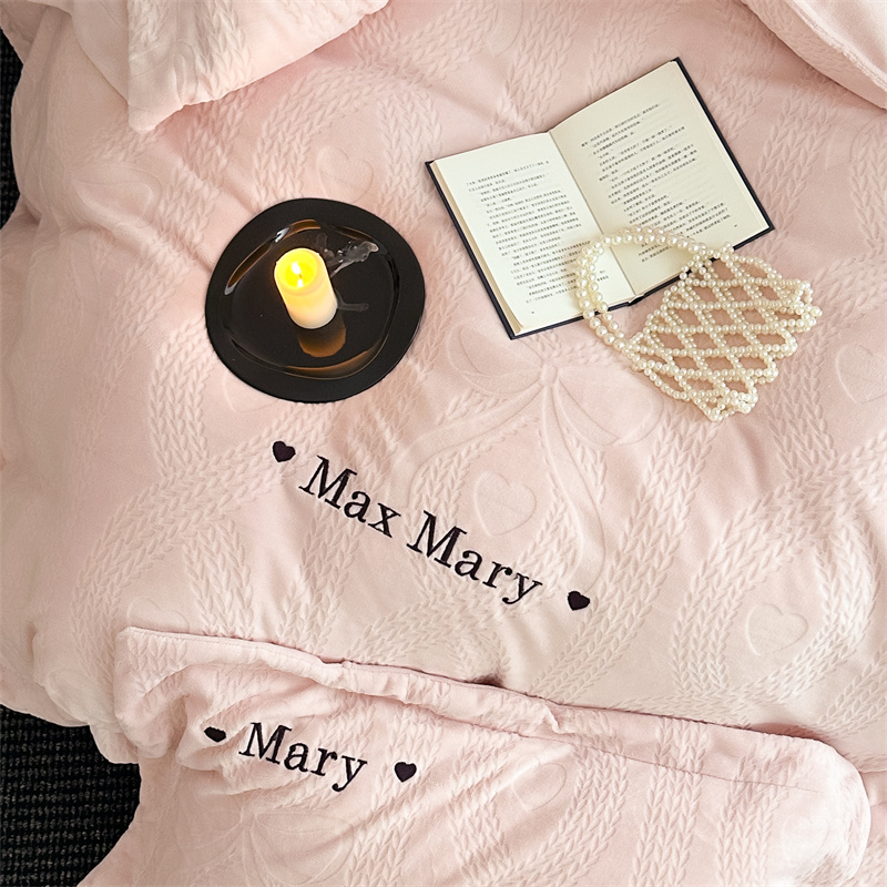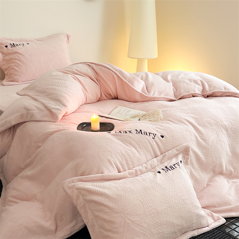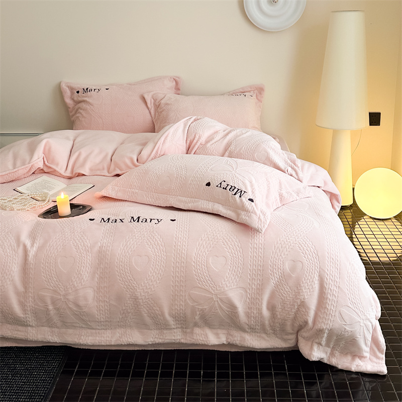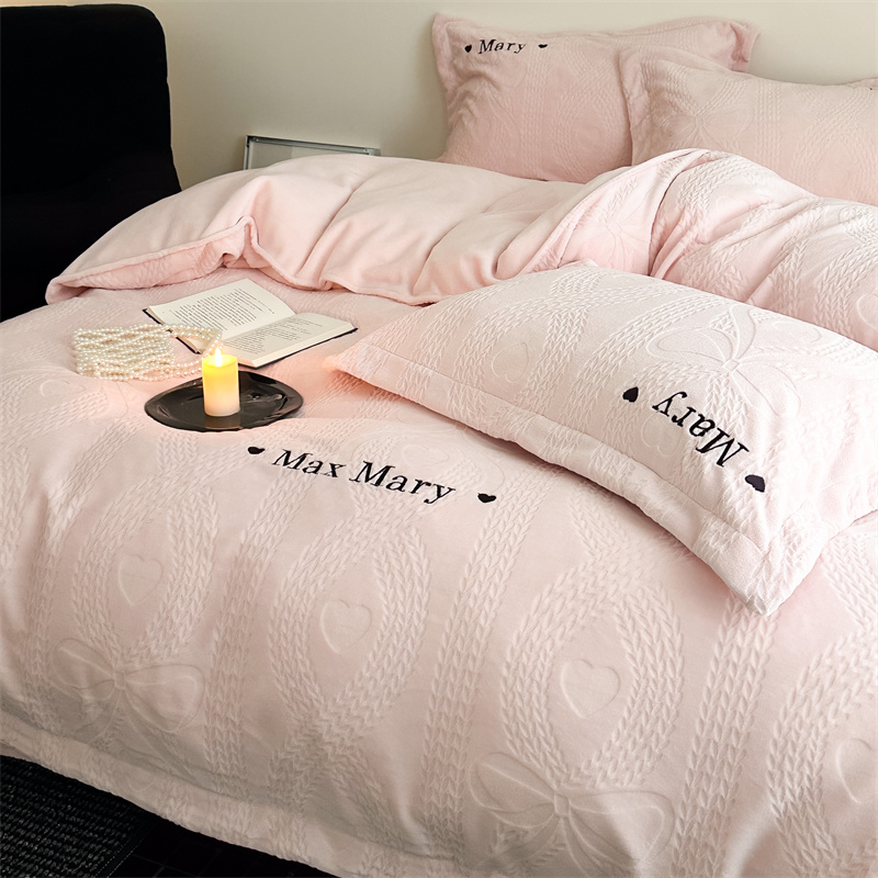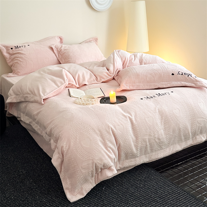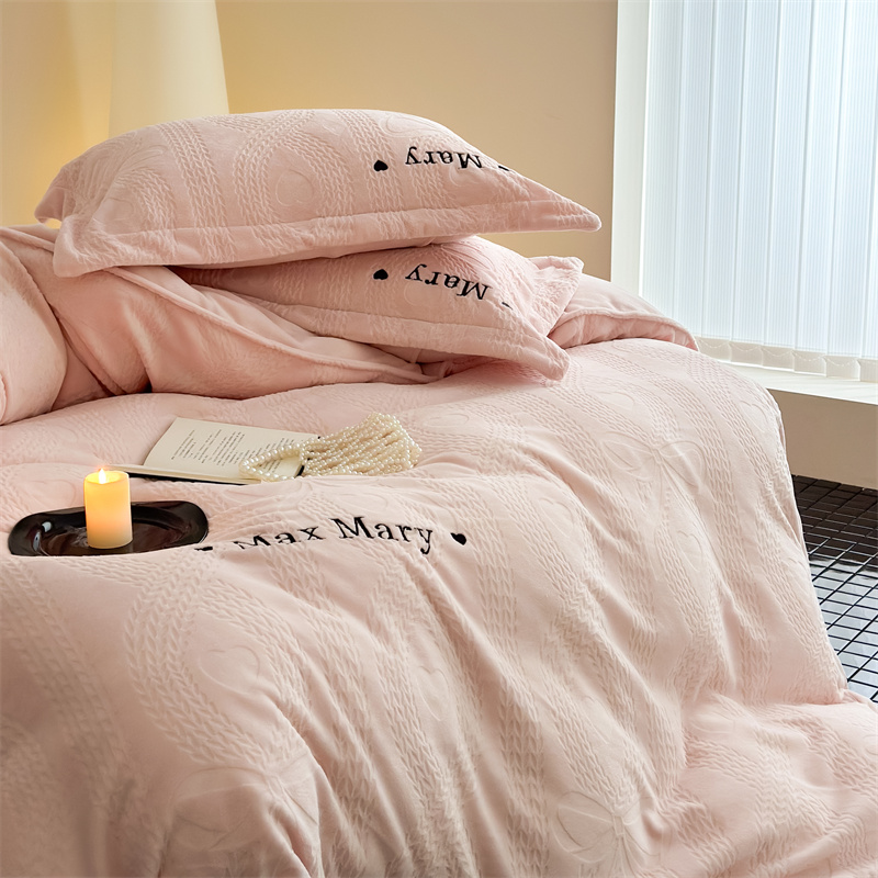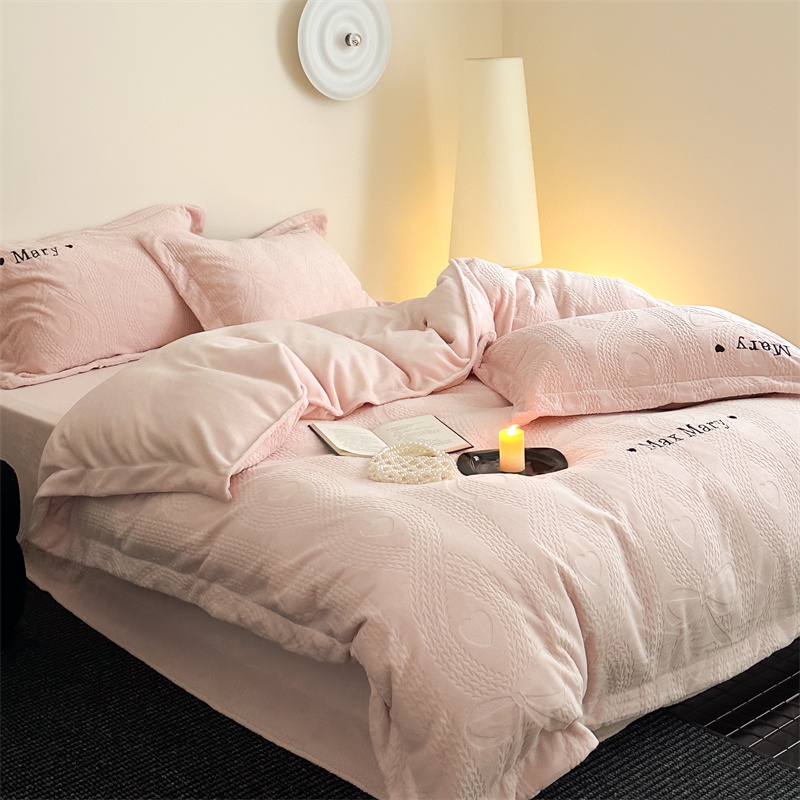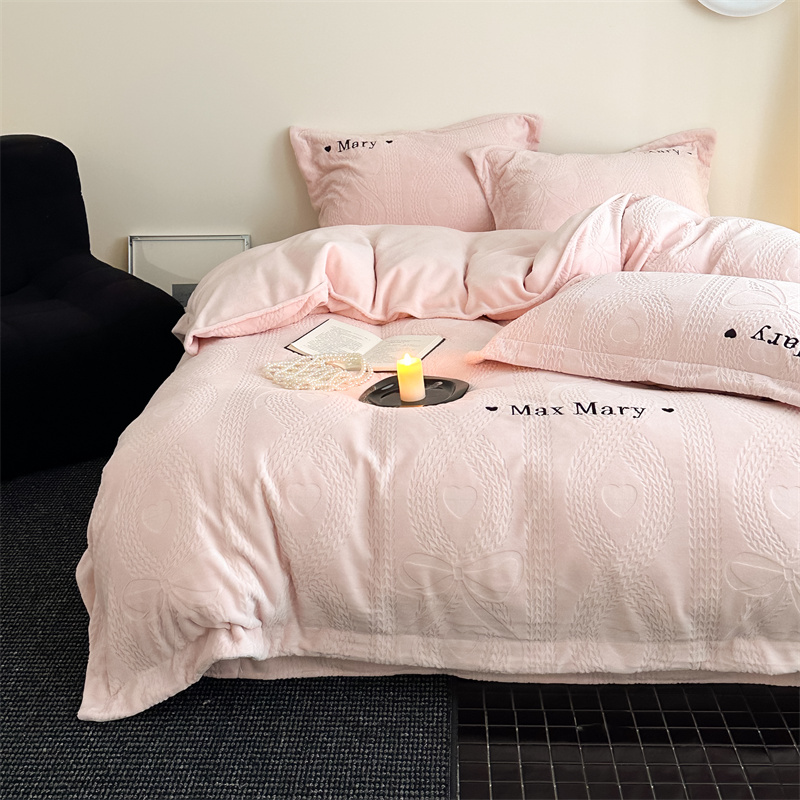 潘朵拉家纺 2024新款法式刺绣雕花绒牛奶绒四件套-麦瑞系列 麦穗粉
