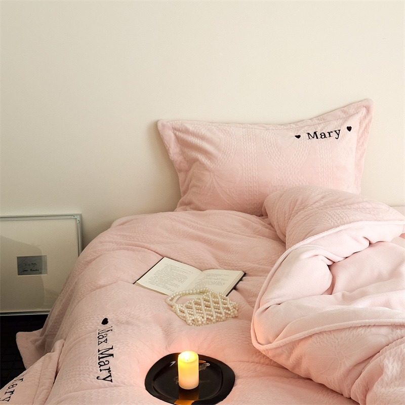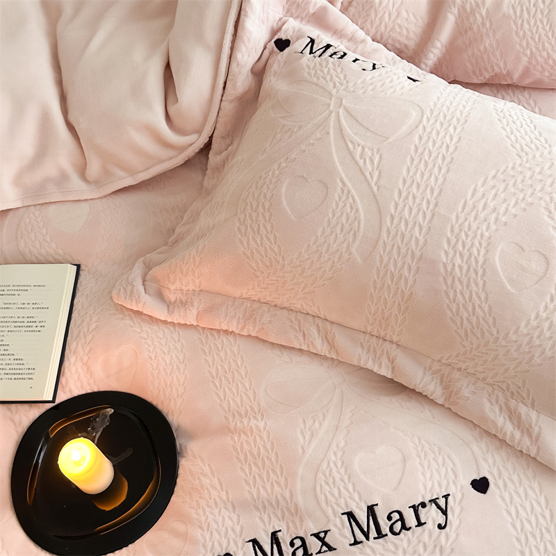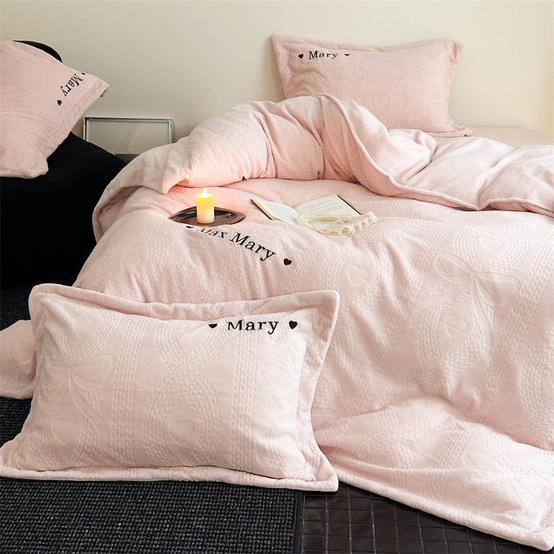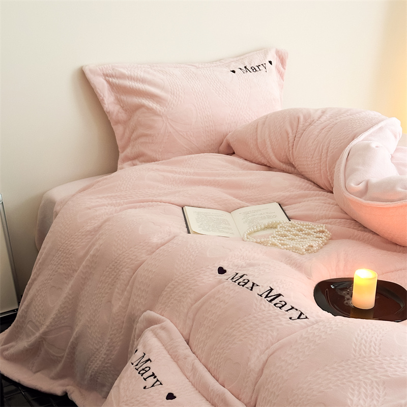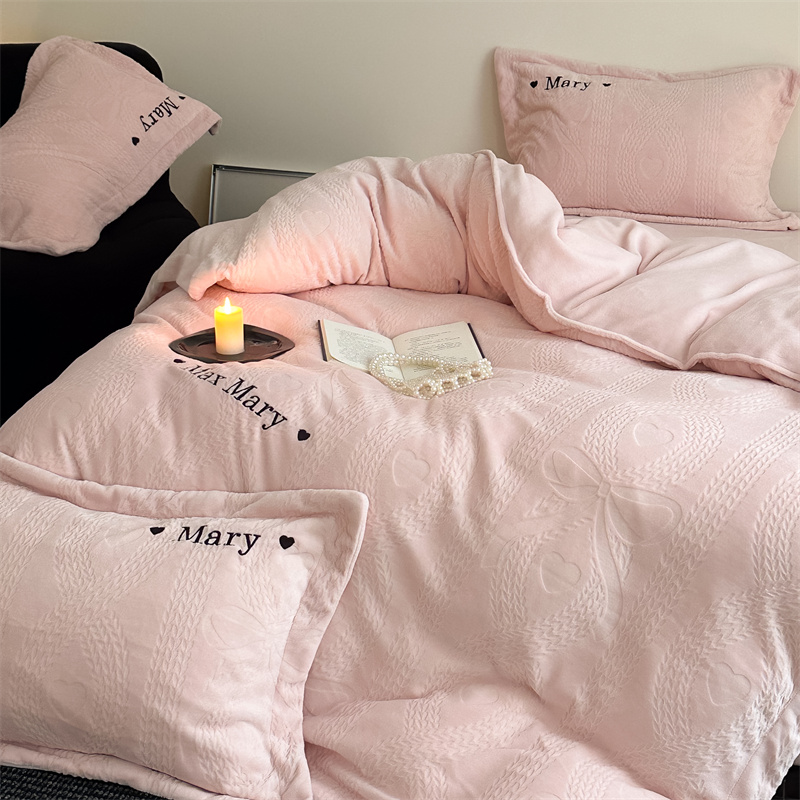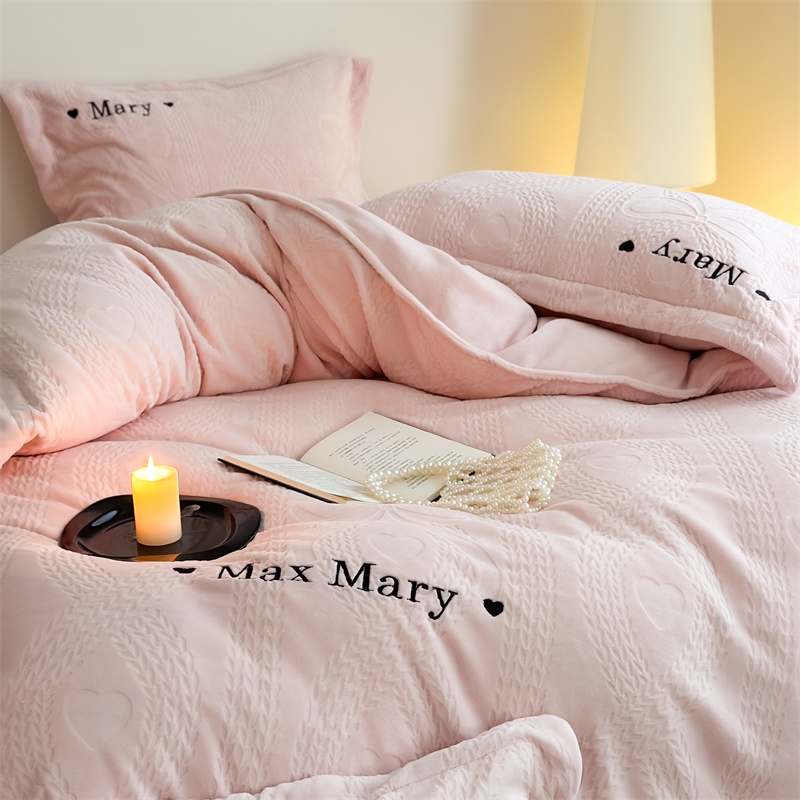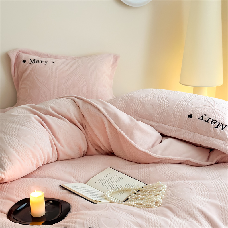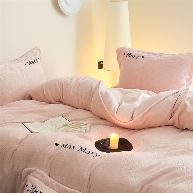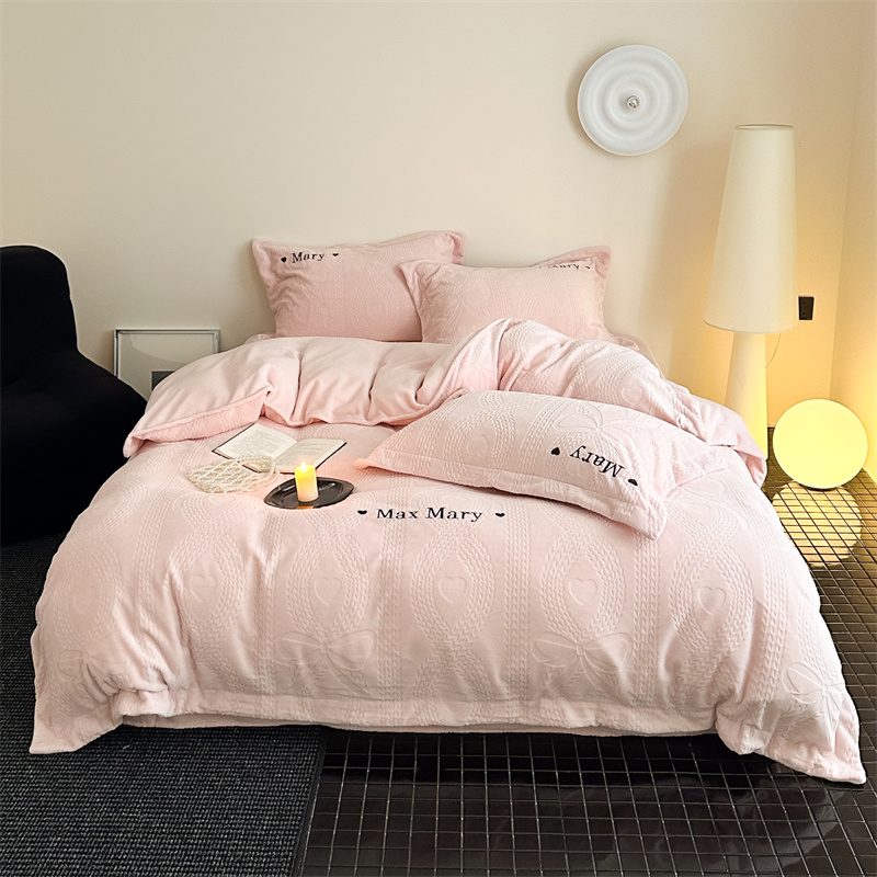 潘朵拉家纺 2024新款法式刺绣雕花绒牛奶绒四件套-麦瑞系列 麦穗粉