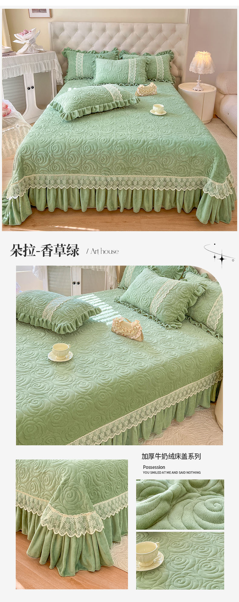 (总)恋尚 2025新款柔软牛奶绒保暖蕾丝床裙四件套-玫瑰故事(控价305),玫瑰故事-蜜桃粉,玫瑰故事-奶茶色,玫瑰故事-椰蓉灰,玫瑰故事-香芋紫,玫瑰故事-清新粉,玫瑰故事-香草绿