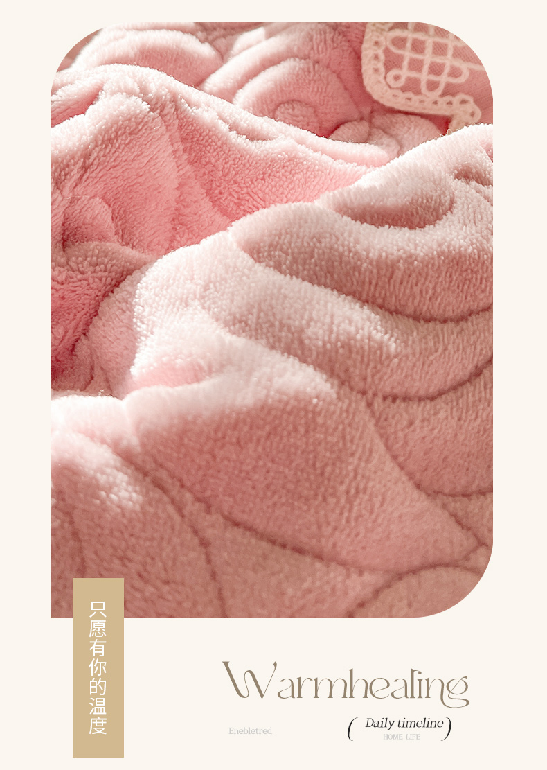 恋尚 2024新款高克重牛奶绒夹棉蕾丝花边单床盖--朵拉 朵拉-蜜桃粉