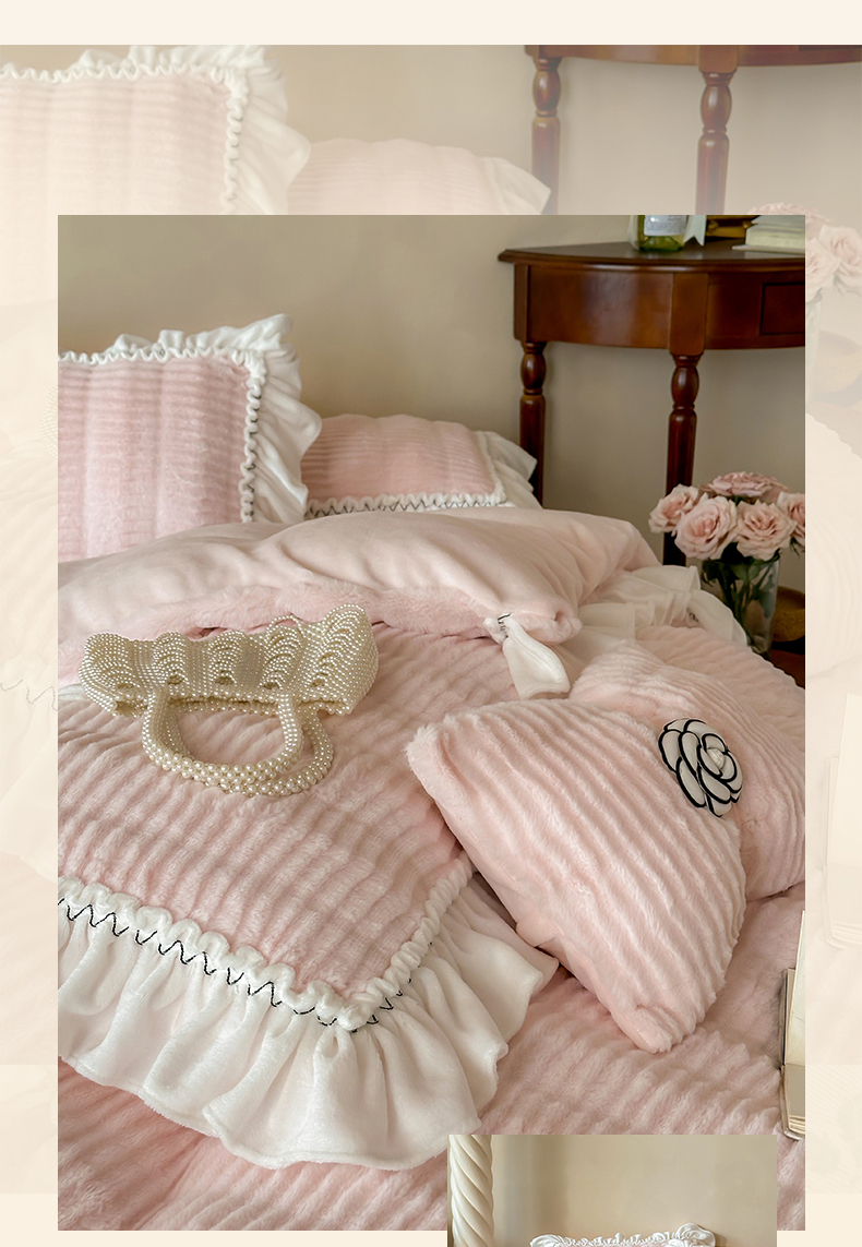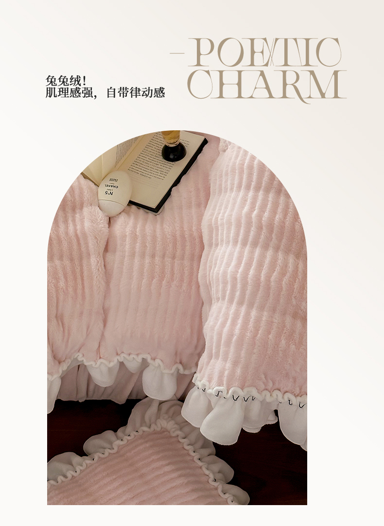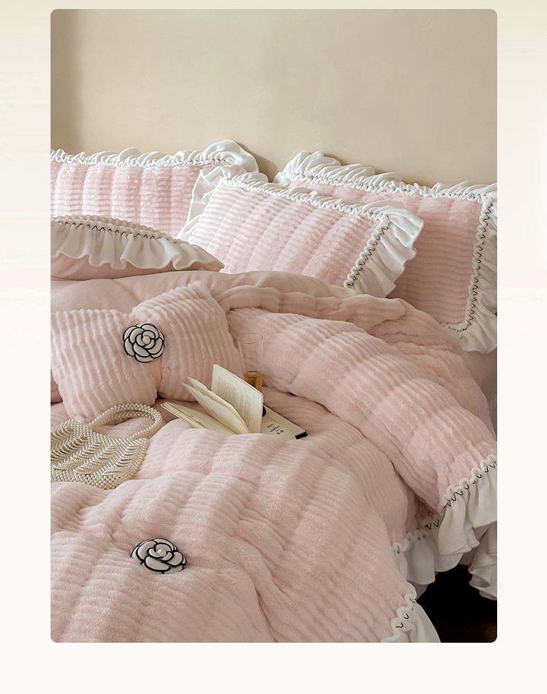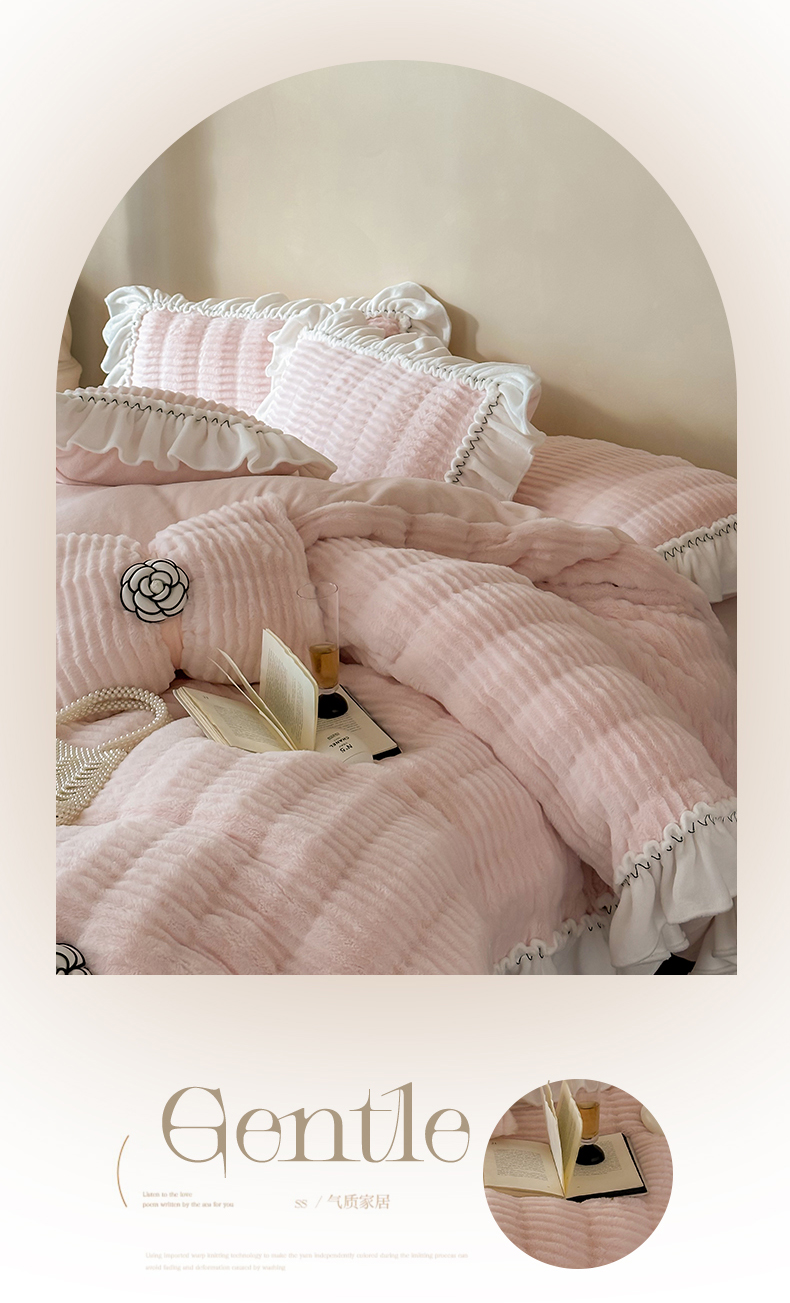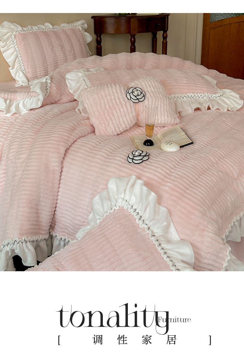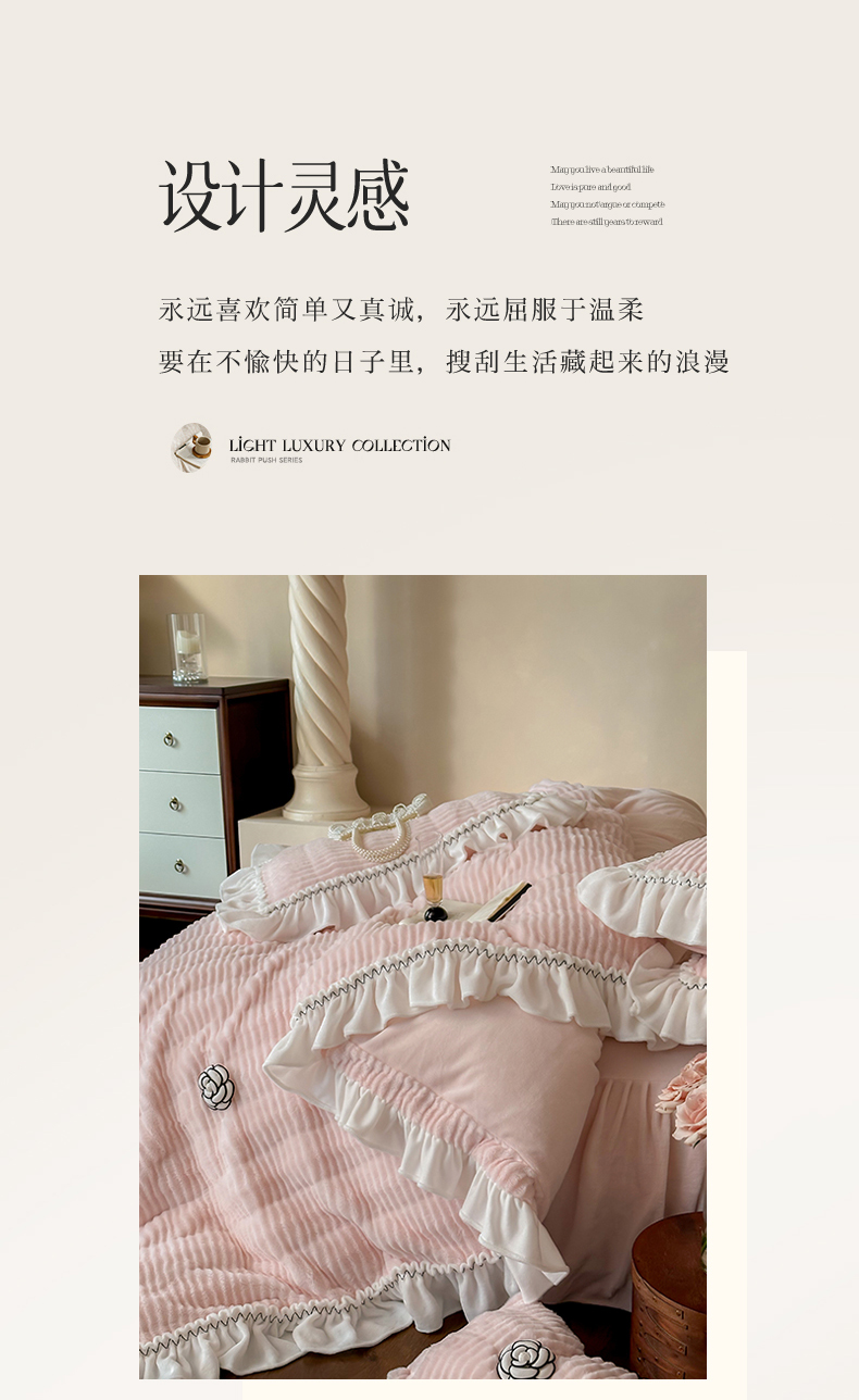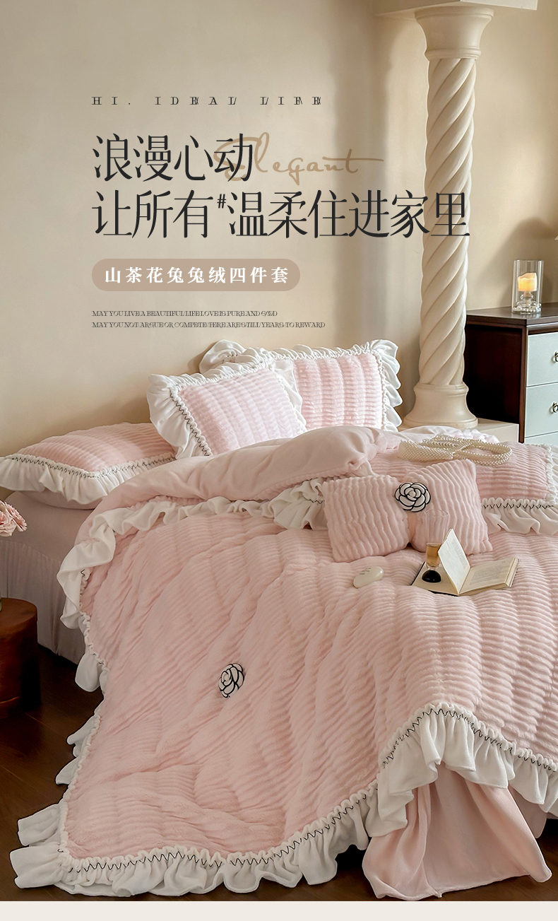 当前位置: 91家纺网 > 商品网购 > 床品套件 > 四件套 > 兔毛绒四件套 > 婳庭家居 2024新款山茶花兔兔绒牛奶绒四件套-香香公主 香香公主-粉