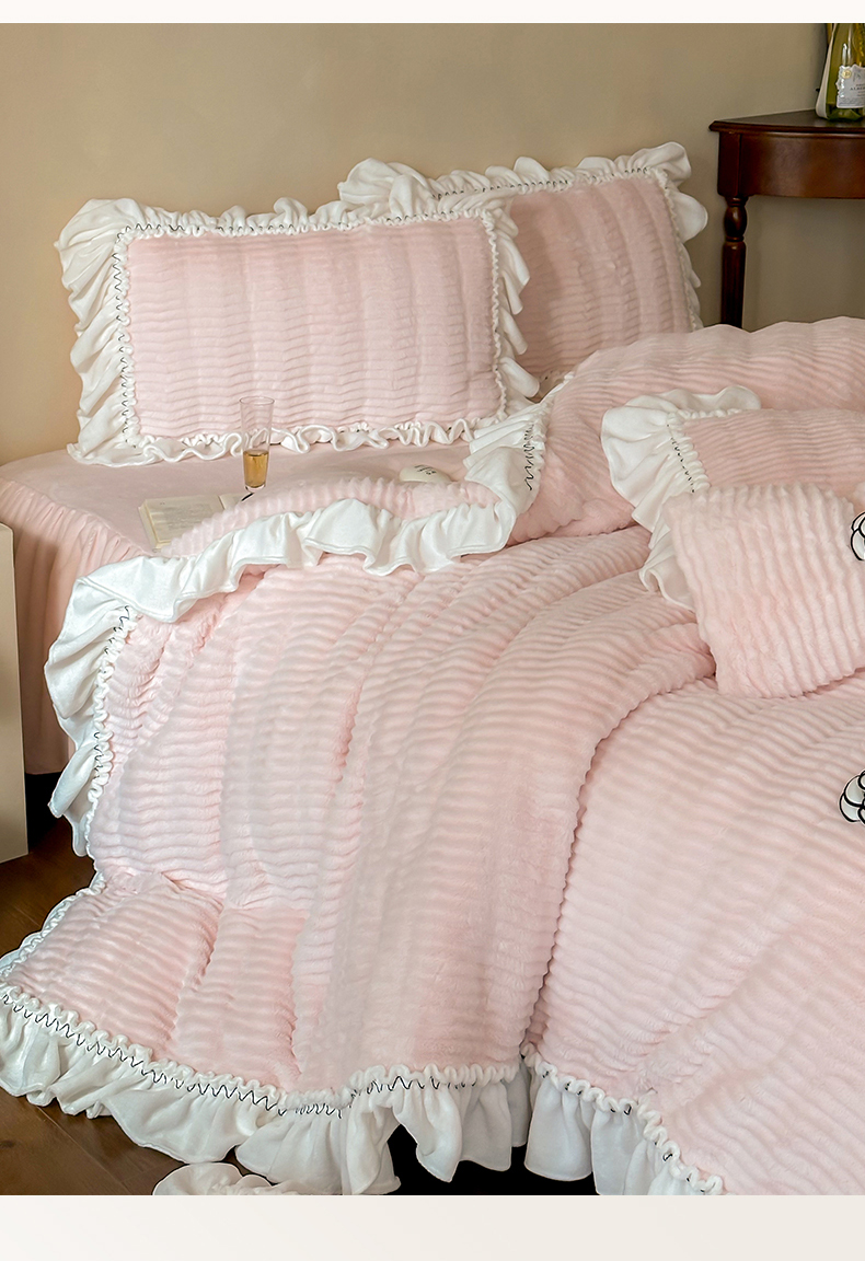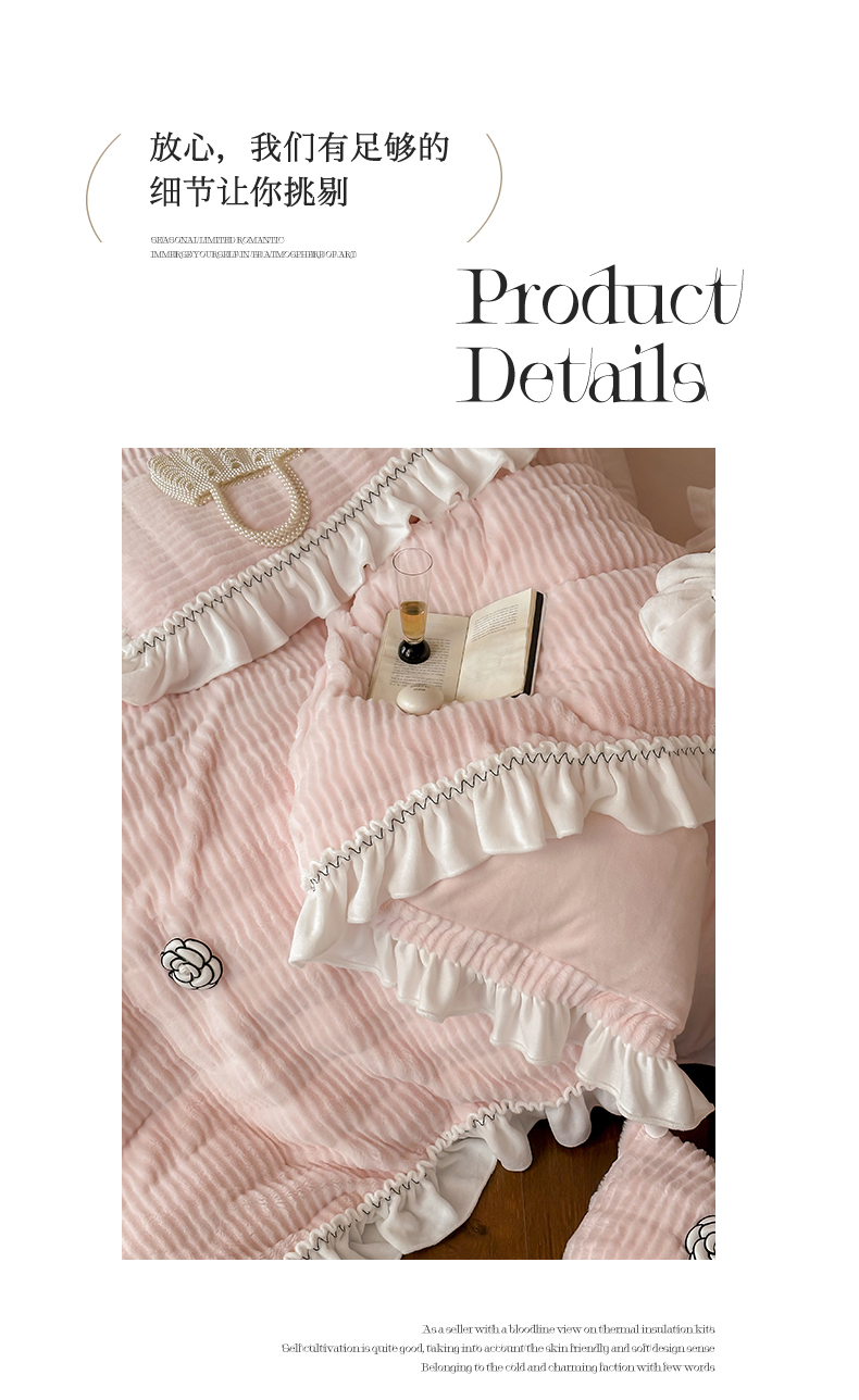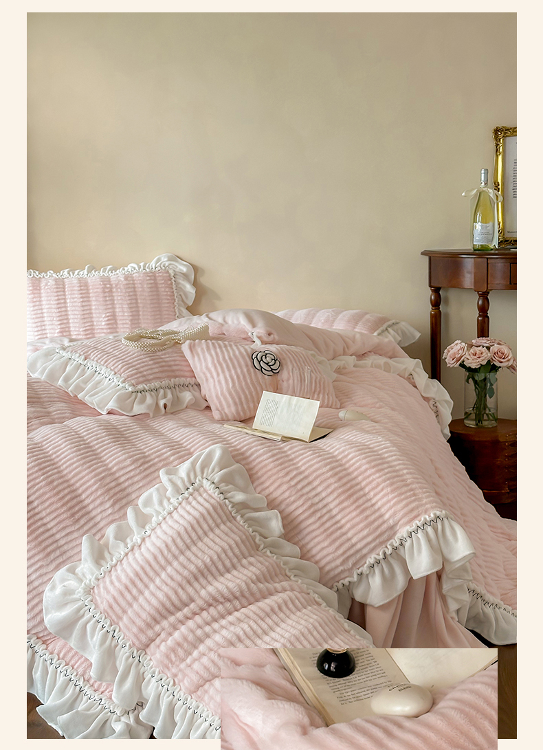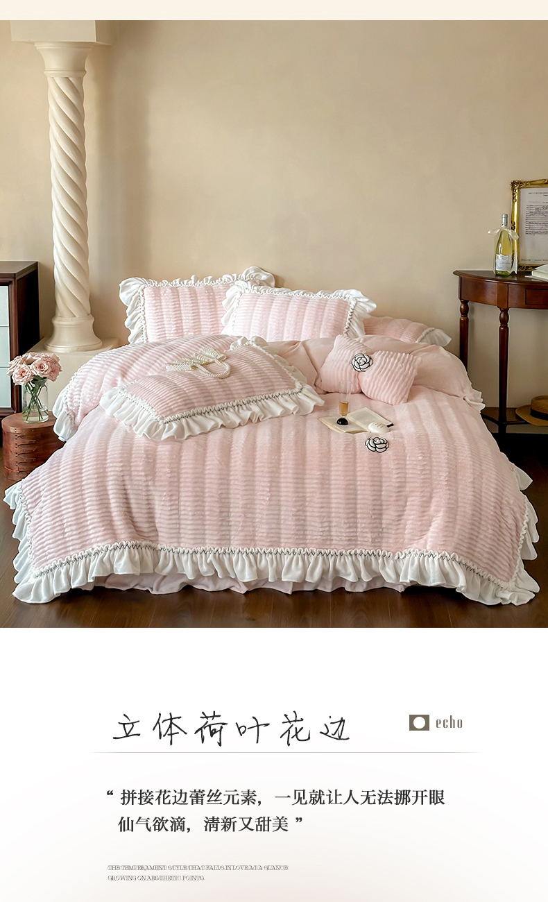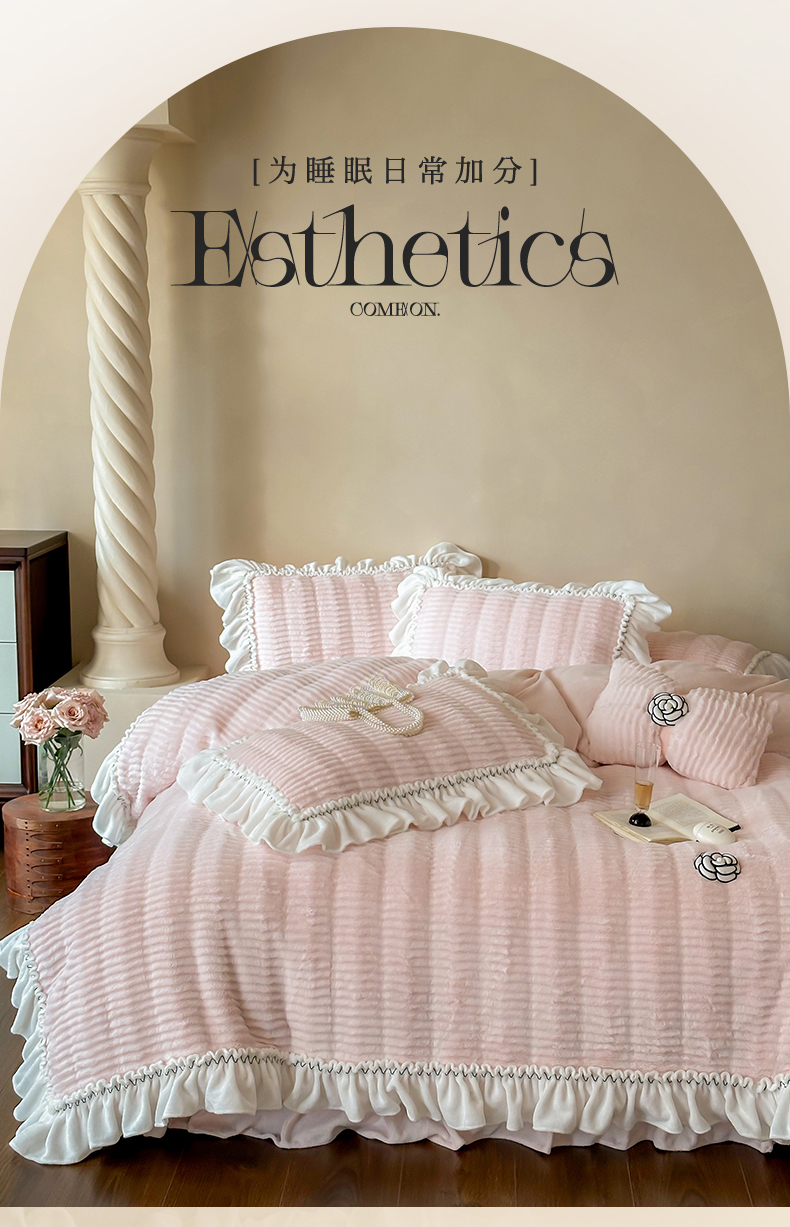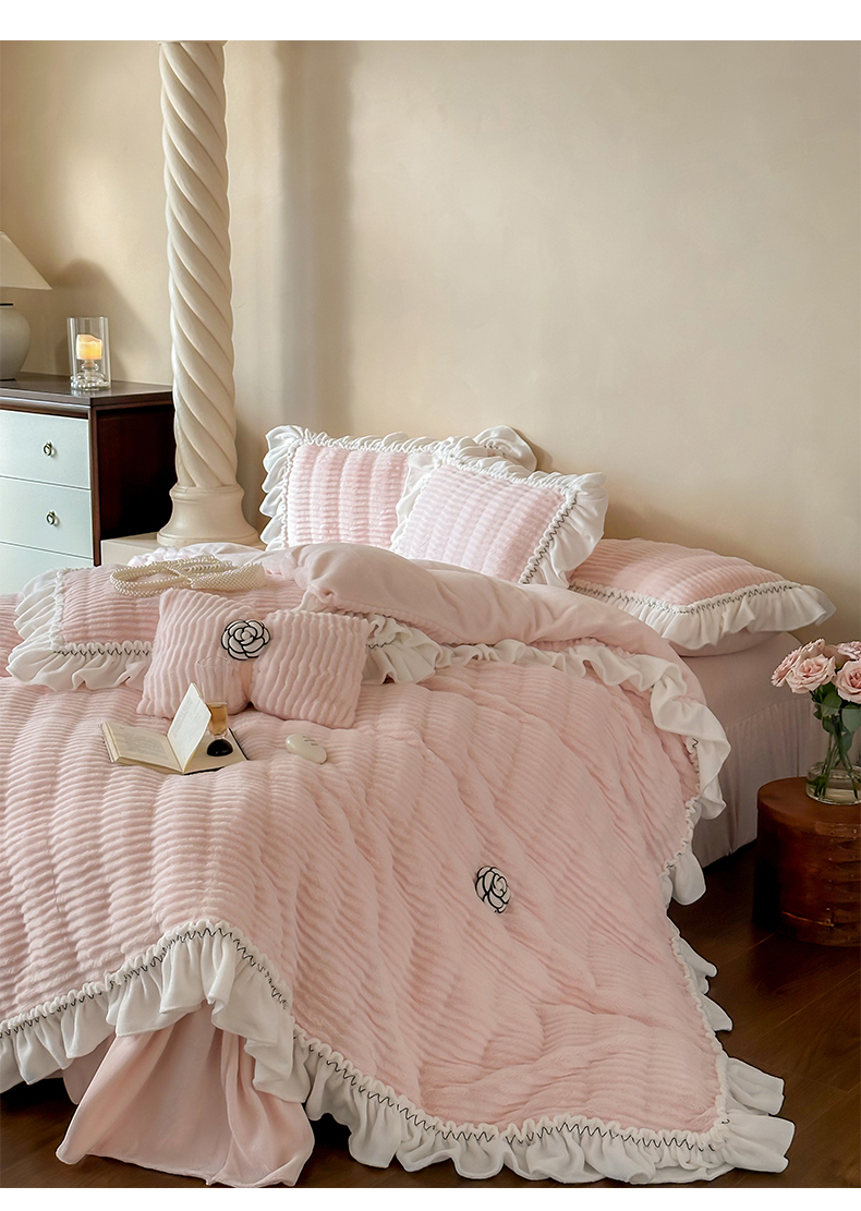 当前位置: 91家纺网 > 商品网购 > 床品套件 > 四件套 > 兔毛绒四件套 > 婳庭家居 2024新款山茶花兔兔绒牛奶绒四件套-香香公主 香香公主-粉