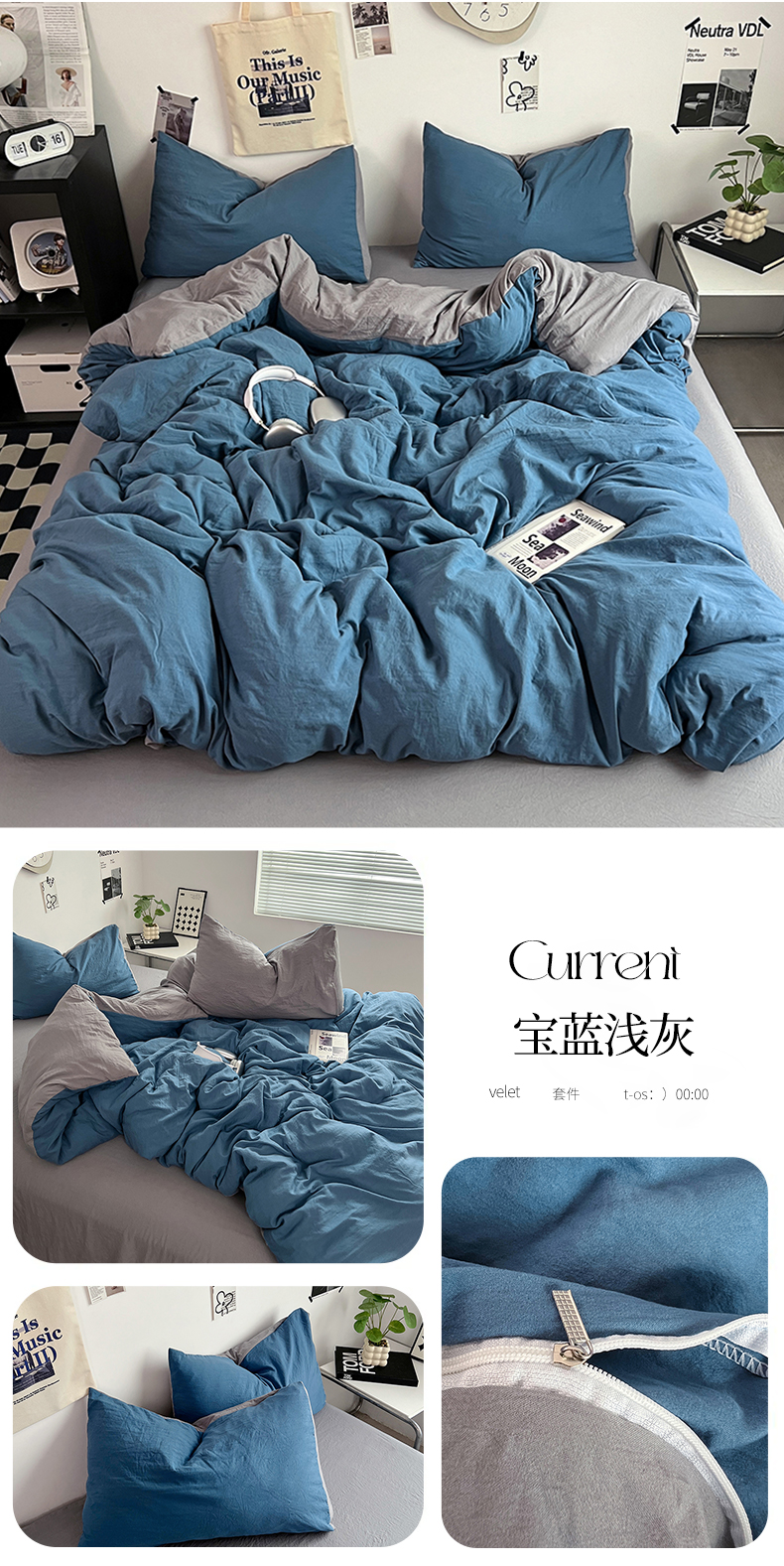 当前位置: 91家纺网 > 商品网购 > 床品套件 > 四件套 > 水洗棉四件套 > 优佳优品 2024新款ins风超柔褶皱亲肤磨毛水洗棉四件套 宝蓝浅灰