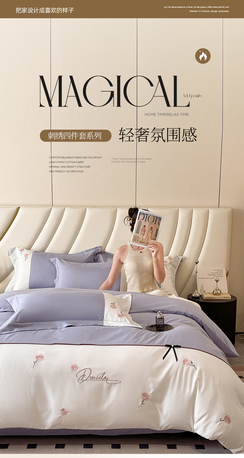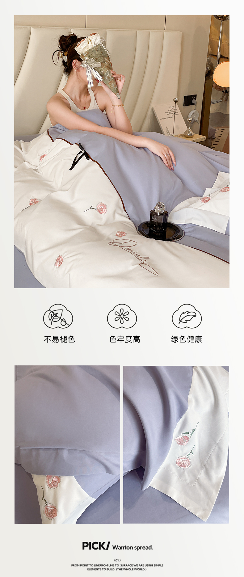(总)遇见家居生活馆 2025新款亲肤棉刺绣四件套-花田里,花田里-白粉,花田里-冰清绿,花田里-公主粉,花田里-灰粉,花田里-香槟色,花田里-香芋紫,花田里-樱花粉