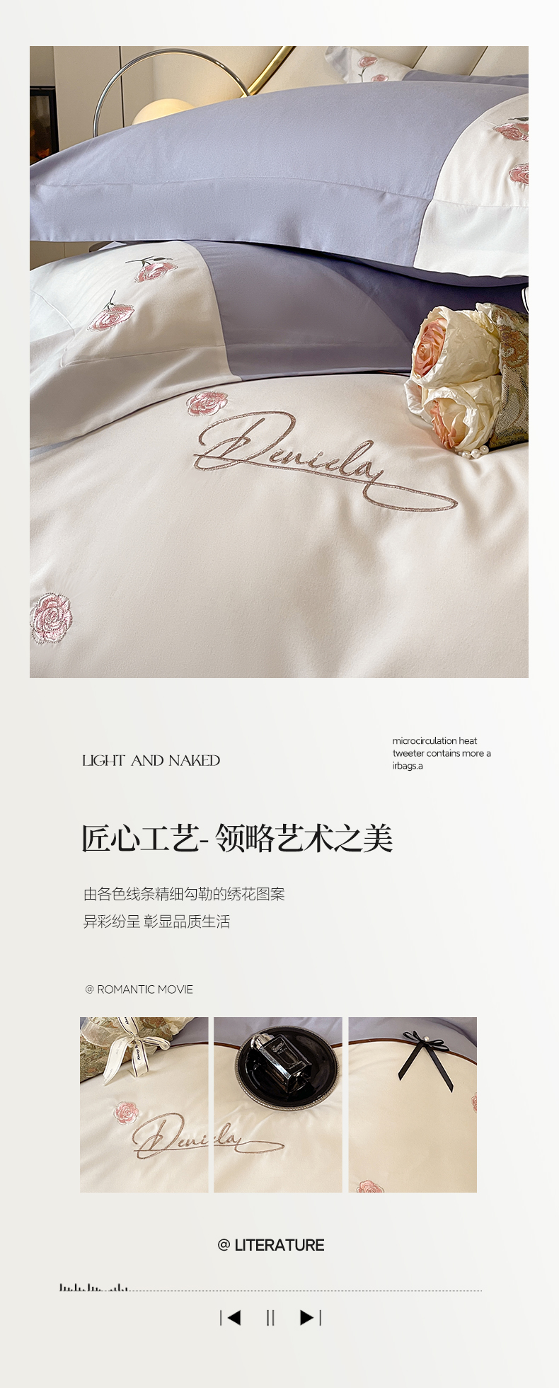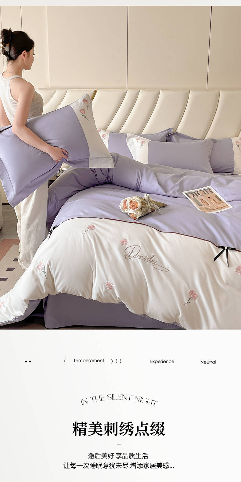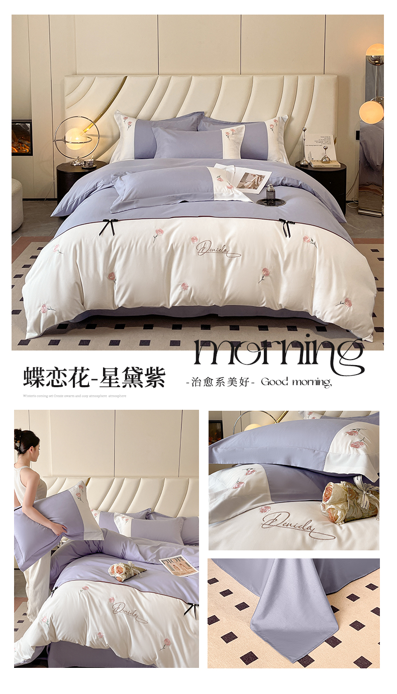 遇见家居生活馆 2024新款亲肤棉刺绣四件套-蝶恋花 蝶恋花-星黛紫