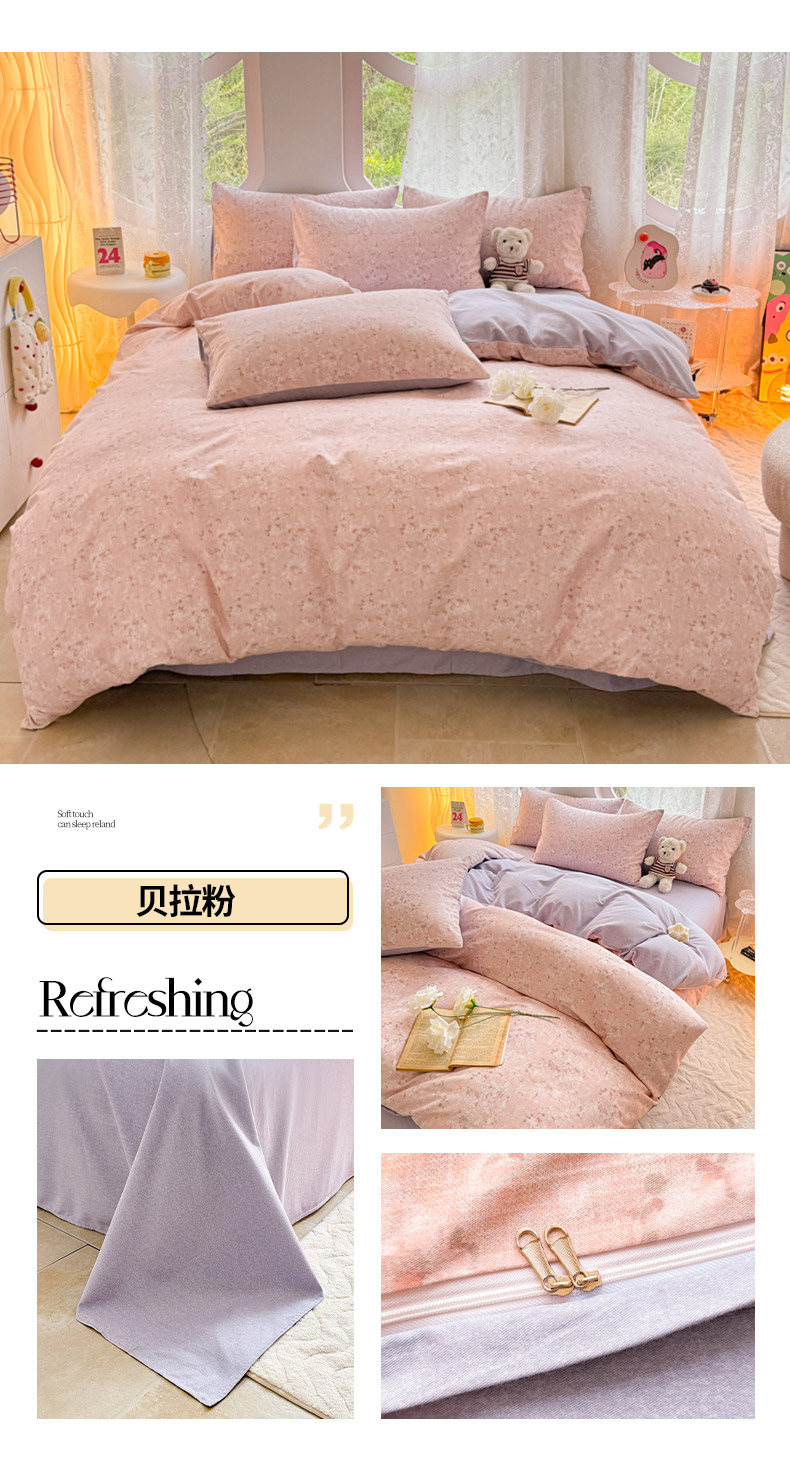 商品名称:千朵 2024新款全棉磨毛印花四件套 贝拉粉